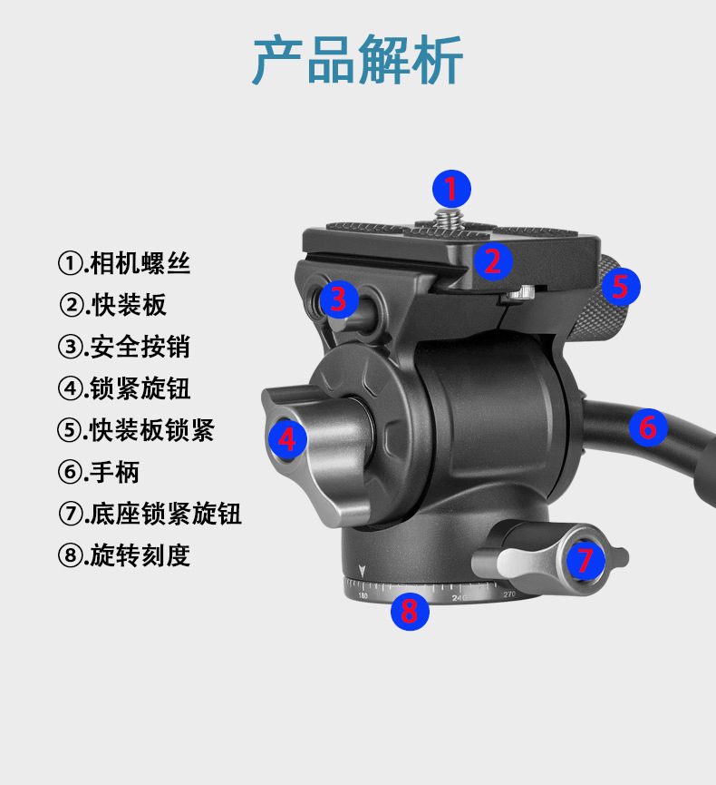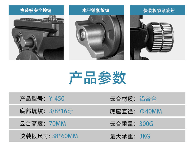 Penjualan langsung pabrik Difeng Y450 tripod fotografi dan video dengan kepala hidrolik dan pegangan untuk pengambilan gambar panorama, kepala peredam getaran.