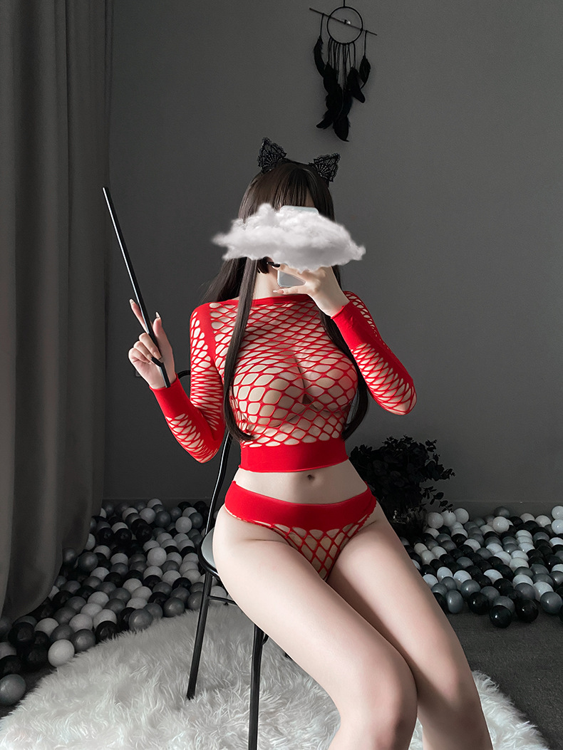 Jaring ikan Seksi, seragam klub malam menggoda, pakaian jala ukuran besar lengan panjang terpisah seksi