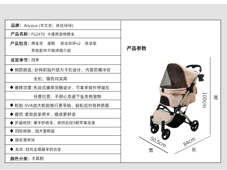 Iebiyaya kereta dorong anjing peliharaan, troli kucing FS1670 beruang teddy anjing kecil ebiah