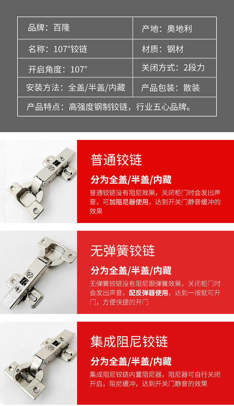 Engsel kabinet lemari pakaian Blum 107 derajat, engsel penahan hidrolik pintu lipat, engsel pintu lipat