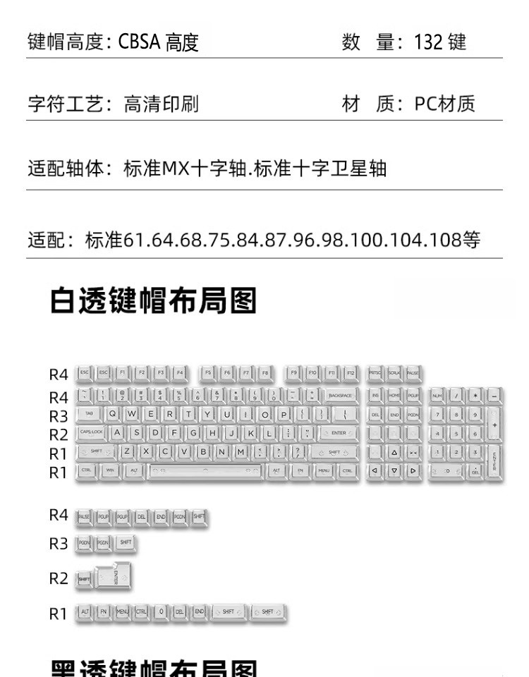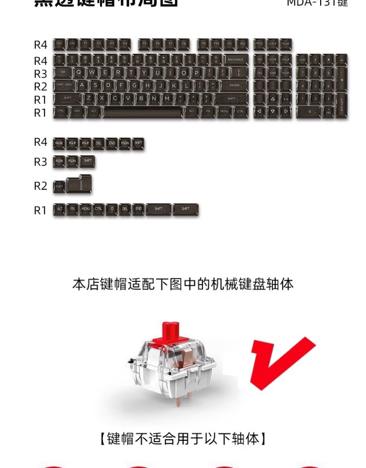 Tutup kunci transparan kristal es set lengkap besar keyboard mekanis universal 61 tombol 87 kunci 98 tombol 104 kunci kristal keycap