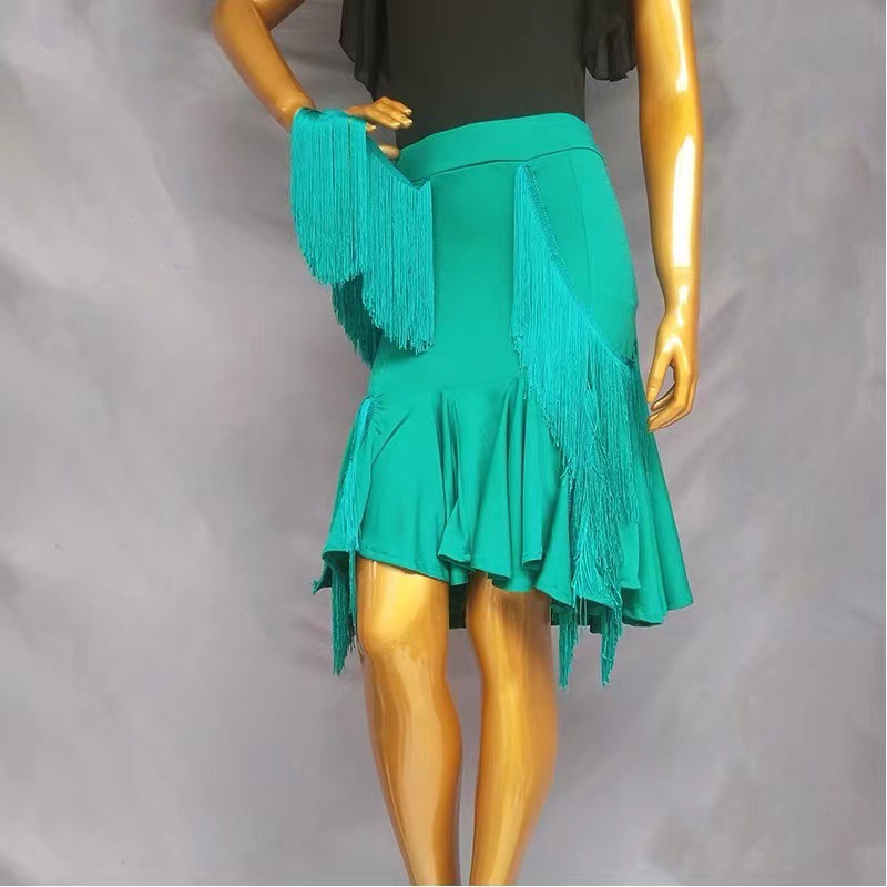 Rok dansa Latin pakaian latihan rok rumbai menari dewasa wanita panjang rok ekor ikan ayunan besar pakaian performa celana