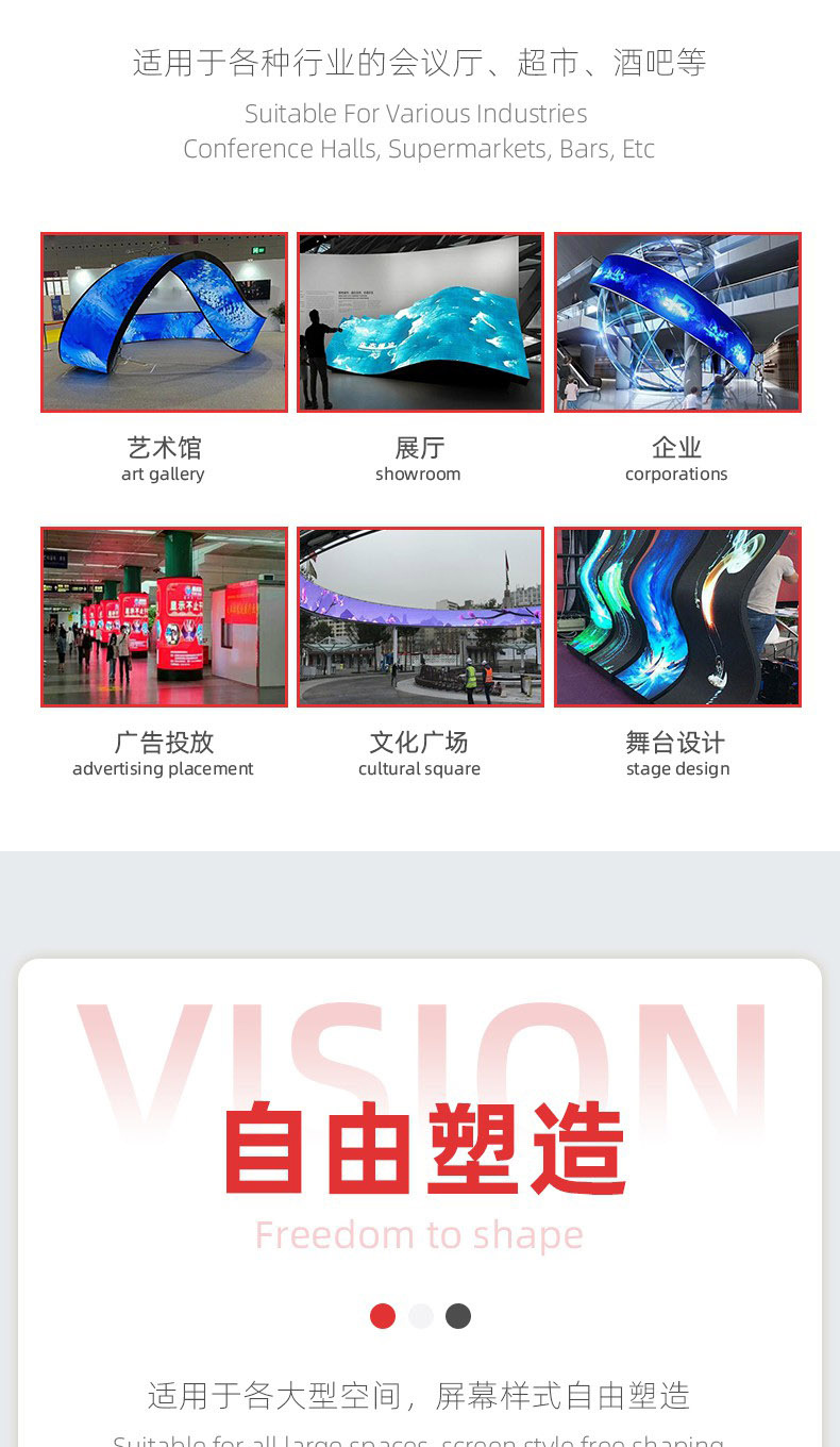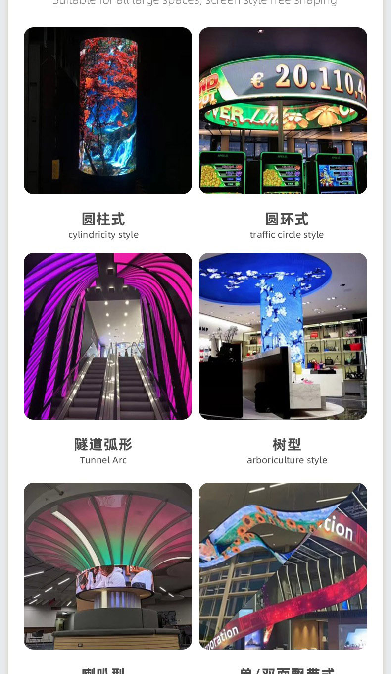 Layar LED fleksibel lembut melengkung silinder P1.86P2 untuk dalam dan luar ruangan, layar LED pameran warna penuh ukuran besar