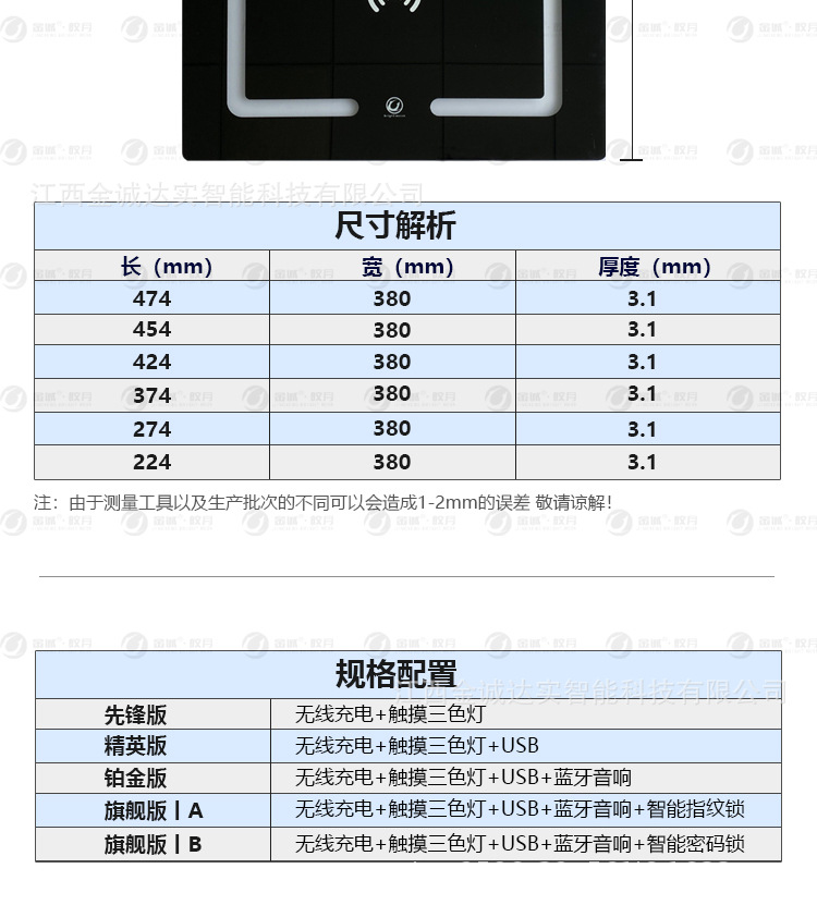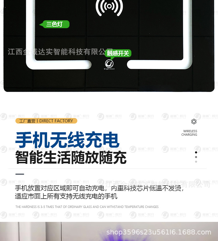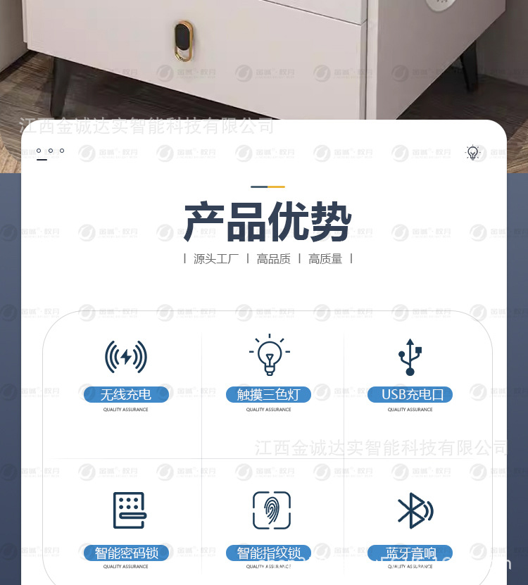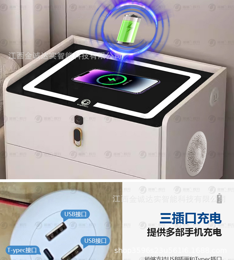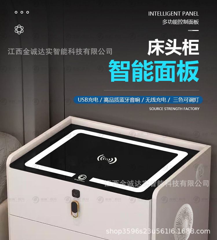 Panel elektronik pintar meja samping tempat tidur, aksesori lampu sentuh audio Bluetooth pengisian daya nirkabel