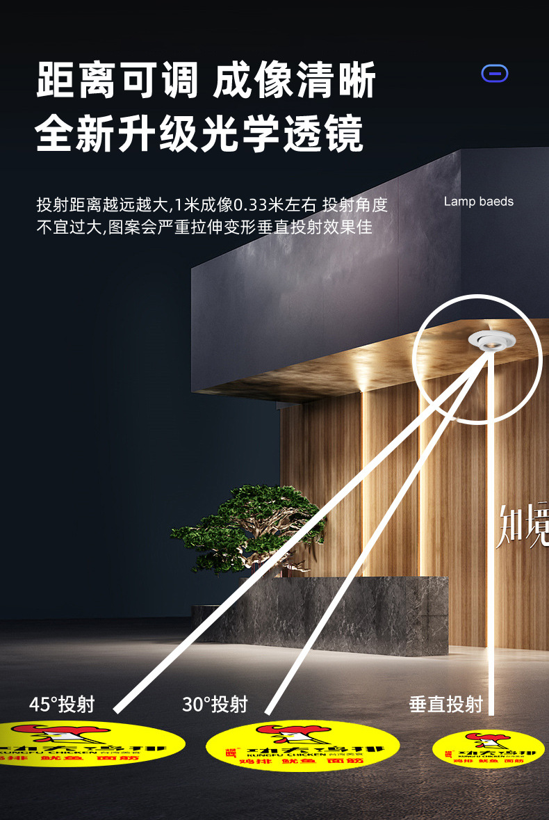 Lampu proyeksi pintu masuk terintegrasi untuk nomor ruangan, lampu proyeksi lantai tersembunyi untuk header pintu, lampu proyeksi koridor dengan logo.