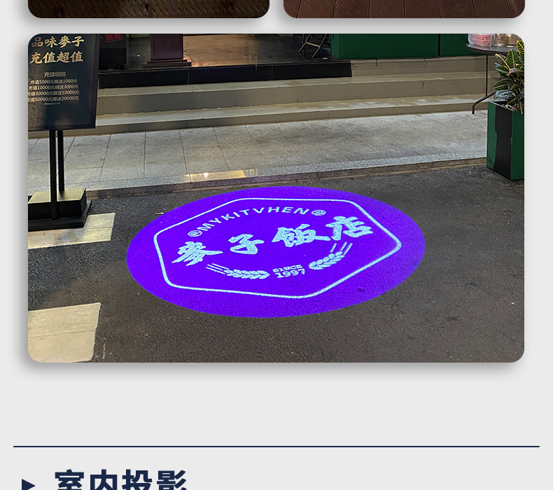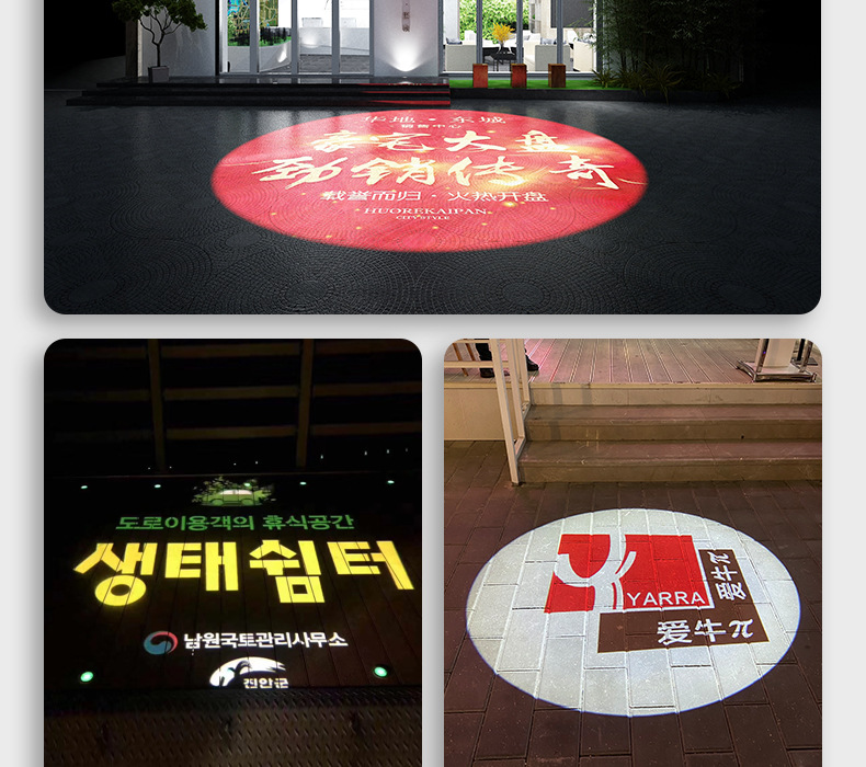 Lampu proyeksi iklan luar ruangan, lampu pintu logo pola lampu proyeksi teks dengan lantai toko komersial led tahan air