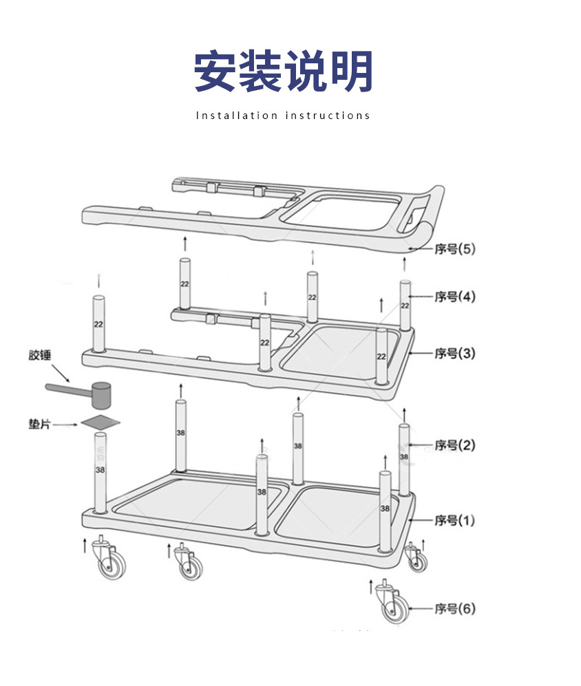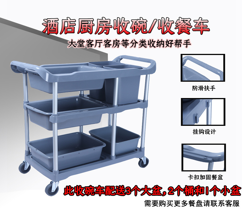 Troli makan lima laci, troli pengumpul mangkuk, troli dorong untuk kantin, makan jamuan, penyortiran peralatan dapur, pembersihan, troli peralatan makan untuk penggunaan komersial.