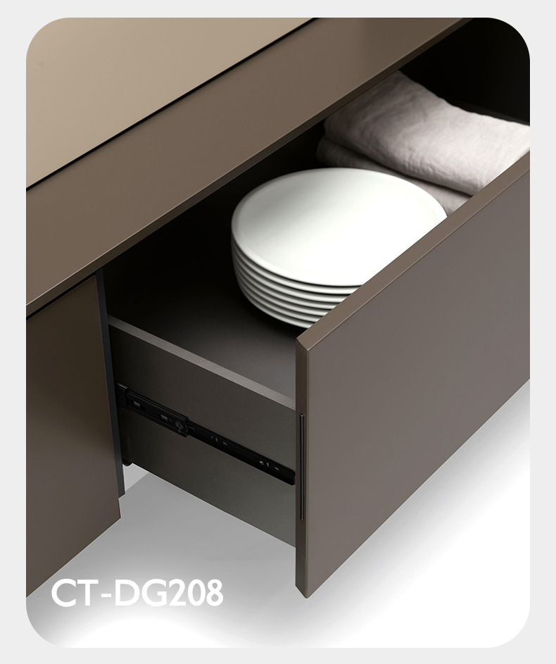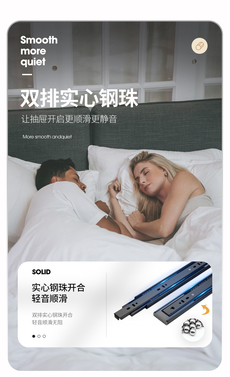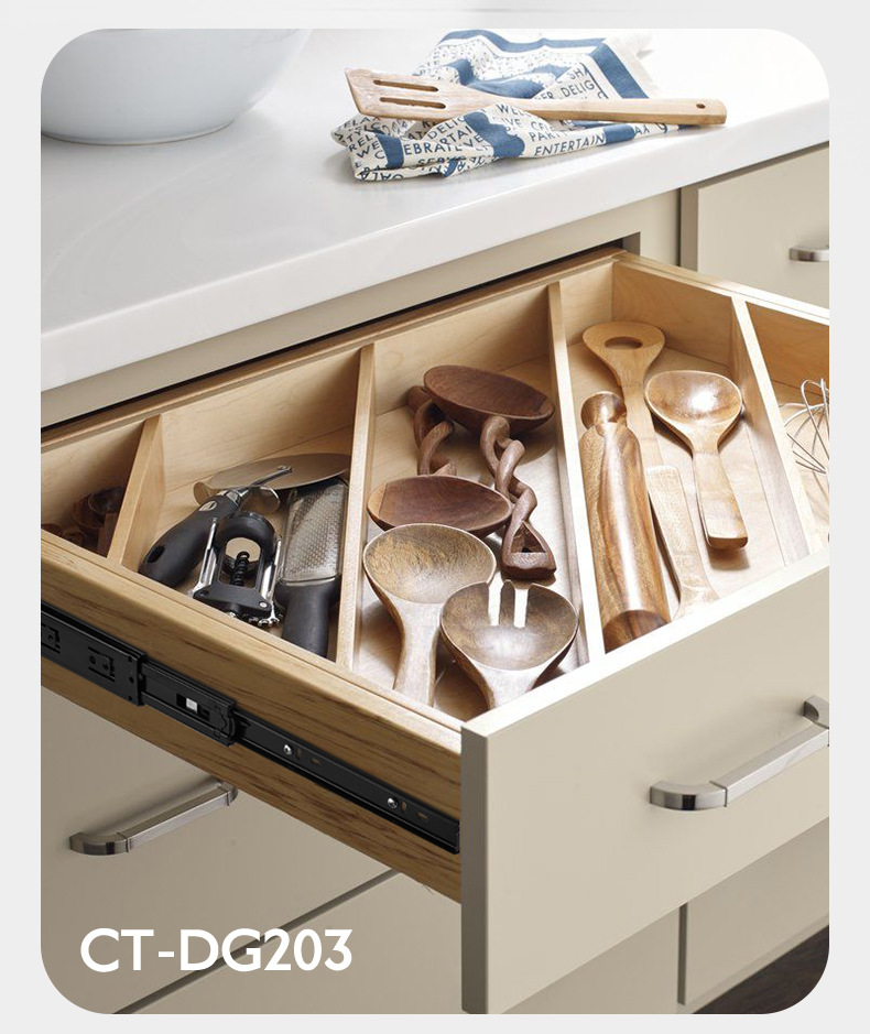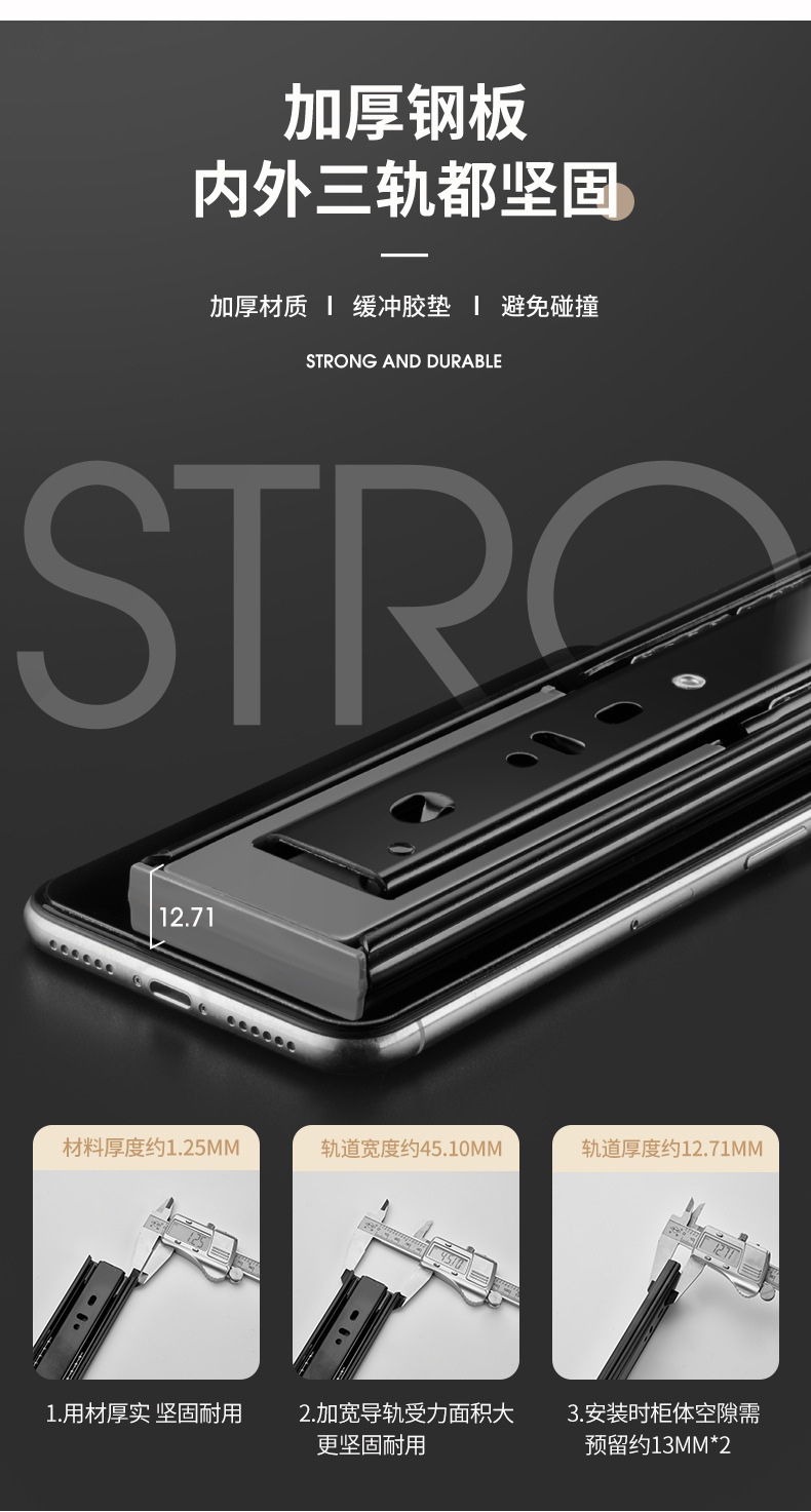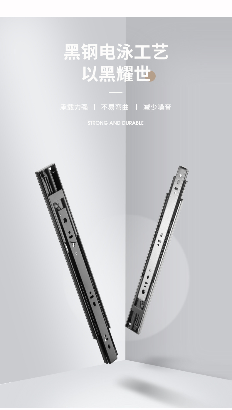 Rel laci geser tiga bagian dengan peredam kejut, rel pemandu penutup kabinet, rel penutup lemari senyap, strip baja tahan karat.