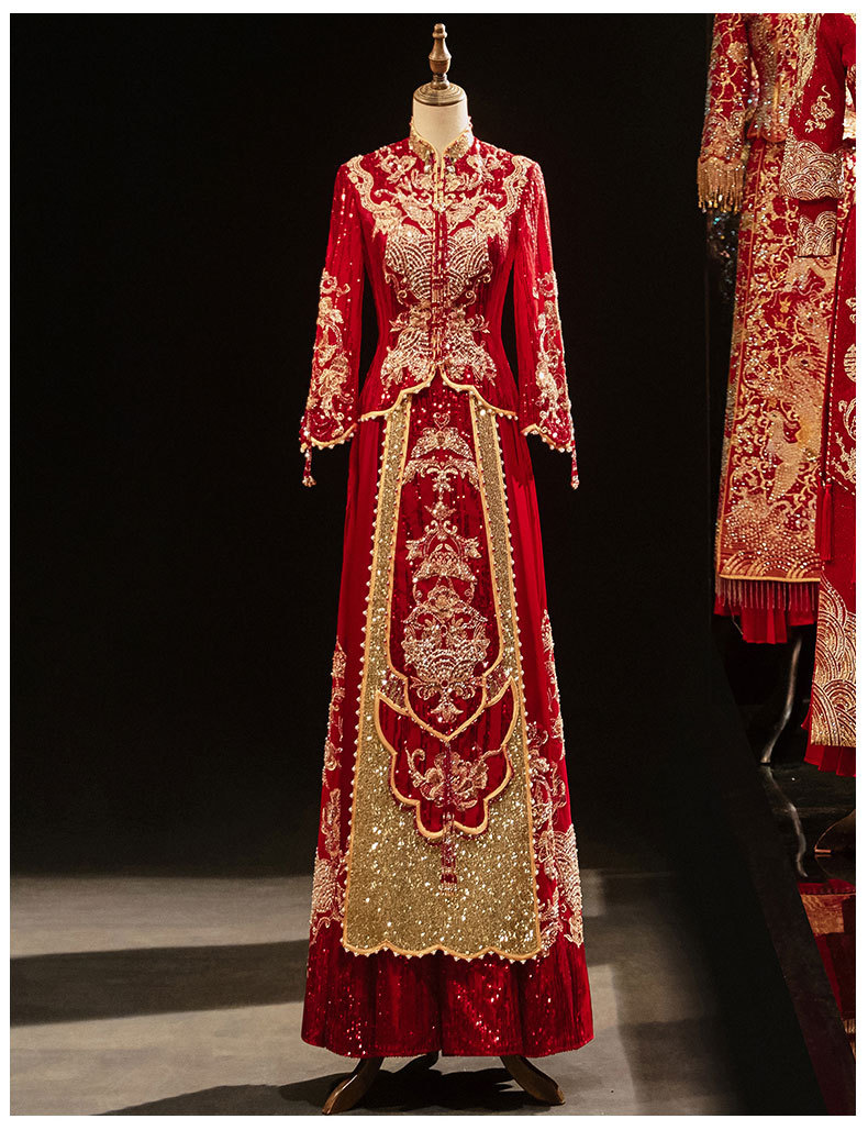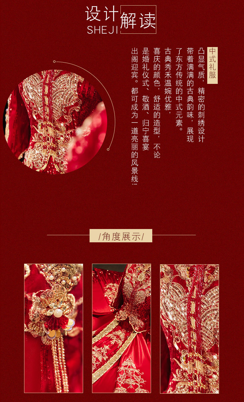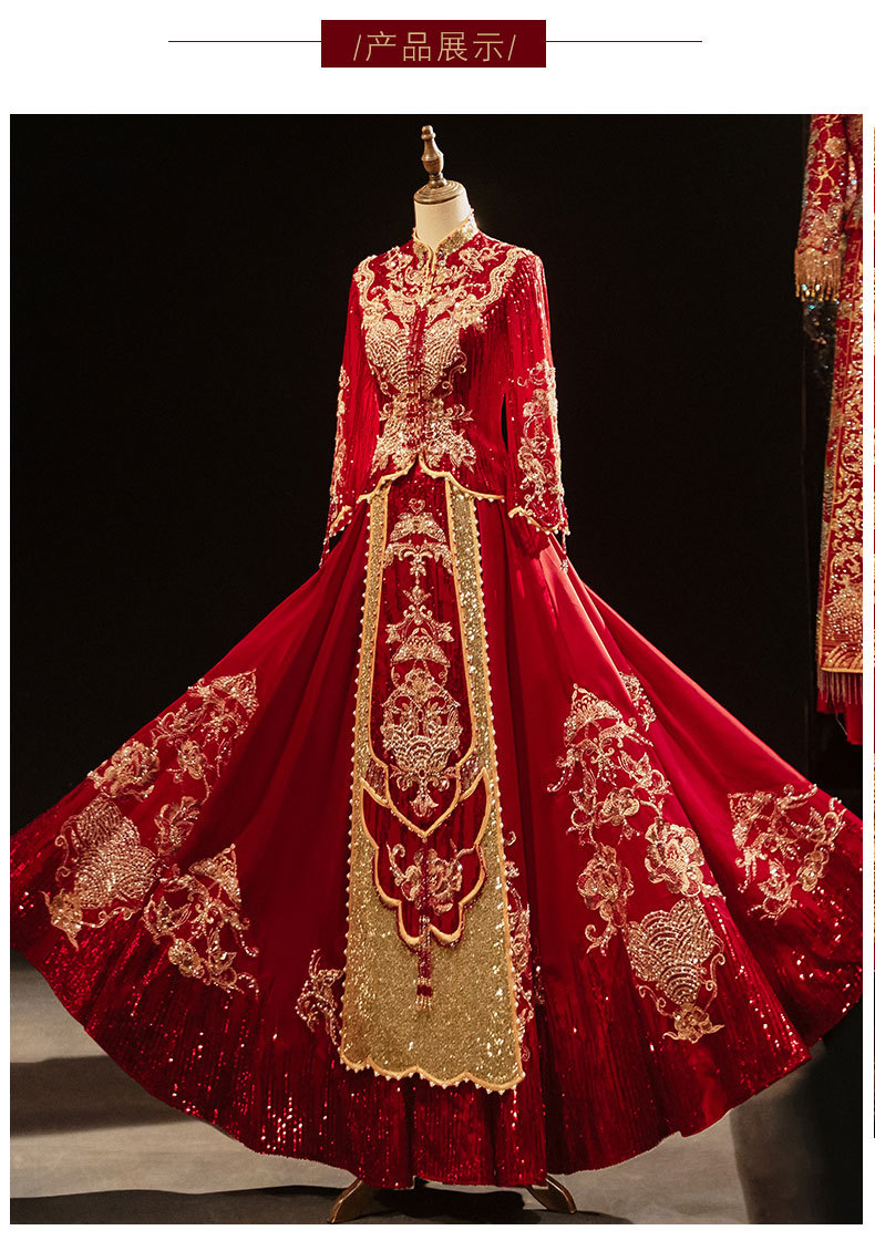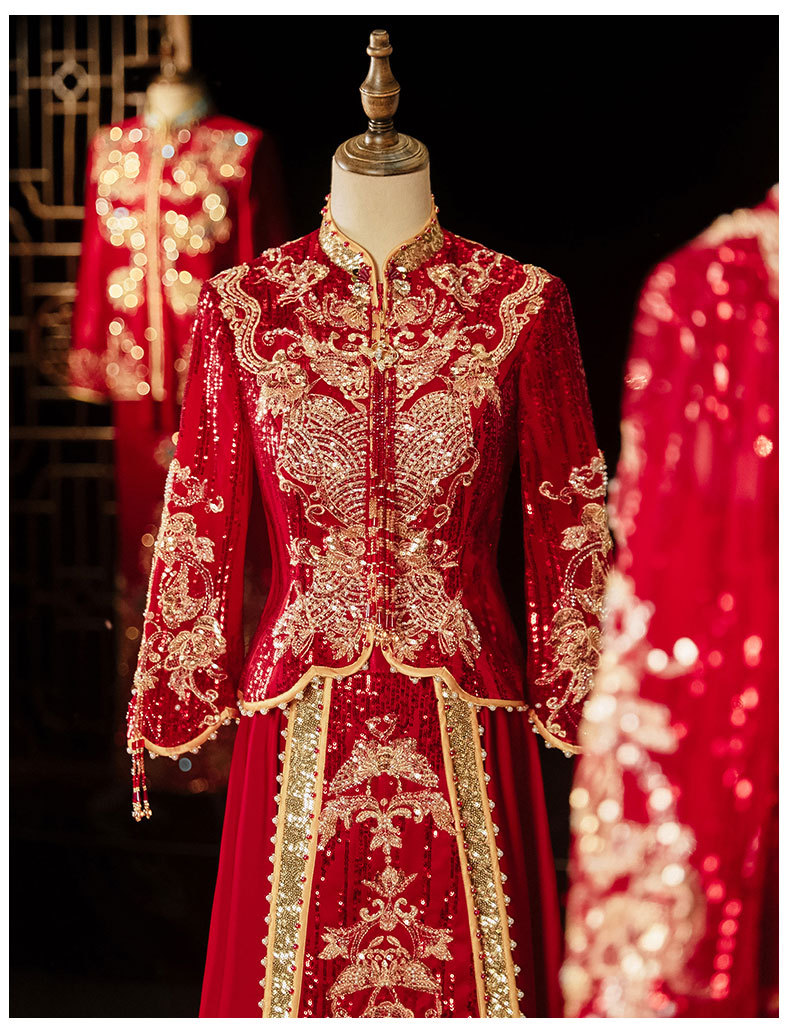 Pakaian Xiuhe Pakaian Roti Panggang Gaya Baru Pengantin Wanita Pakaian Pernikahan Cina Gaun Mewah Berkelas Gaya Baru Yang Elegan dari Pakaian Paviliun