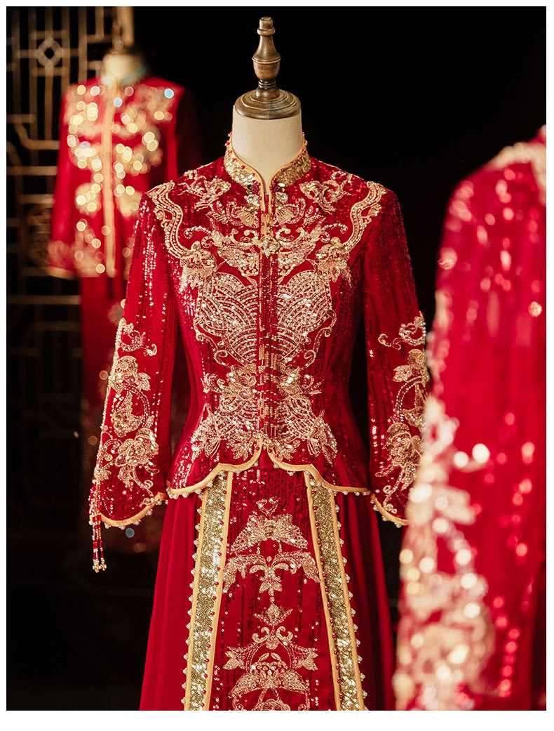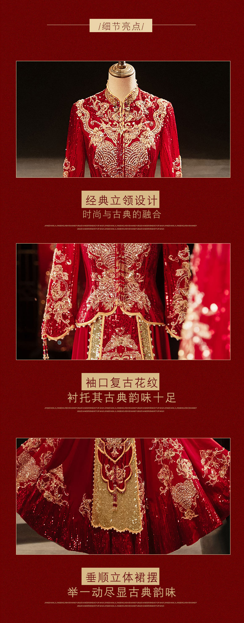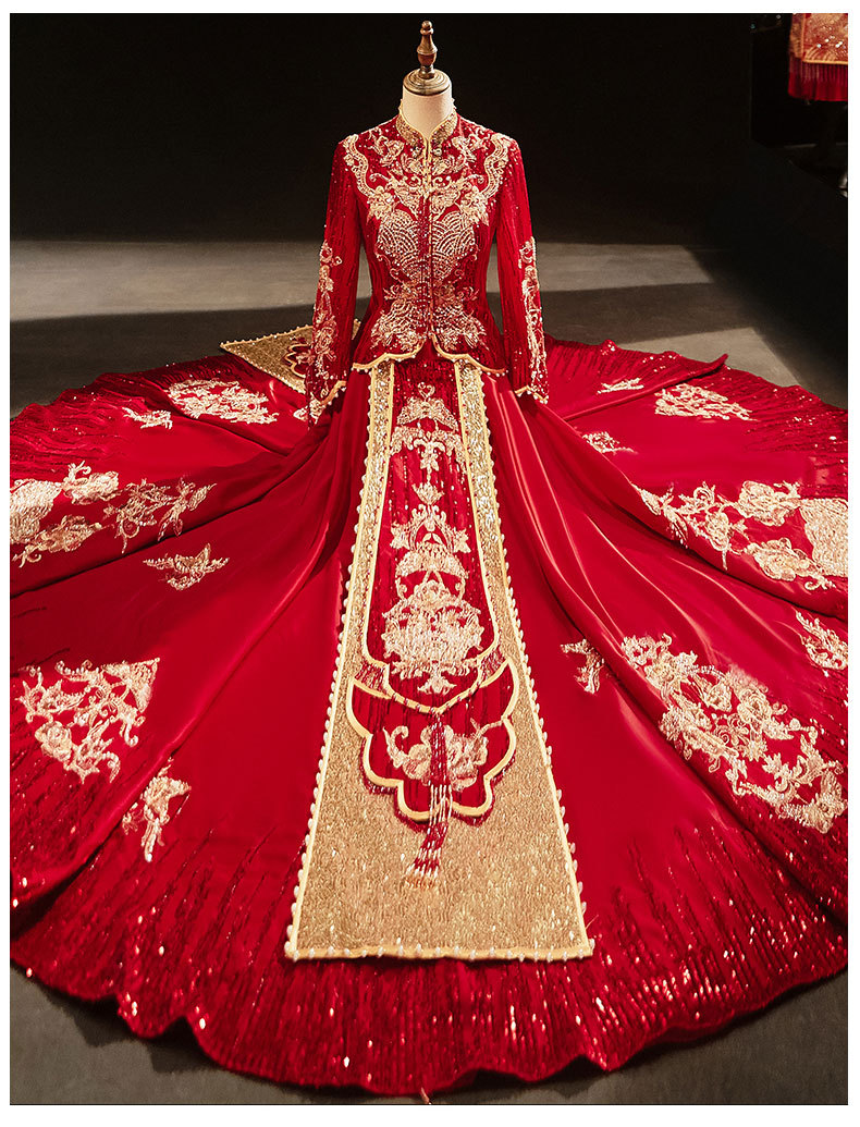 Pakaian Xiuhe Pakaian Roti Panggang Gaya Baru Pengantin Wanita Pakaian Pernikahan Cina Gaun Mewah Berkelas Gaya Baru Yang Elegan dari Pakaian Paviliun
