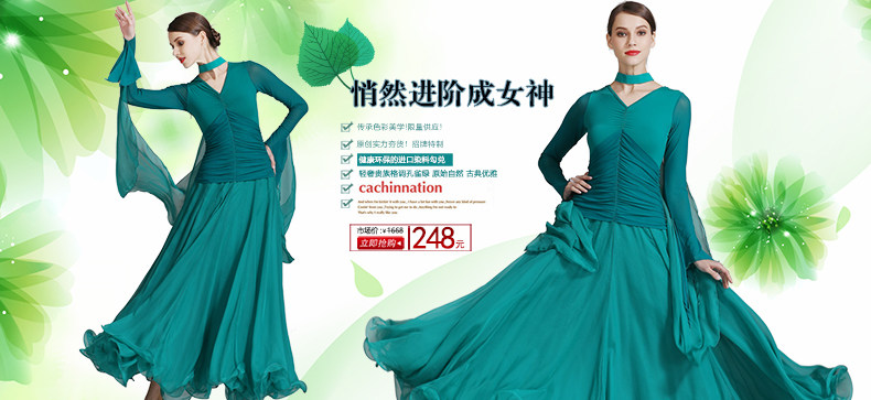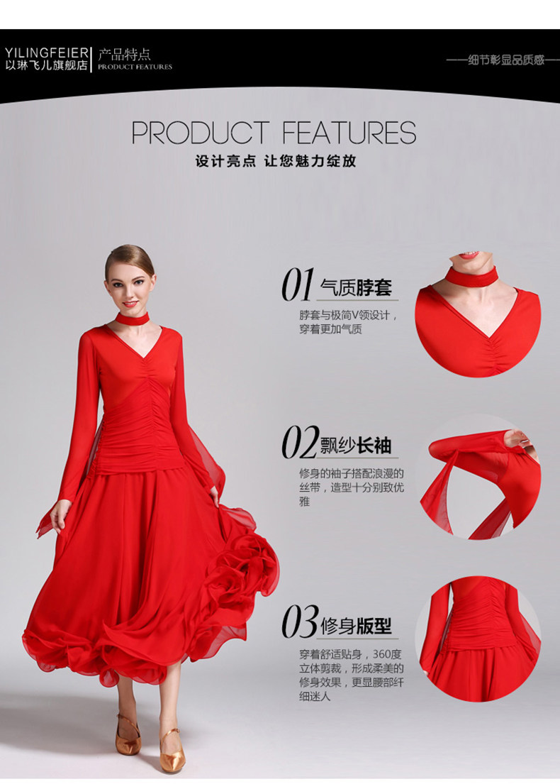 Yi Lin Fei er gaun dansa modern-50 kostum tari standar nasional rok dansa Waltz sifon rok ayunan besar kostum performa