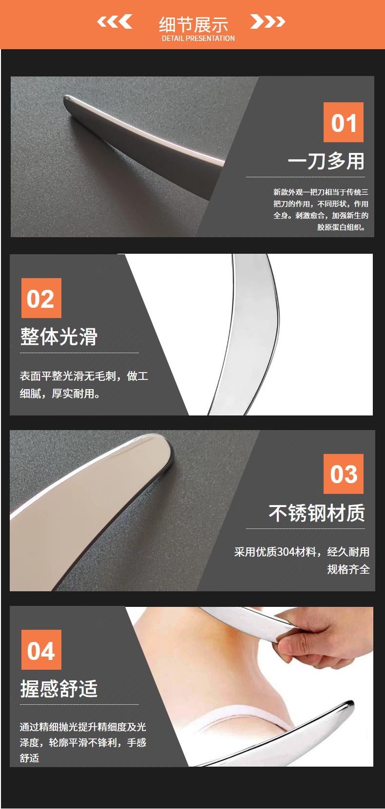 Pisau Pindai kekuatan otot fasikal pisau baja tahan karat alat pijat lepas betis kaki logam