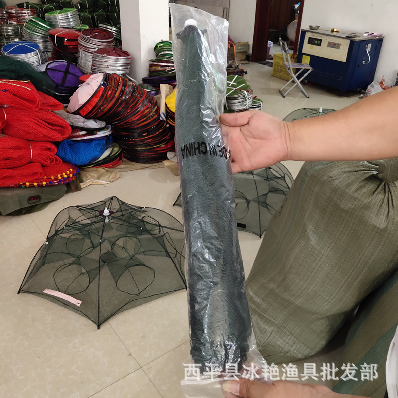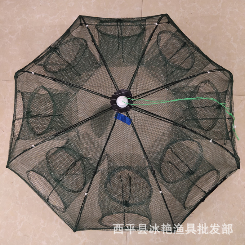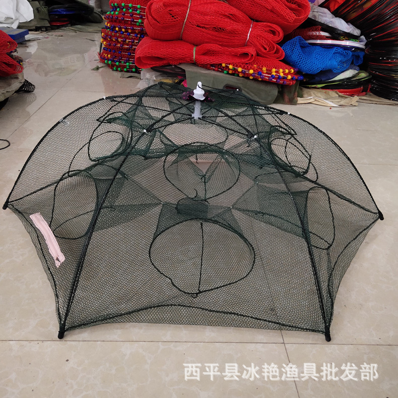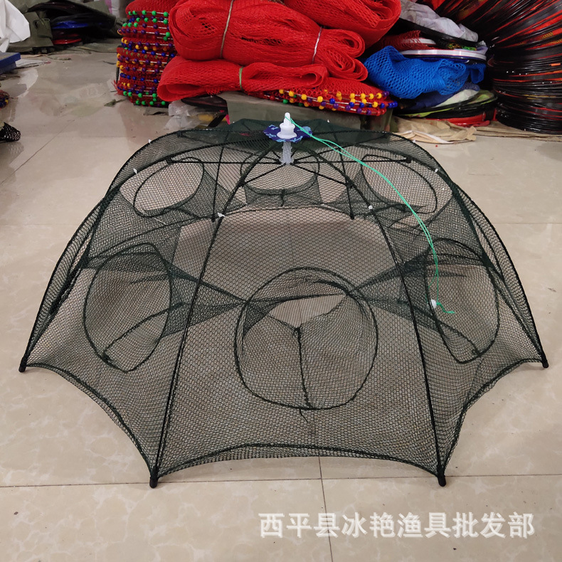 Jaring ikan jala payung multi spesifikasi, jaring ikan kandang udang jaring ikan bergerak jaring lobster otomatis lipat taman payung perlengkapan memancing