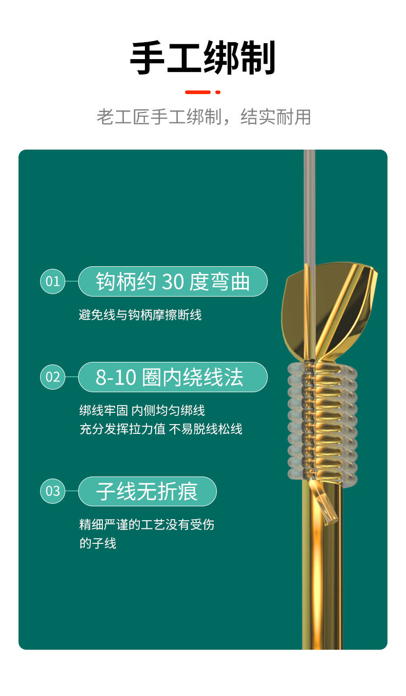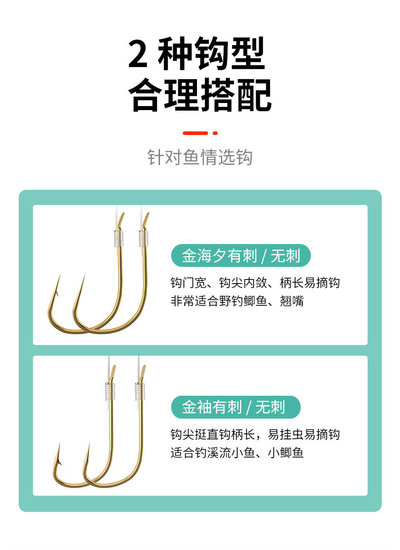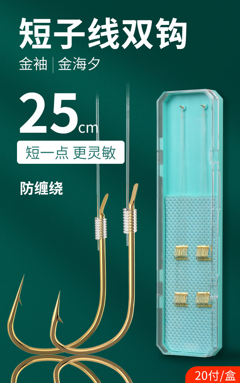 Rig pancing kait ganda siap pakai dengan selubung emas, kait ikan mas crucian liar asli, set anti kusut.