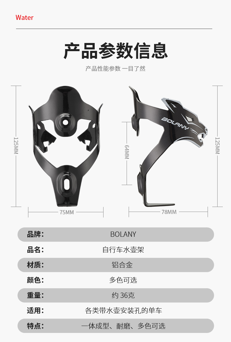 Bolany pemegang botol minum sepeda gunung, pemegang botol air gradien aluminium paduan portabel terintegrasi