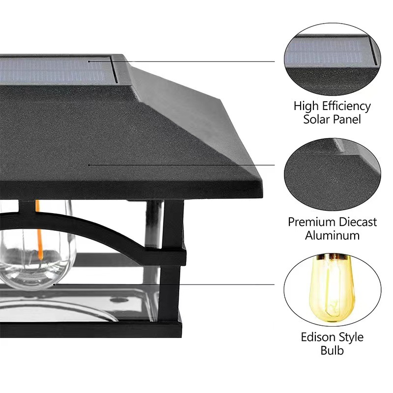 Tungsten lampu pagar tenaga surya, lampu taman tutup pilar lampu taman tahan air