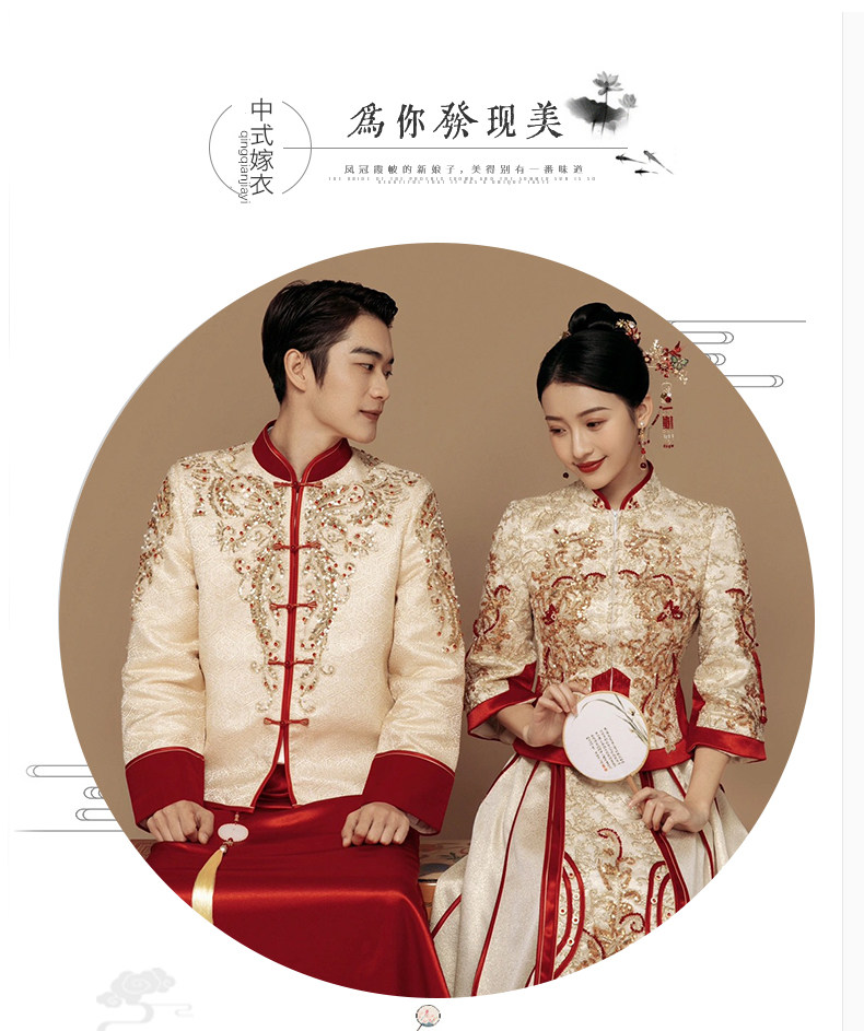 Gaun pengantin Golden Xiuhe, gaya baru 2025 gaun pengantin Cina, gaun slim-fit motif naga dan phoenix, gaya tipis musim panas.