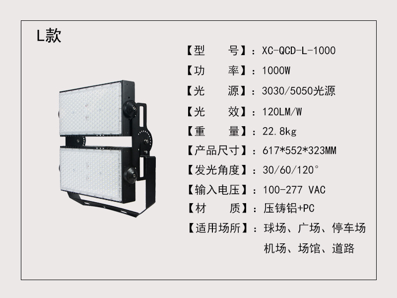 Lampu stadion led daya tinggi Super terang, lampu lapangan sepak bola 1000W, lampu sorot tinggi jembatan bandara persegi 1500W