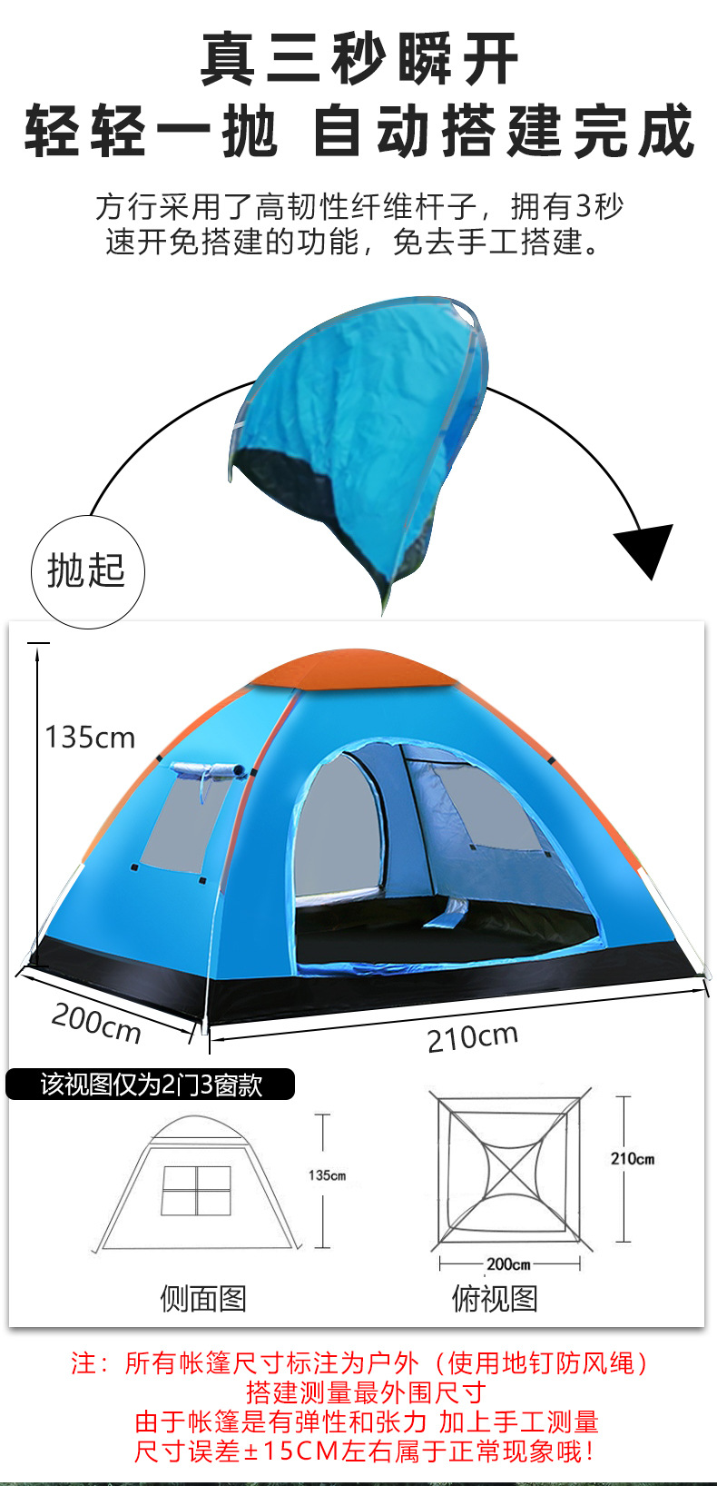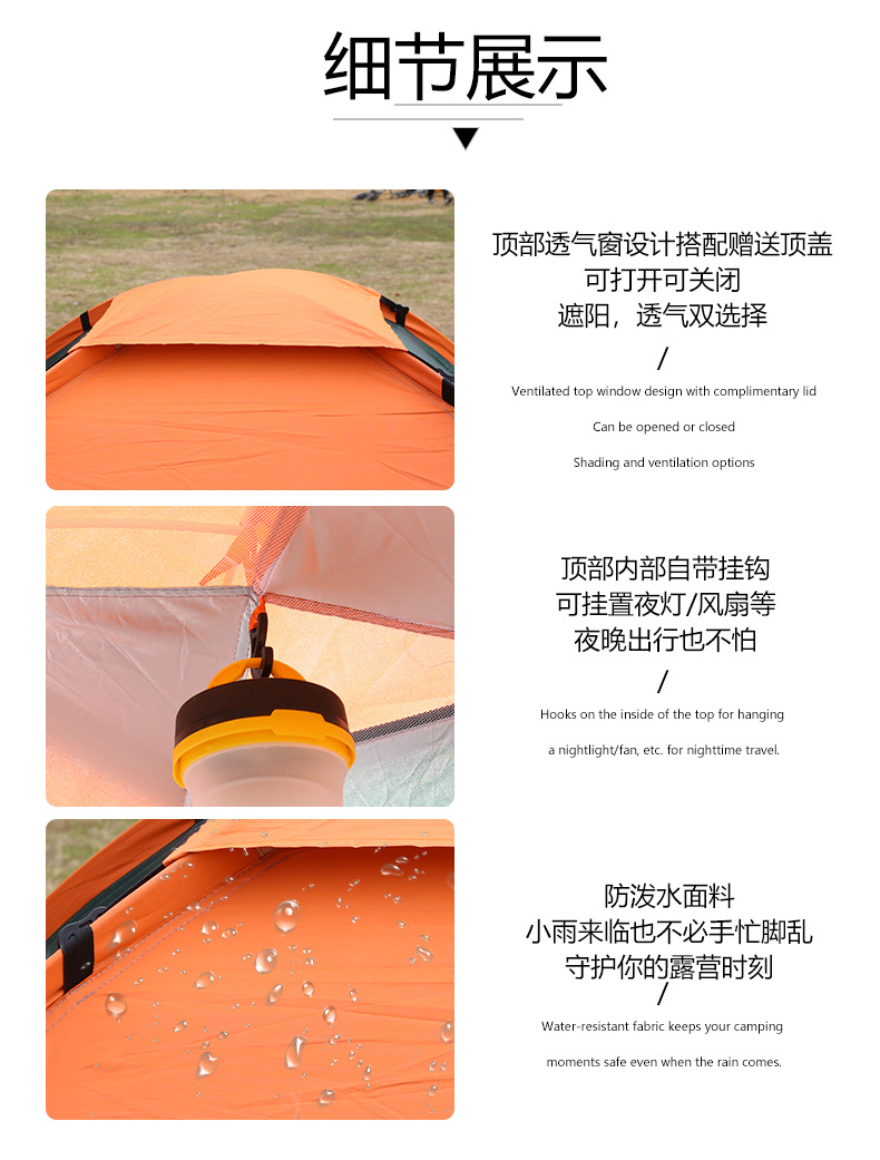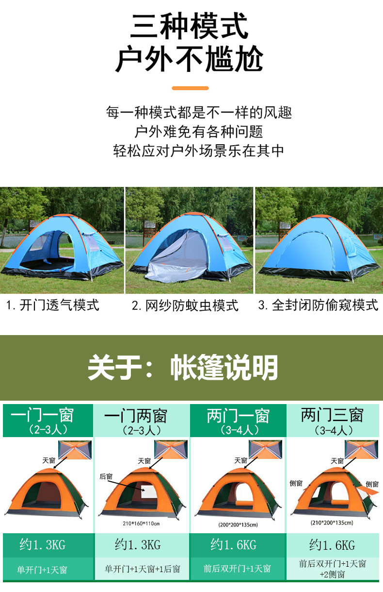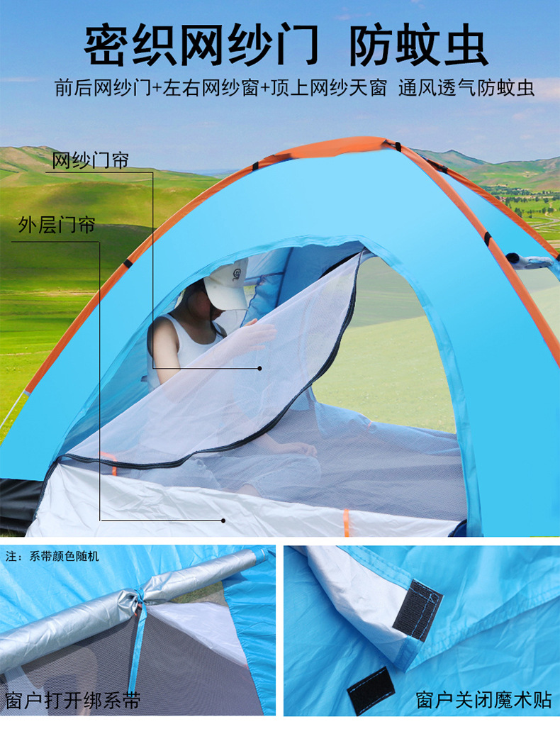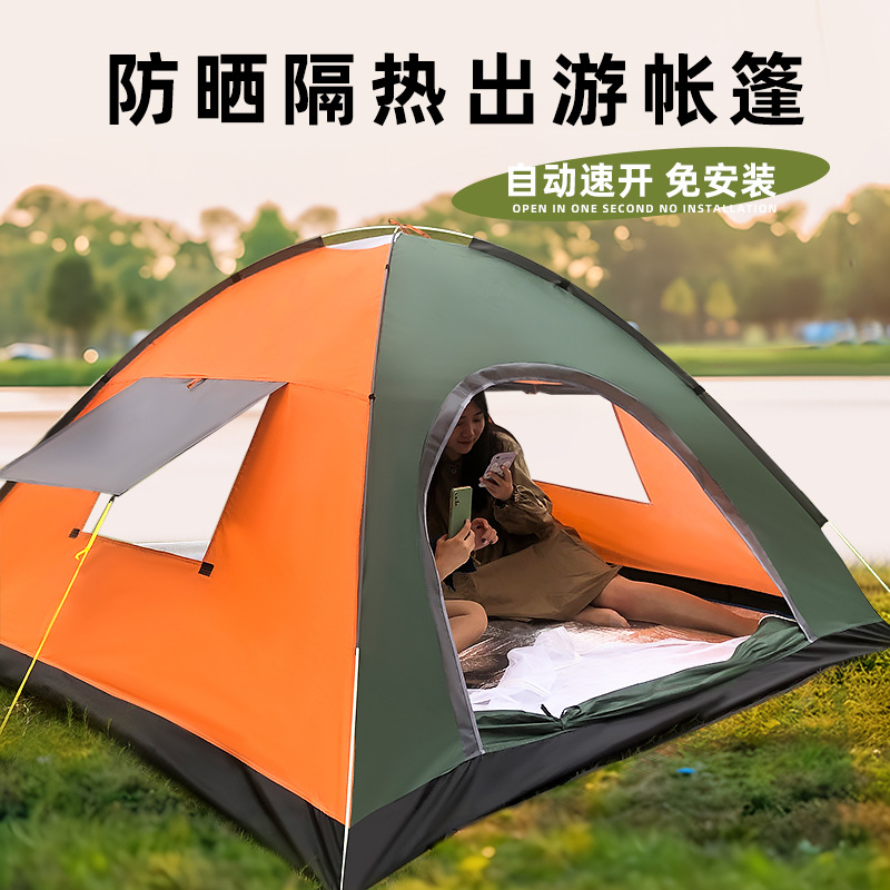 Tenda luar ruangan portabel lipat otomatis 3-4 orang, tenda lengkap berkemah luar ruangan, taman Kemah pantai
