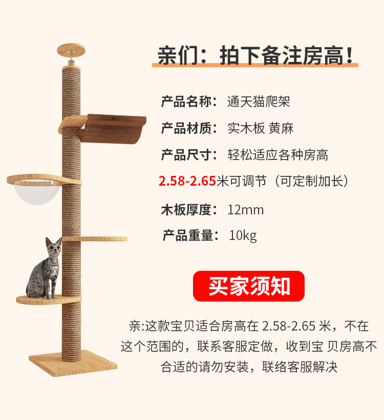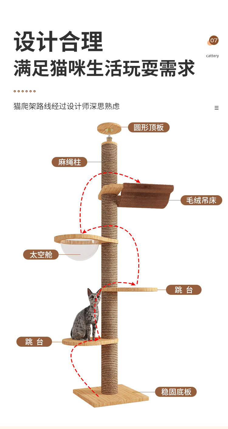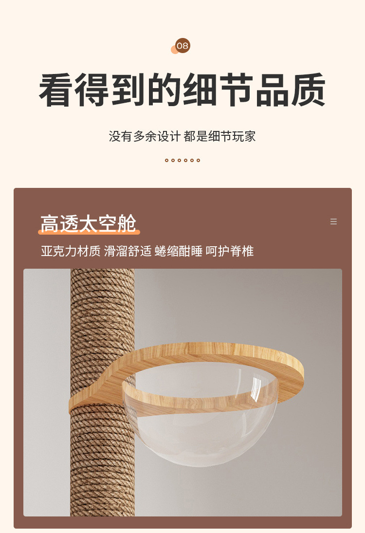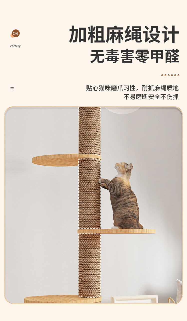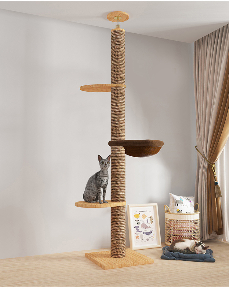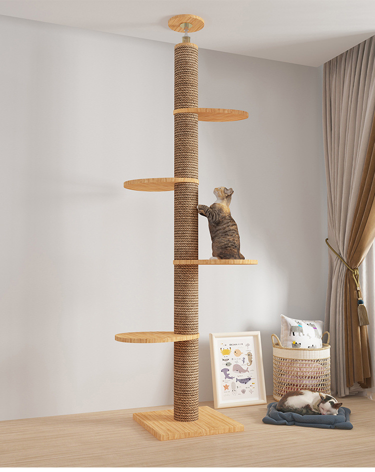 Rak panjat kucing dengan tiang setinggi langit, pohon tempat tidur kucing, kapsul ruang angkasa, tiang garukan kucing, mainan kucing kayu solid, struktur panjat, langsung dari pabrik, empat tingkat.