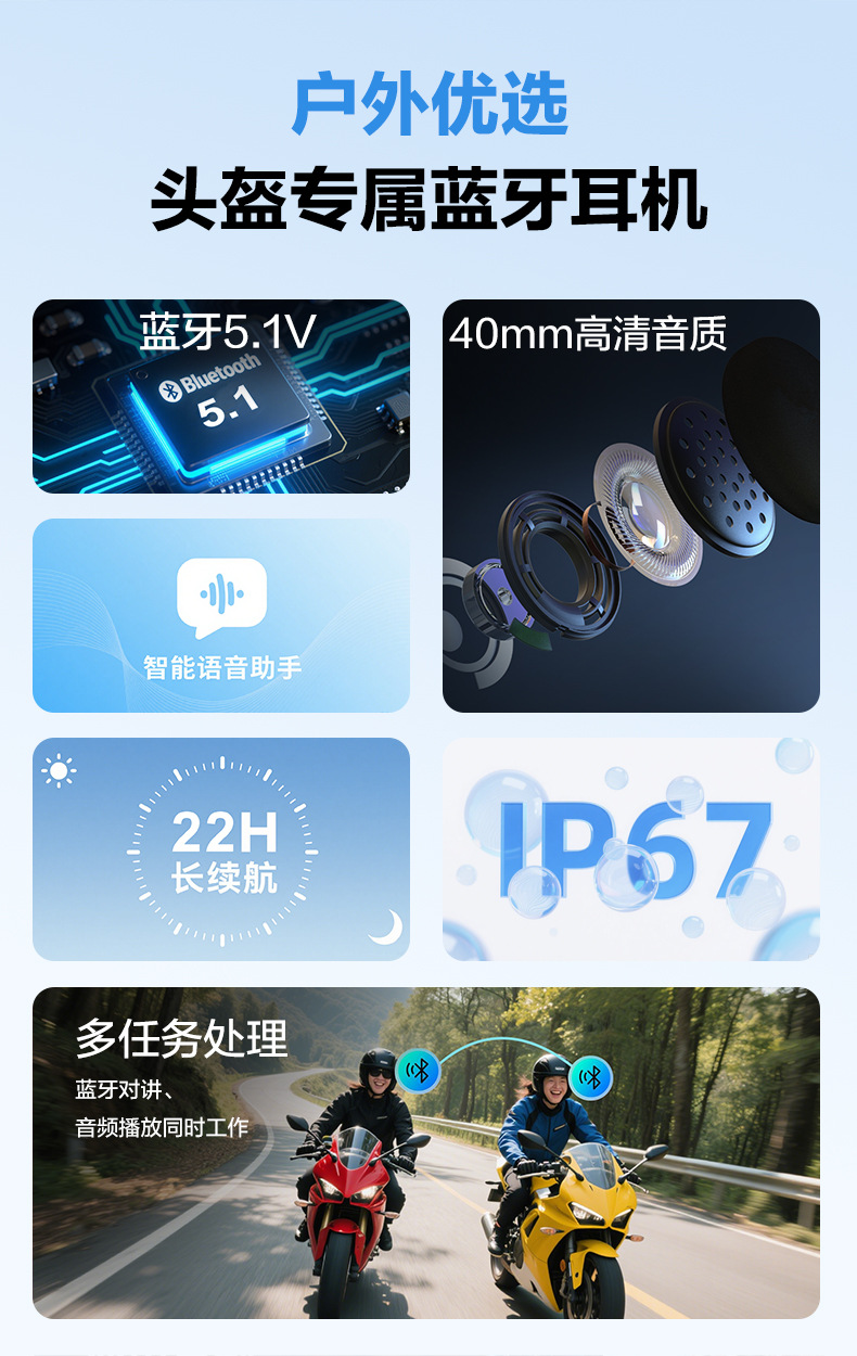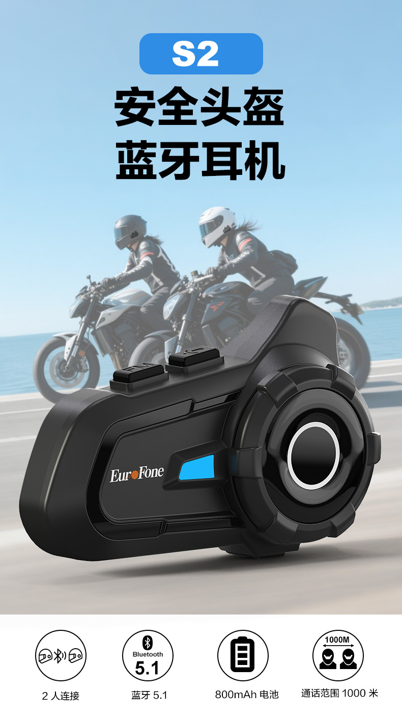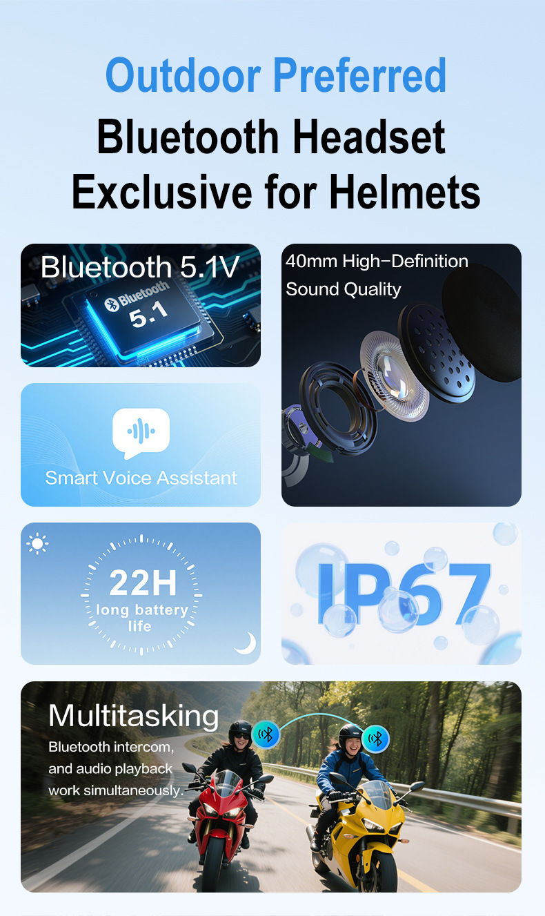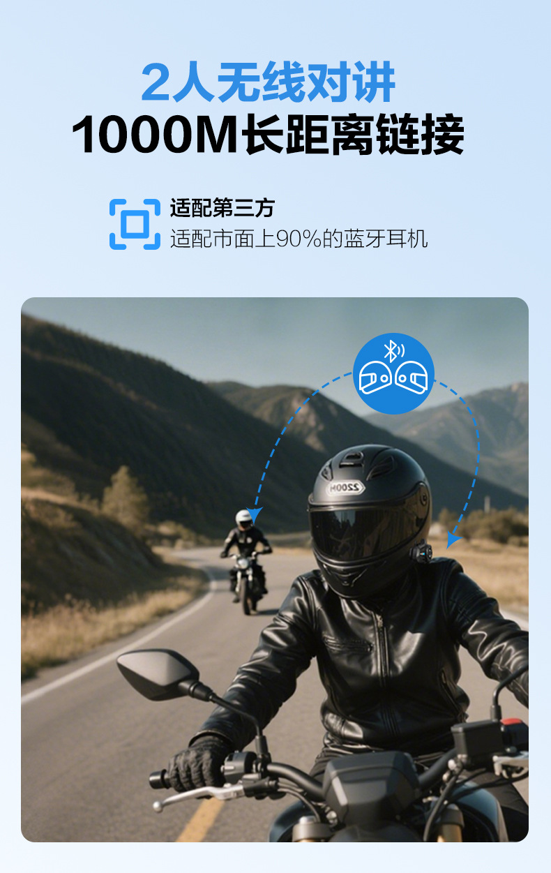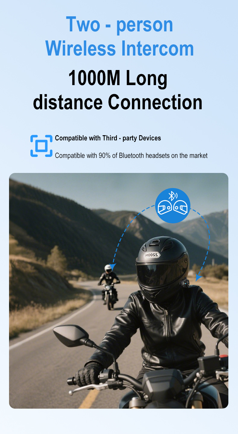 Headset Bluetooth helm motor model pribadi dari pabrik, interkom 2 orang dengan jarak 1000 meter, headset interkom Bluetooth helm.