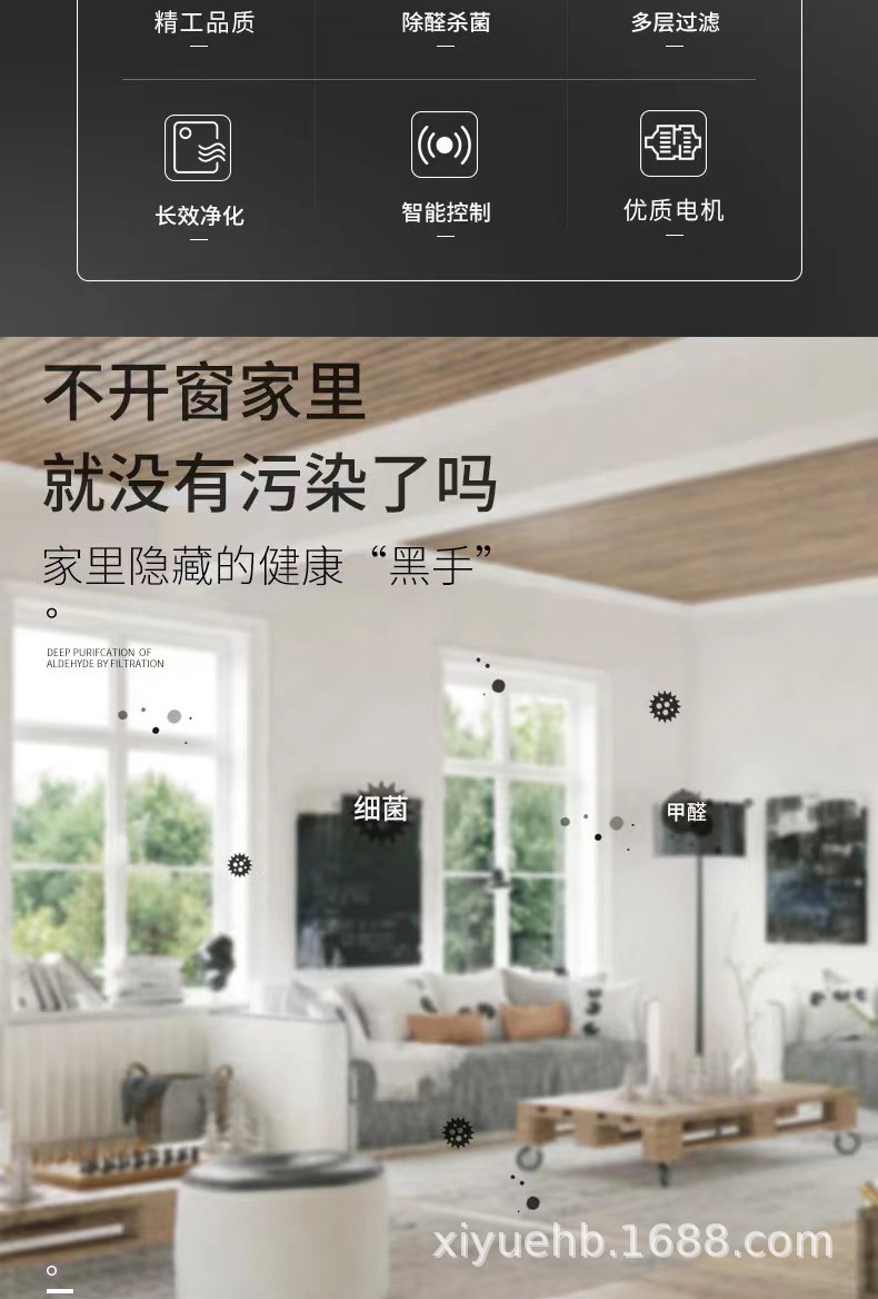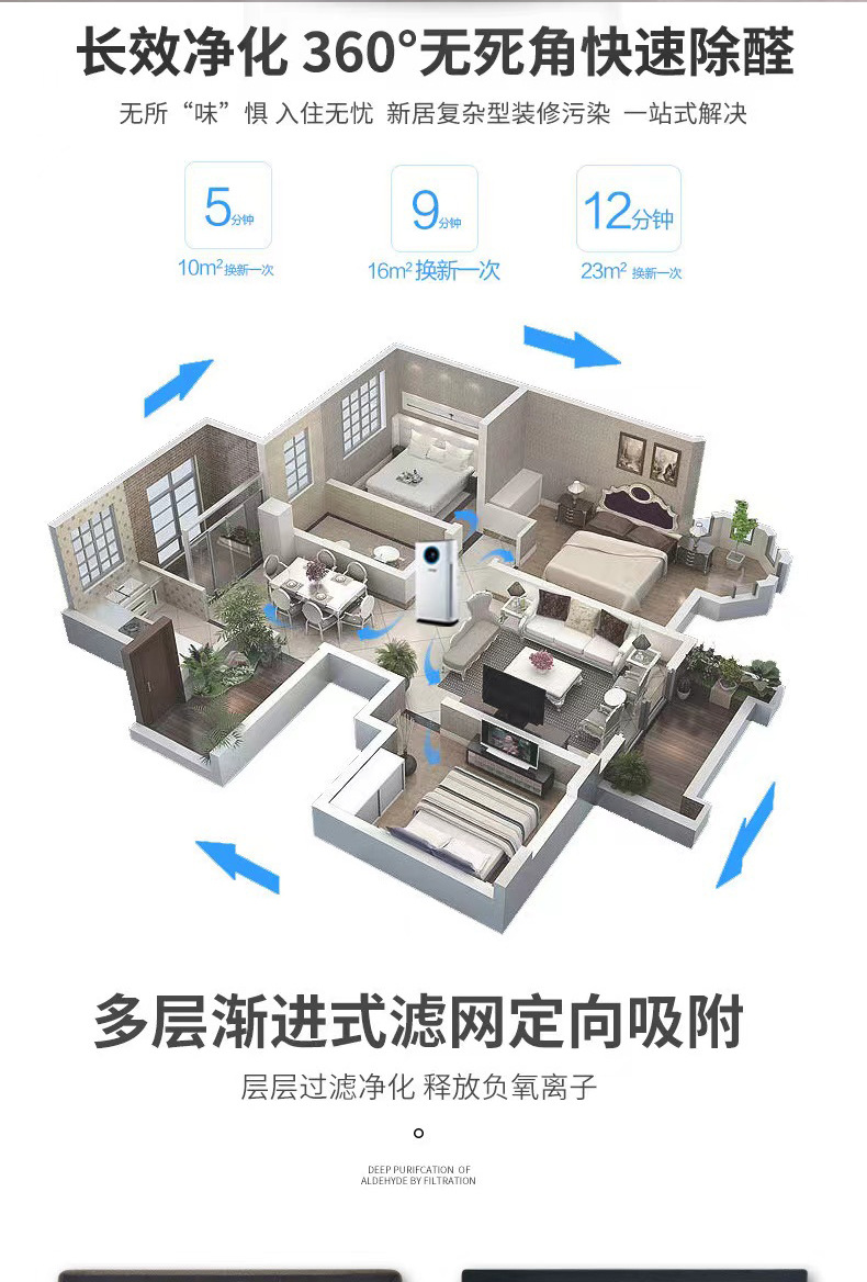 Produsen pembersih udara, penghilang formaldehida, mesin desinfeksi ruangan, penghilang bau dan asap rumah tangga, penggunaan komersial pintar dengan ion negatif.