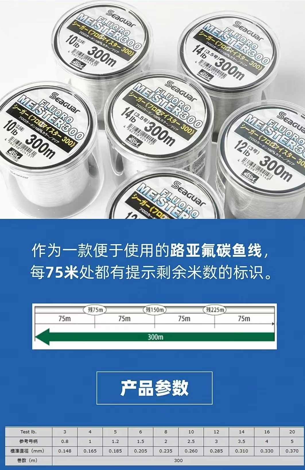 SEAGUAR Senar Karbon Master 300M Umpan Senar Pemimpin Senar Fluorokarbon Senar Pancing Sub-line Senar Pancing Jepang