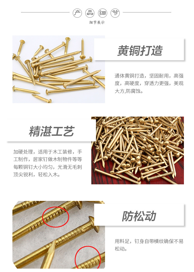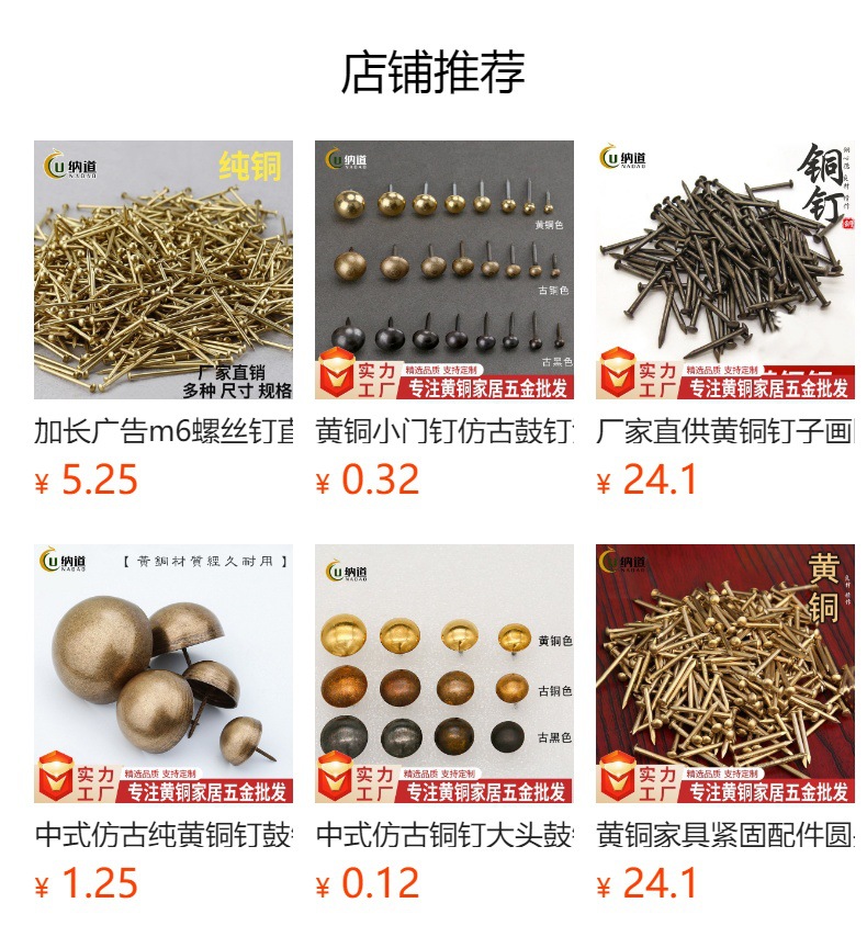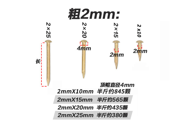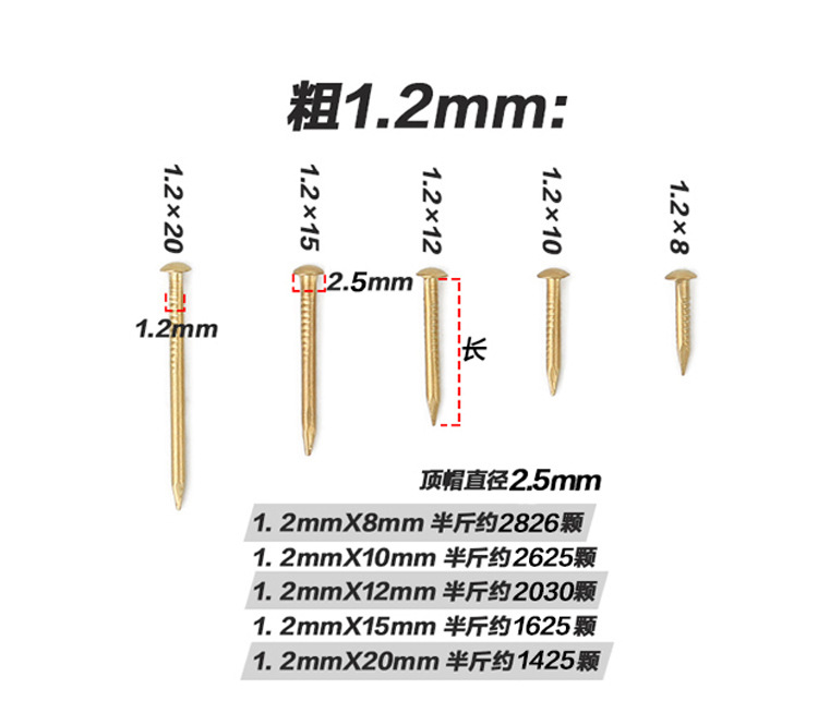 Aksesori pengikat furnitur kuningan paku tembaga kepala bulat paku kuningan murni emas antik lukisan kuku tembaga kecil kepala bulat dekoratif
