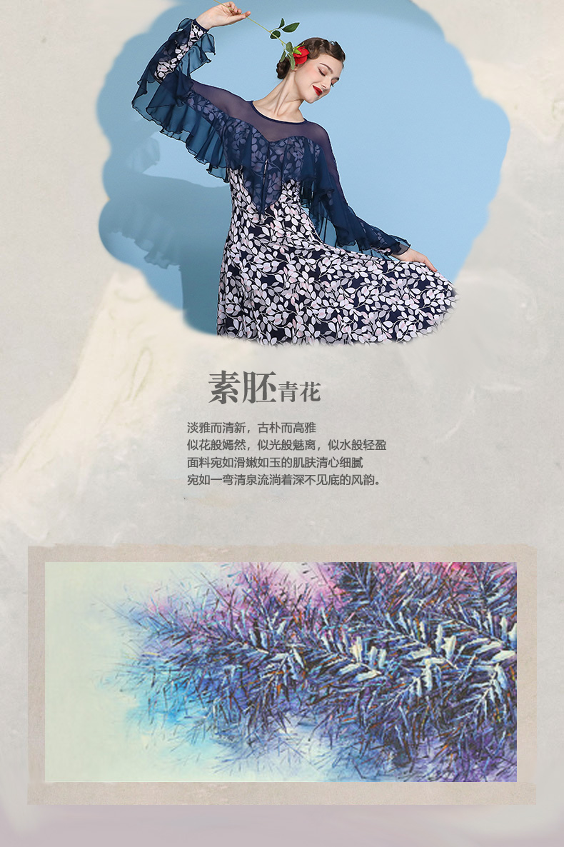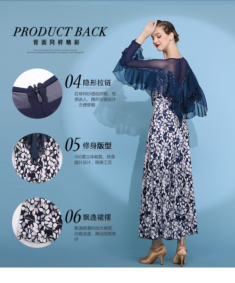 Gaun dansa modern baru biru dan putih embrio polos pakaian dansa standar nasional 2114 rok ayun latihan Waltz