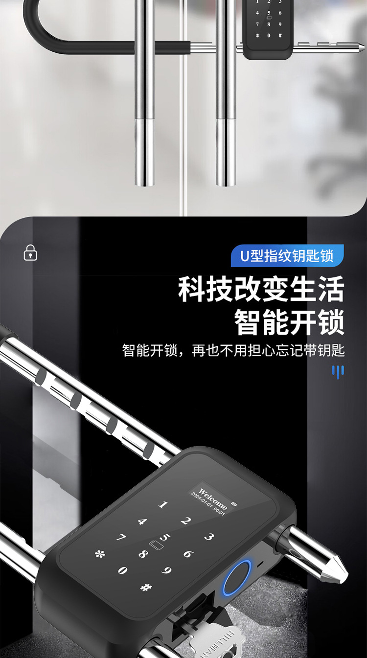Kunci pintu kaca berbentuk U, kunci sidik jari, kunci kata sandi, kunci pintu grafiti, kunci pintu perusahaan, kunci pintar berbentuk U, pembuka kunci jarak jauh Bluetooth, kunci pintar