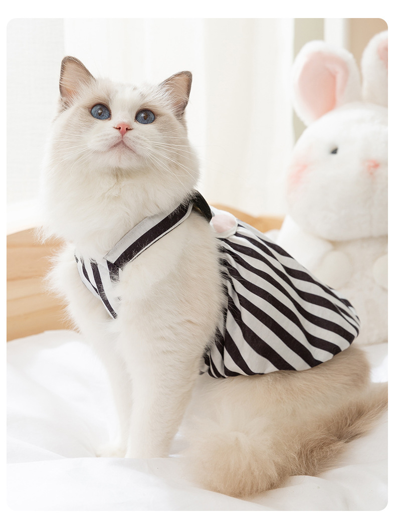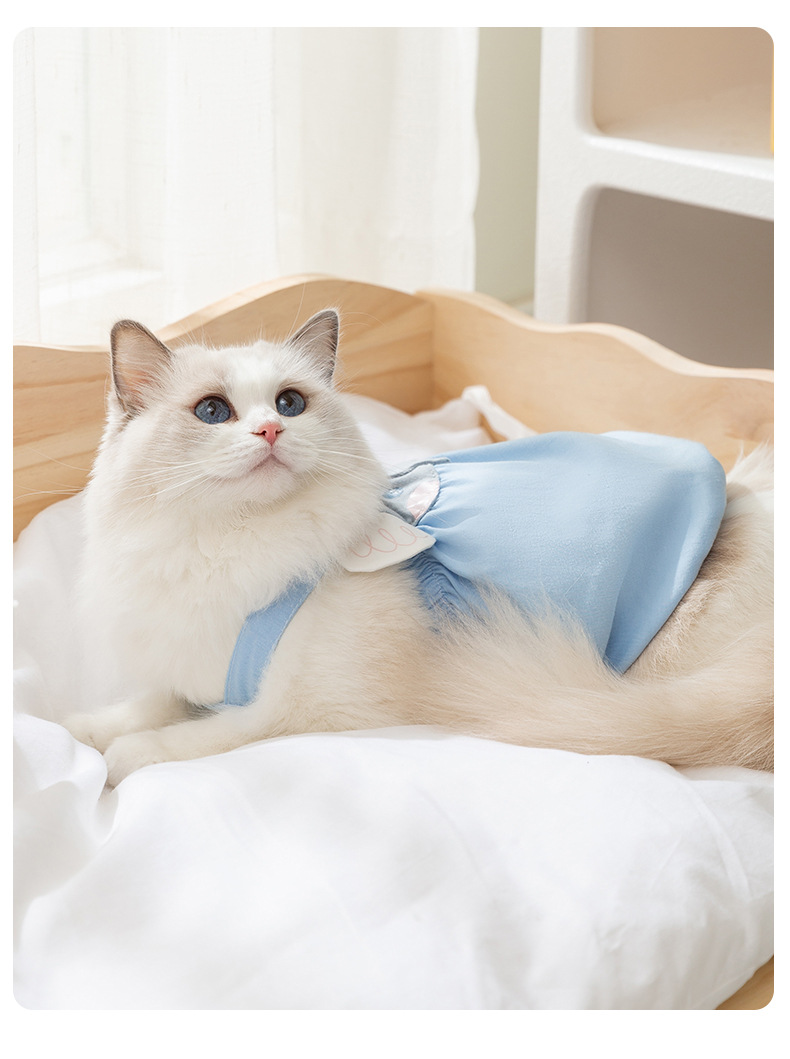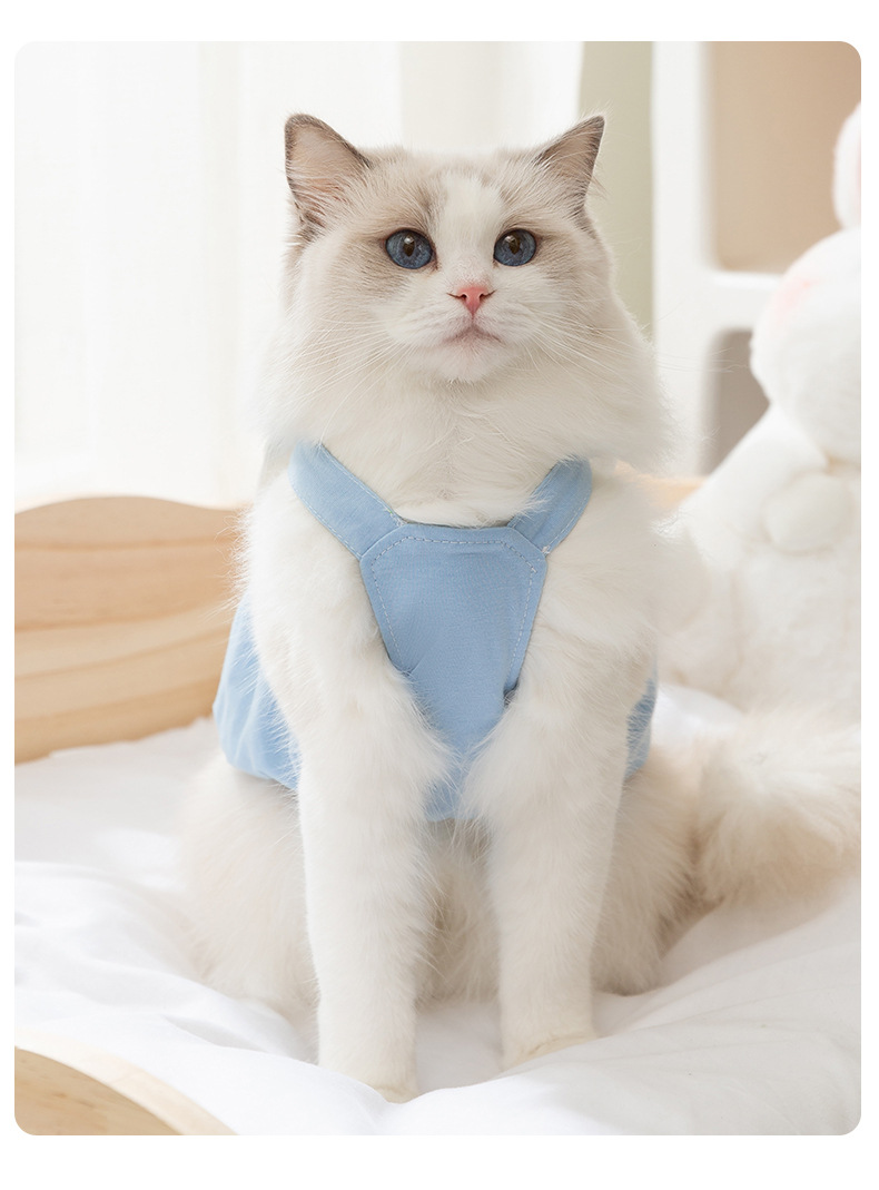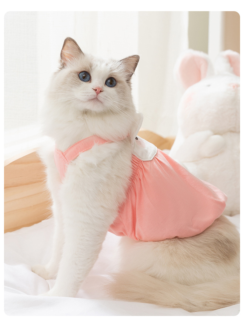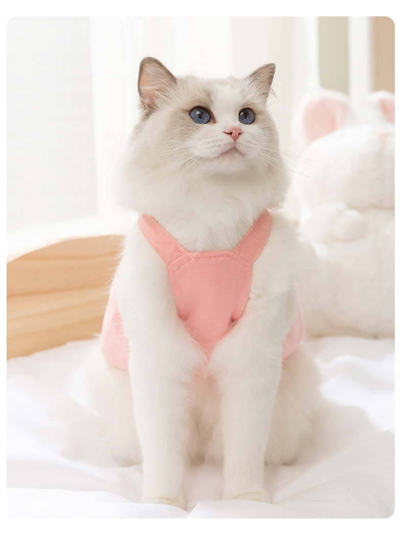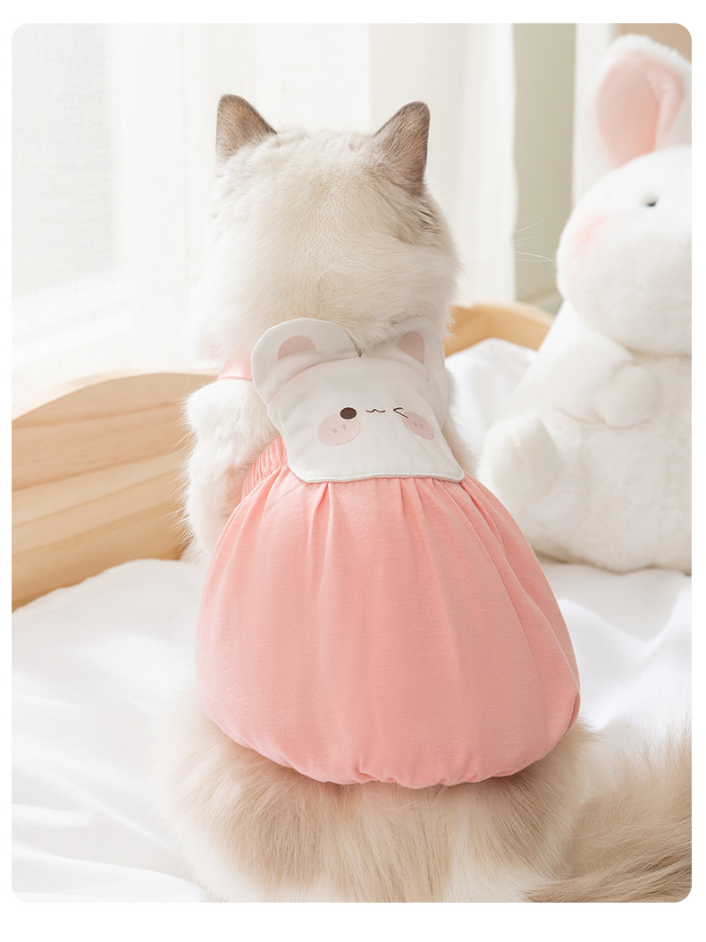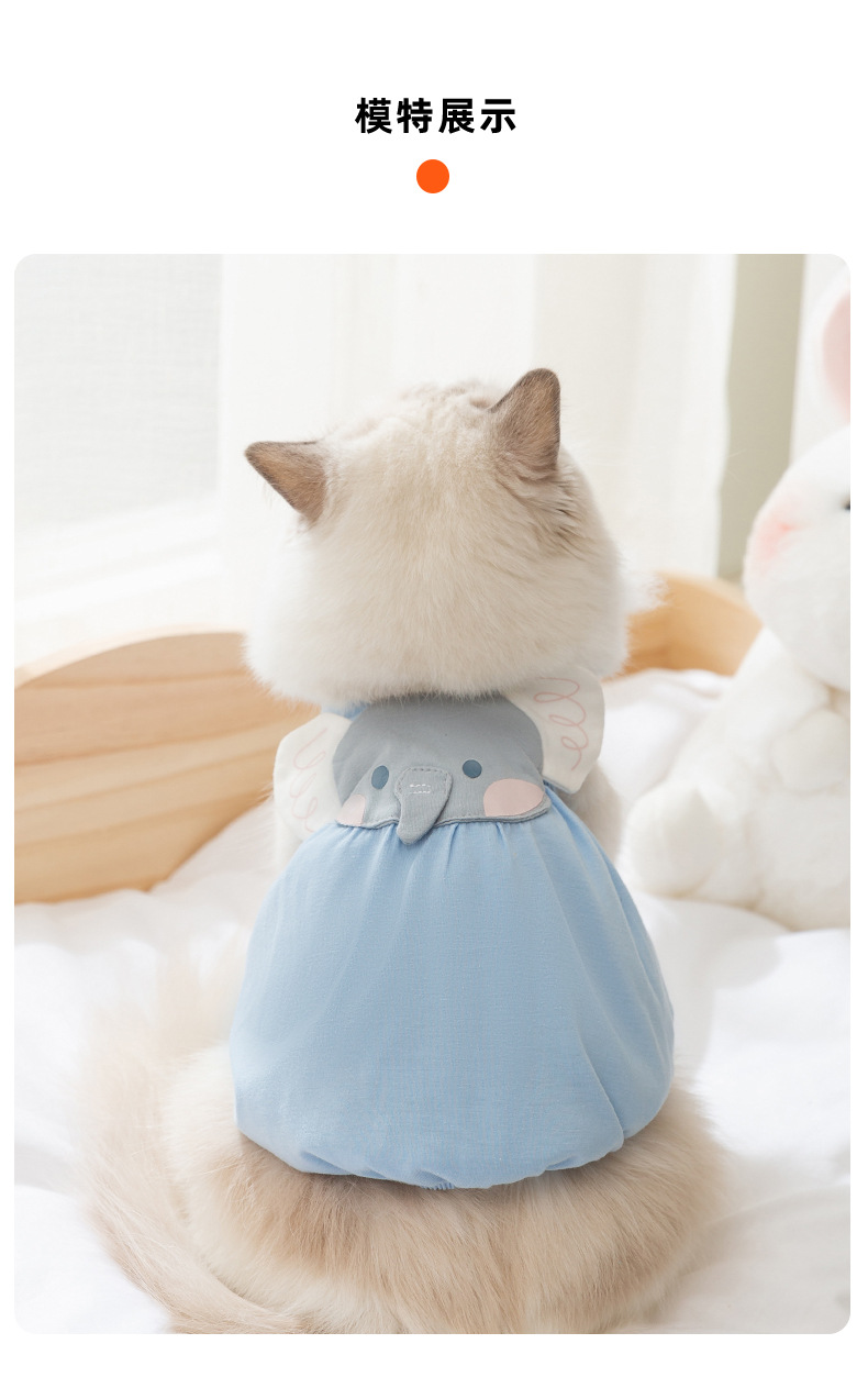 Pakaian kucing bergambar gajah kartun, gaun suspender gaya musim semi dan musim panas, Ragdoll biru, pakaian kucing peliharaan, pakaian anak kucing, pakaian anjing peliharaan