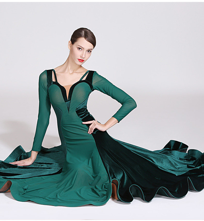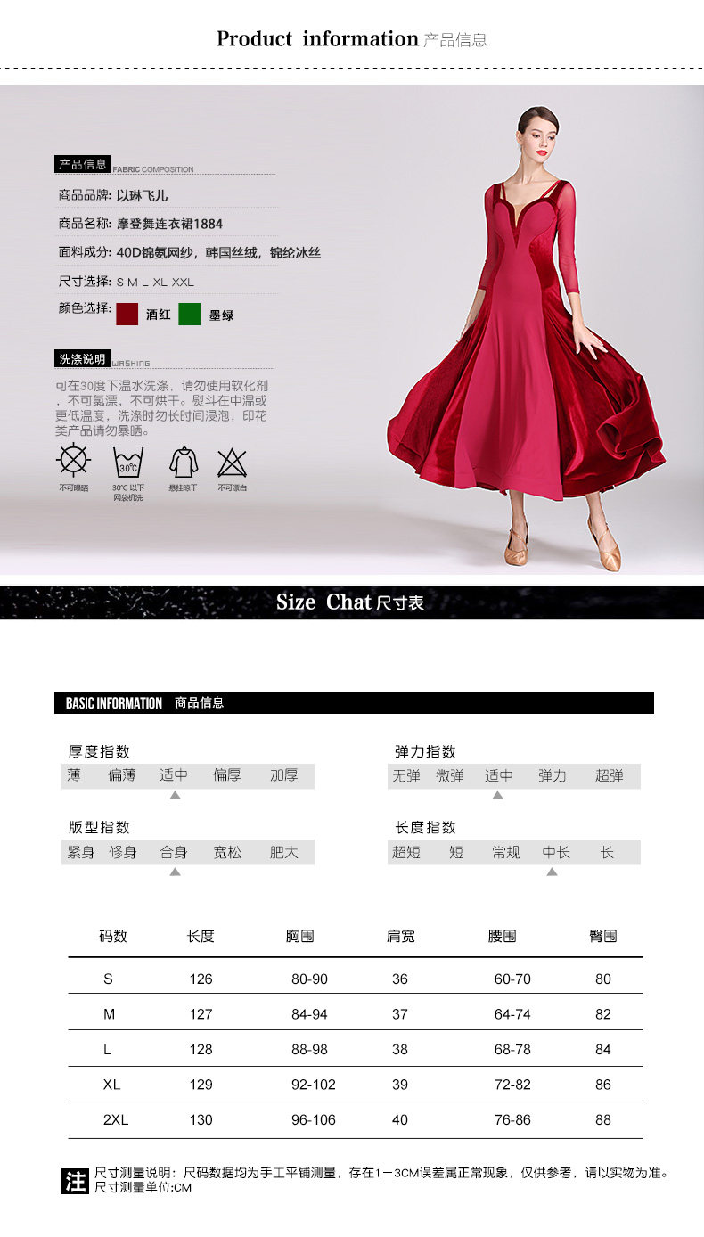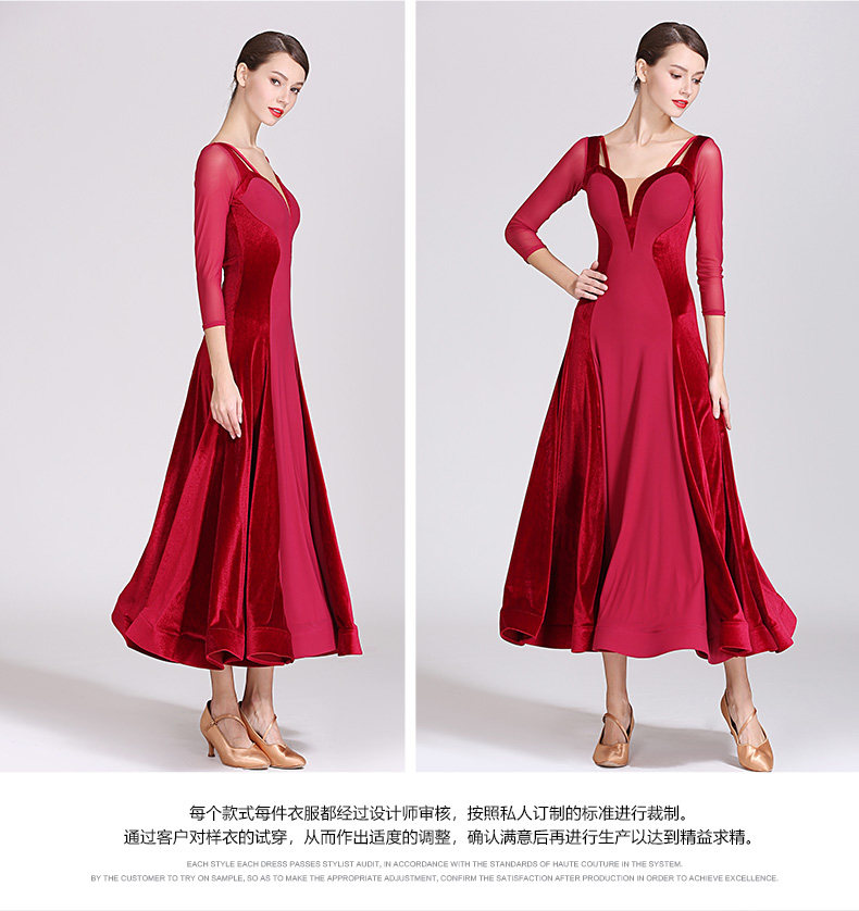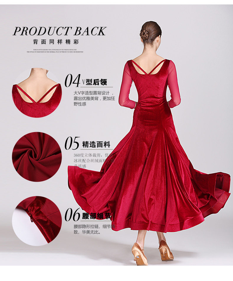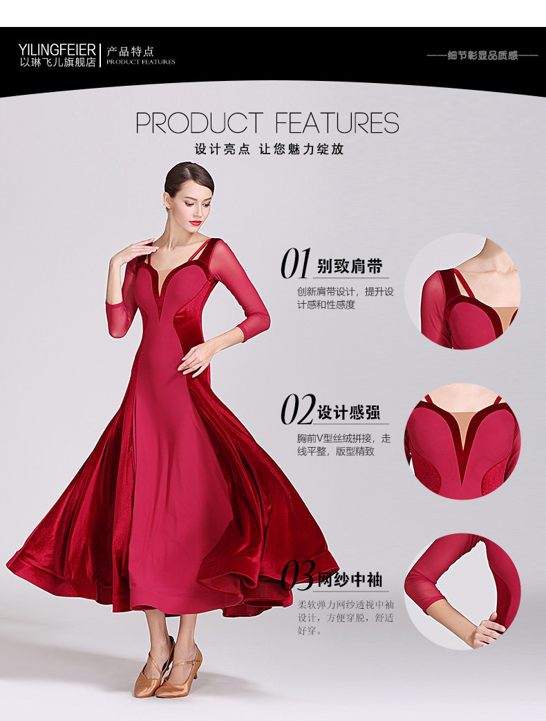 Kompres kekuatan Barang Yi Lin Fei er! Gaun Rok dansa modern beludru, pakaian dansa standar nasional 1884