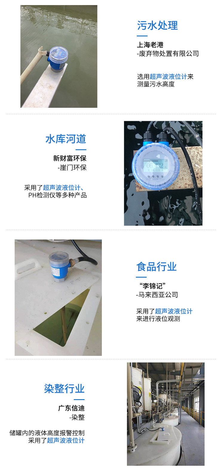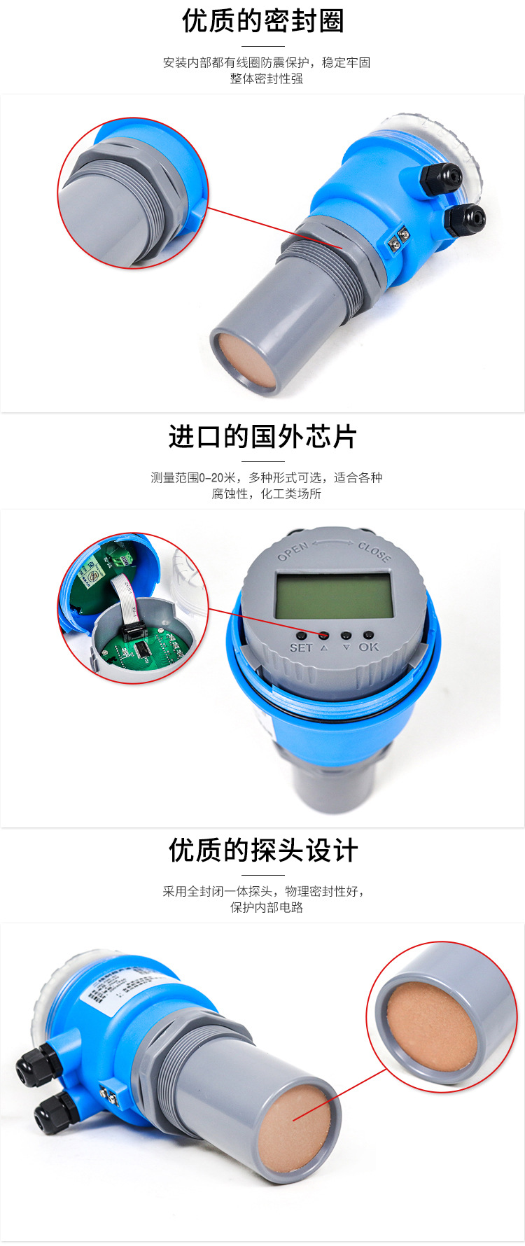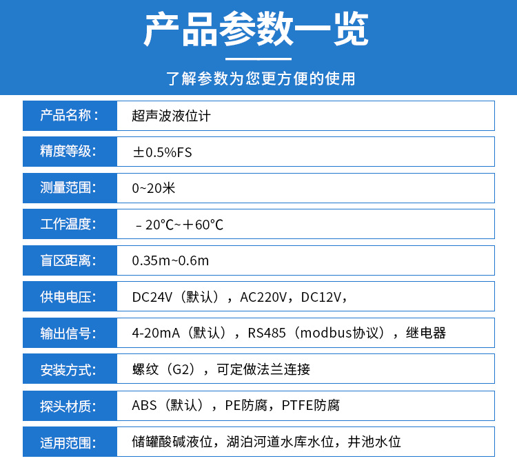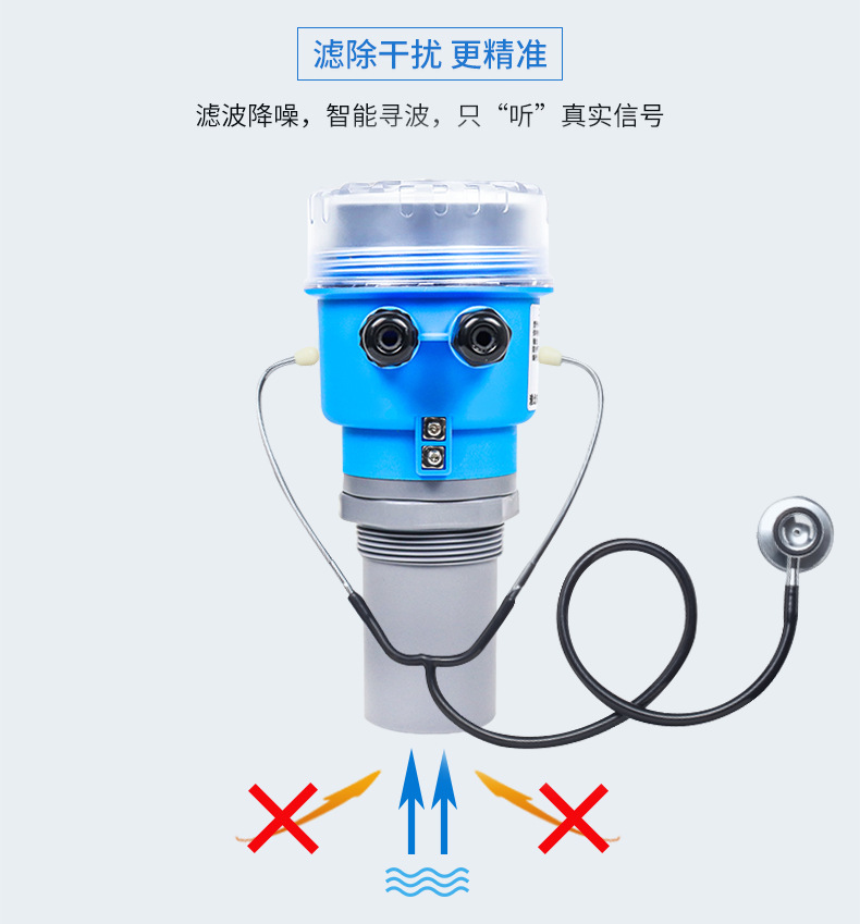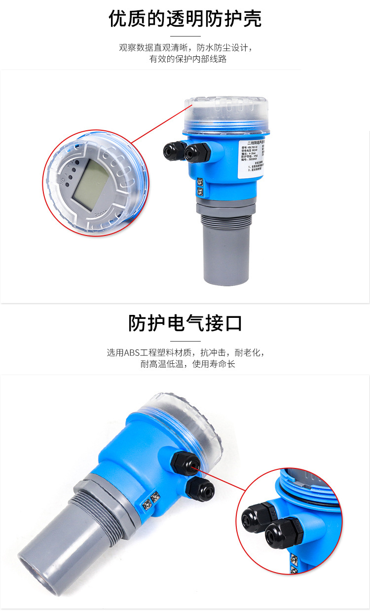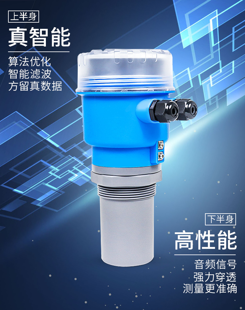 Pengukur level ultrasonik cerdas, pengukur level digital anti korosi, tangki penyimpanan tingkat bahan 4-20mA, pengontrol tingkat cairan presisi tinggi