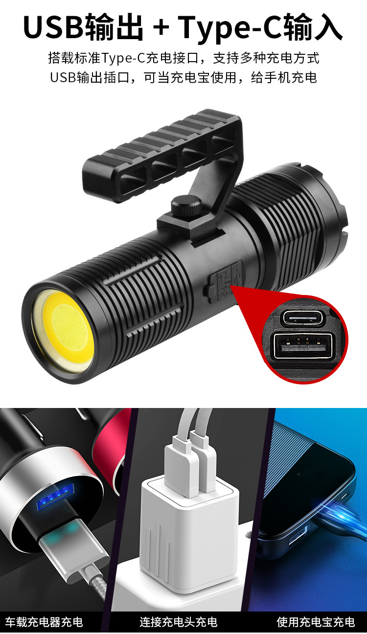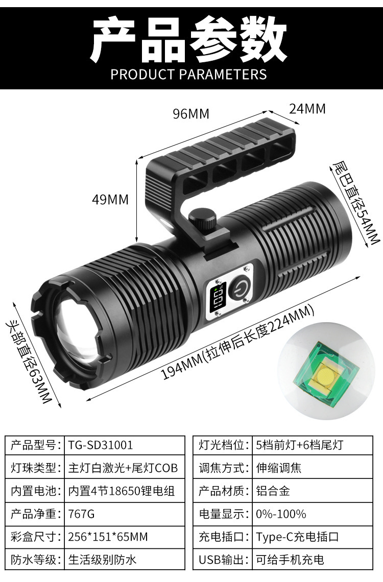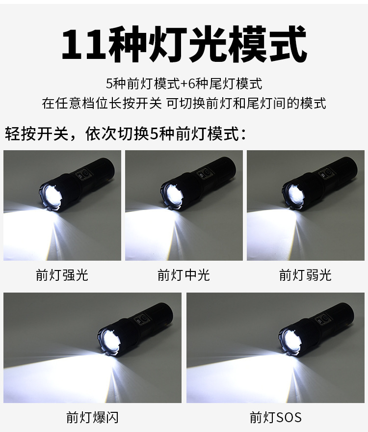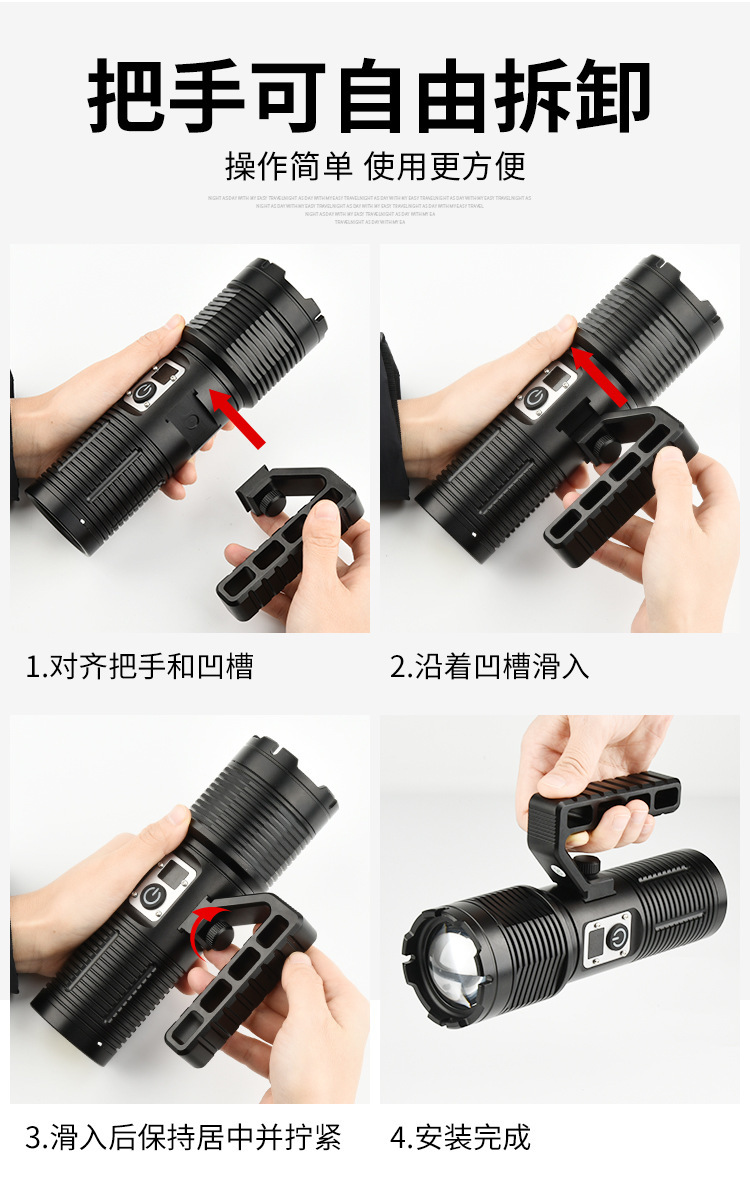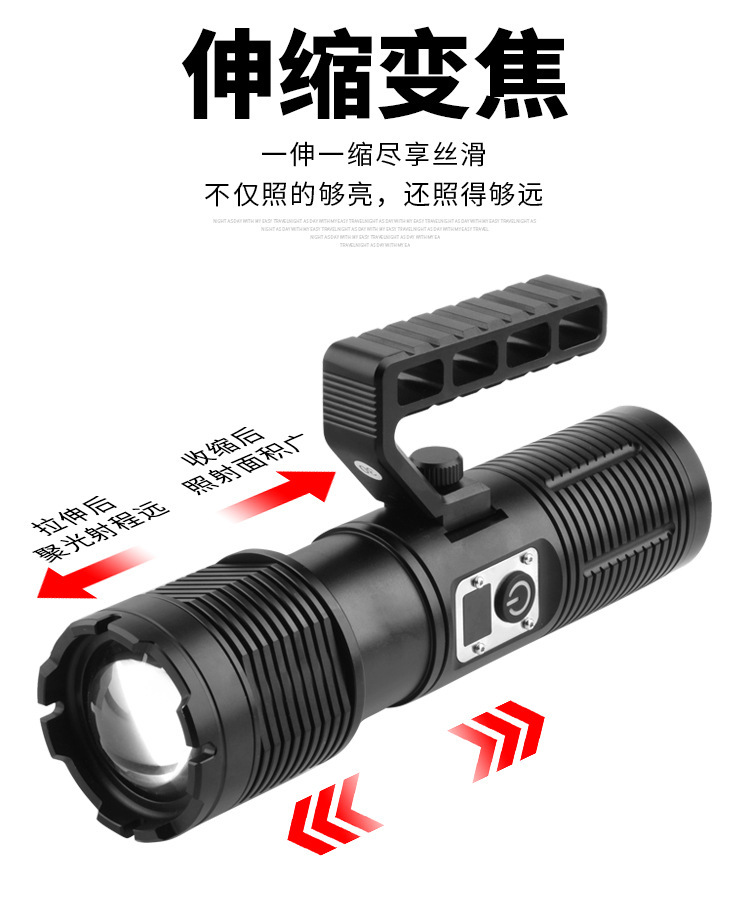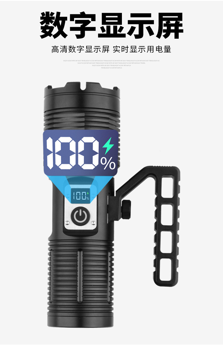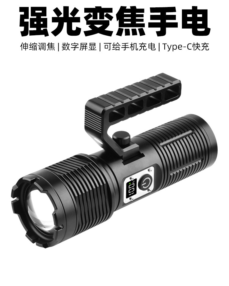 Lampu portabel cahaya kuat pegangan dapat dilepas jarak jauh teleskopik zoom daya tampilan digital untuk Senter