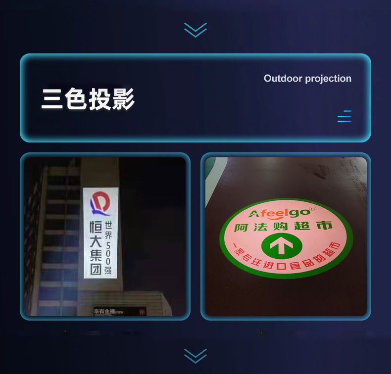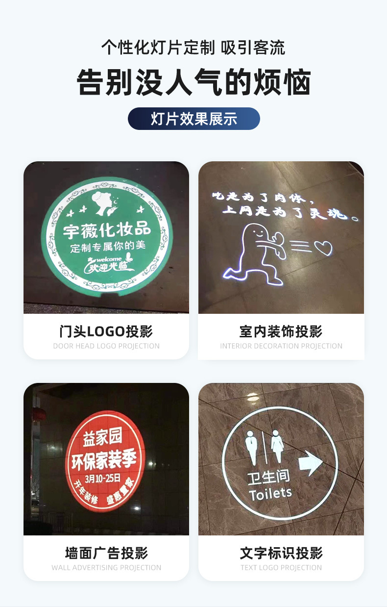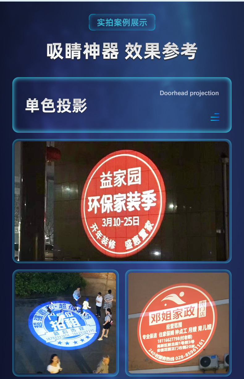 Lampu proyeksi iklan potongan toko papan nama logo toko luar ruangan led laser disesuaikan potongan pola lampu sorot