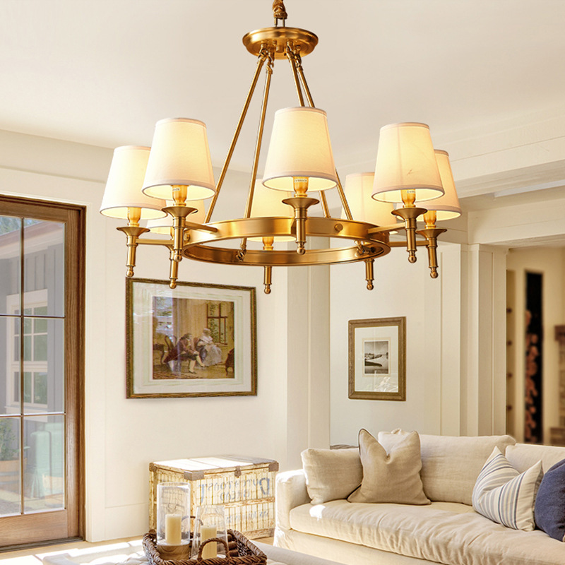 美式全铜客厅吊灯轻奢布艺奶油风灯具极简约现代主卧室餐厅灯批发