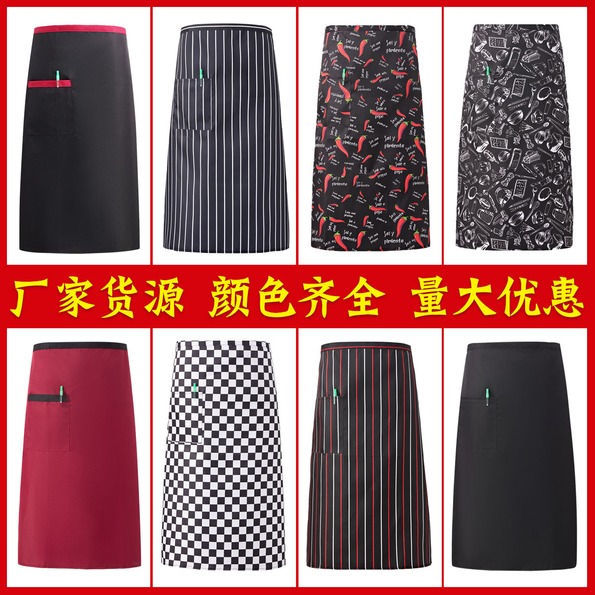 Baju kerja koki setengah celemek hotel kedai kopi restoran Barat pelayan restoran celemek koki dicetak logo bordir