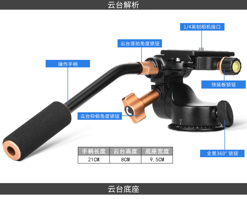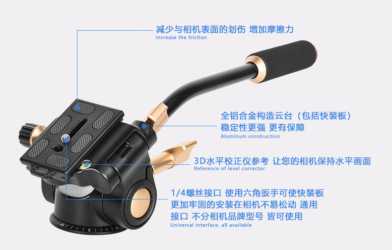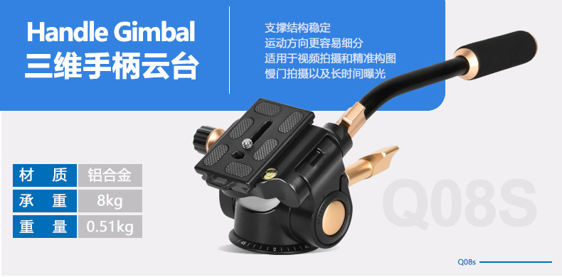 Era Q08S peredam kejut, pegangan tunggal tiga dimensi PTZ kamera logam tripod PTZ kamera fotografi PTZ