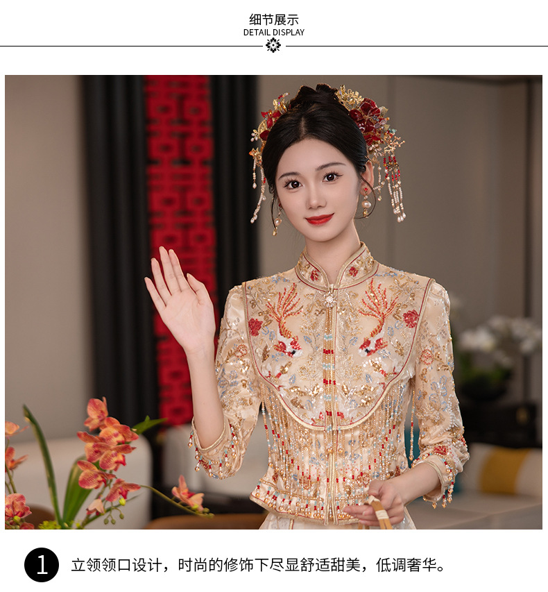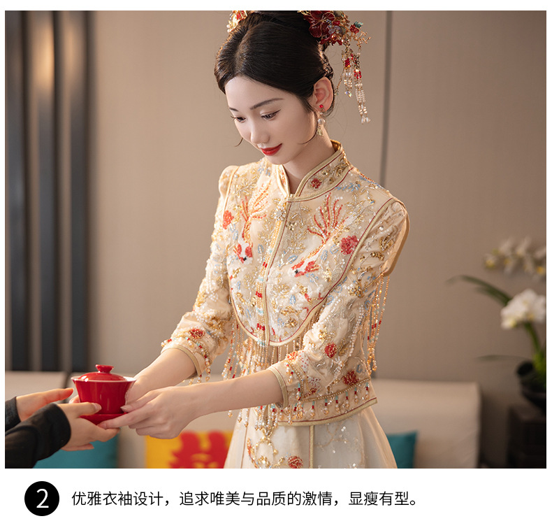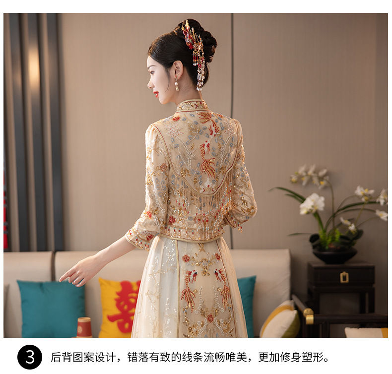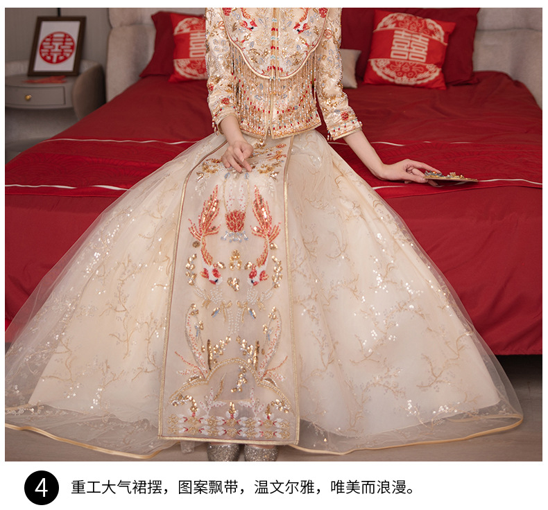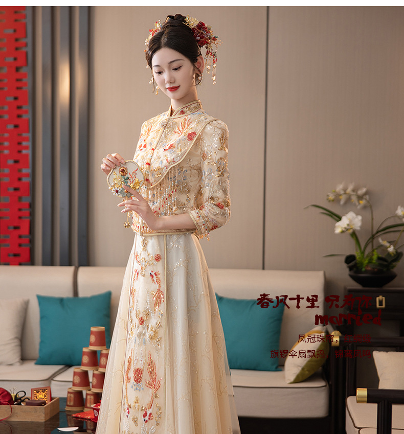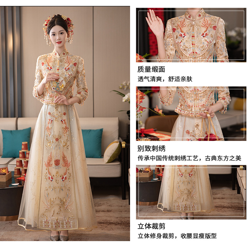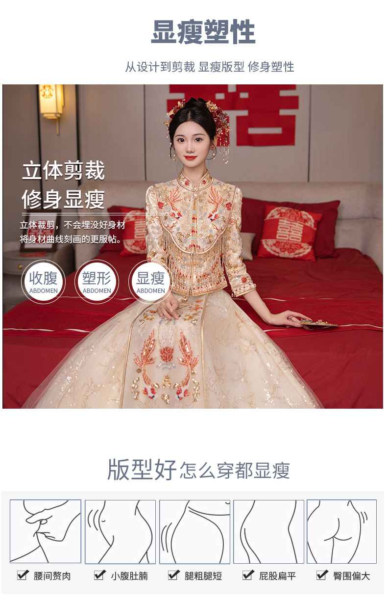 Gaun Pengantin Wanita Model Baru Musim Panas 2025 Pakaian Pesta Pernikahan Warna Emas Pakaian Bersulang Slim-fit Terlihat Langsing