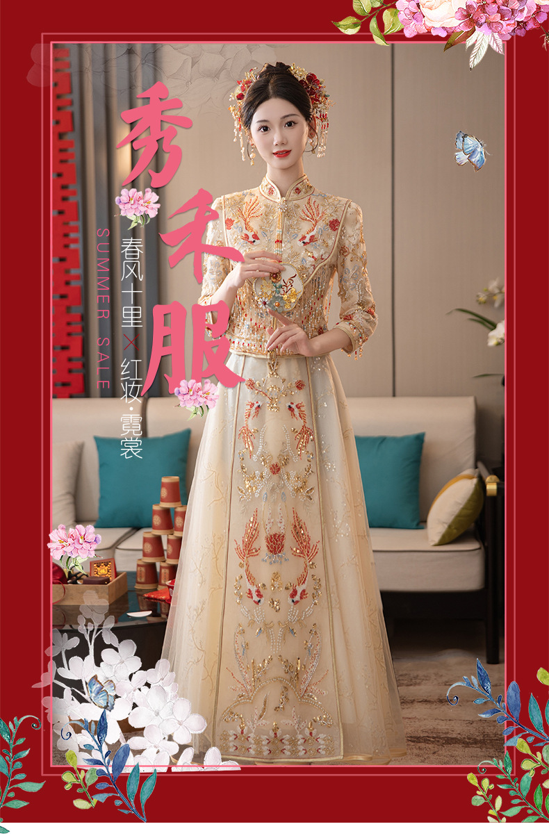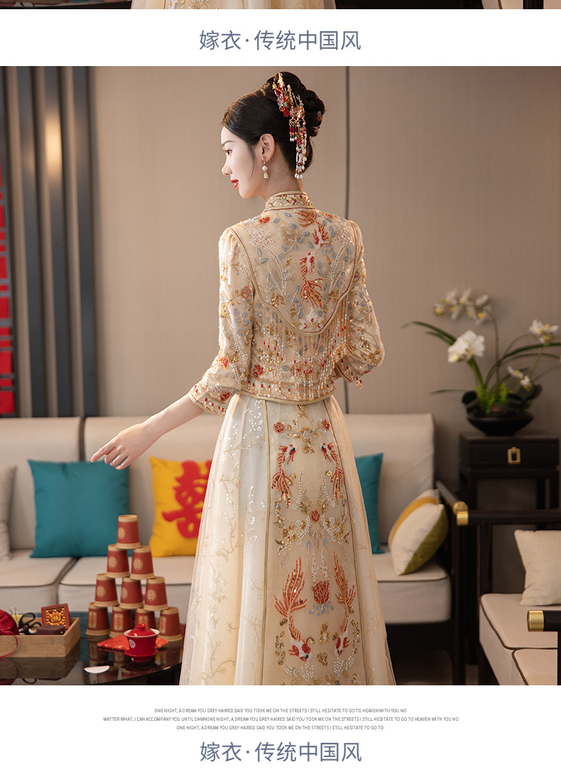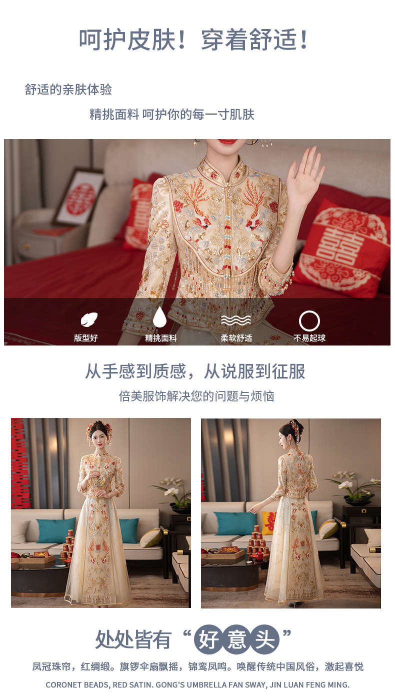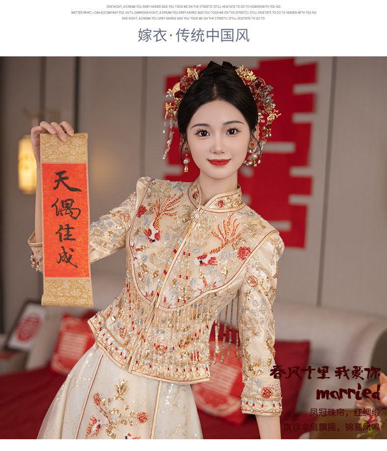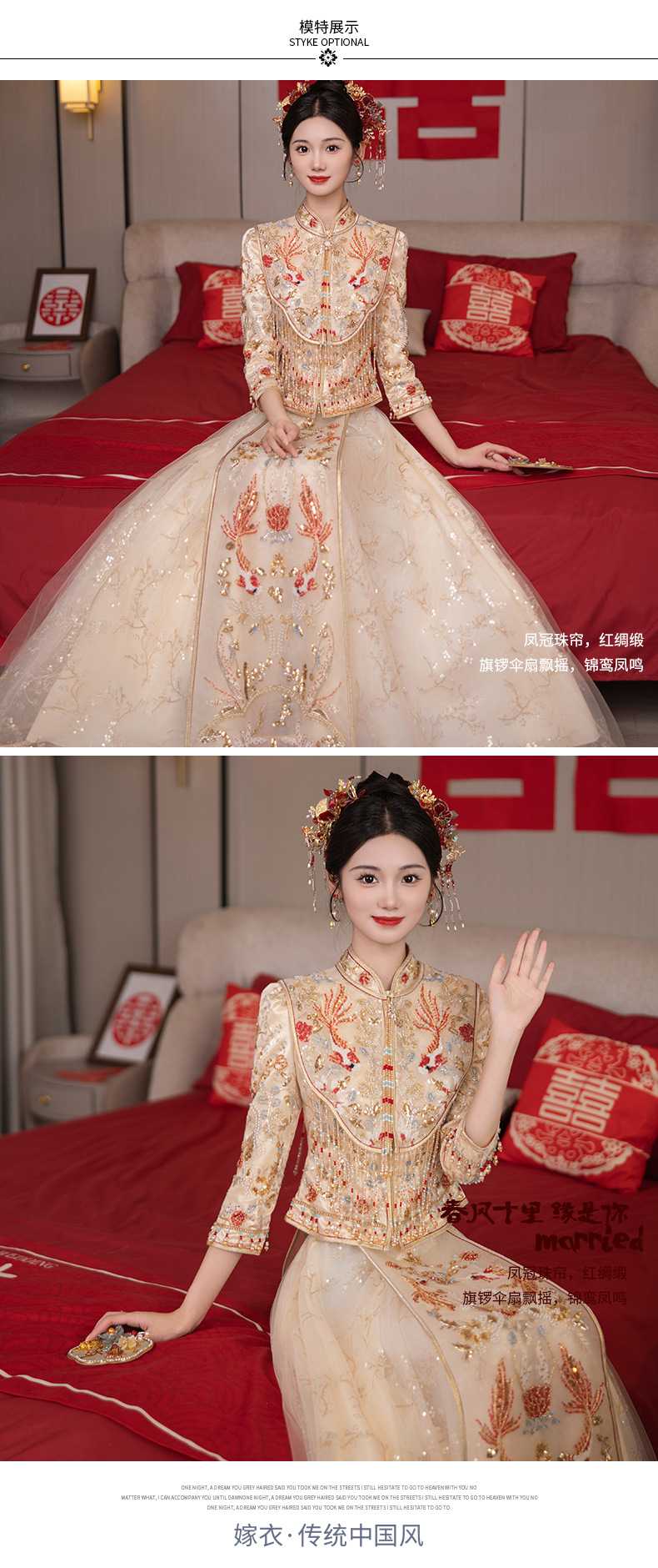 Gaun Pengantin Wanita Model Baru Musim Panas 2025 Pakaian Pesta Pernikahan Warna Emas Pakaian Bersulang Slim-fit Terlihat Langsing
