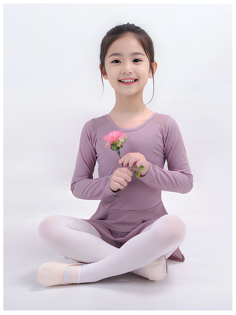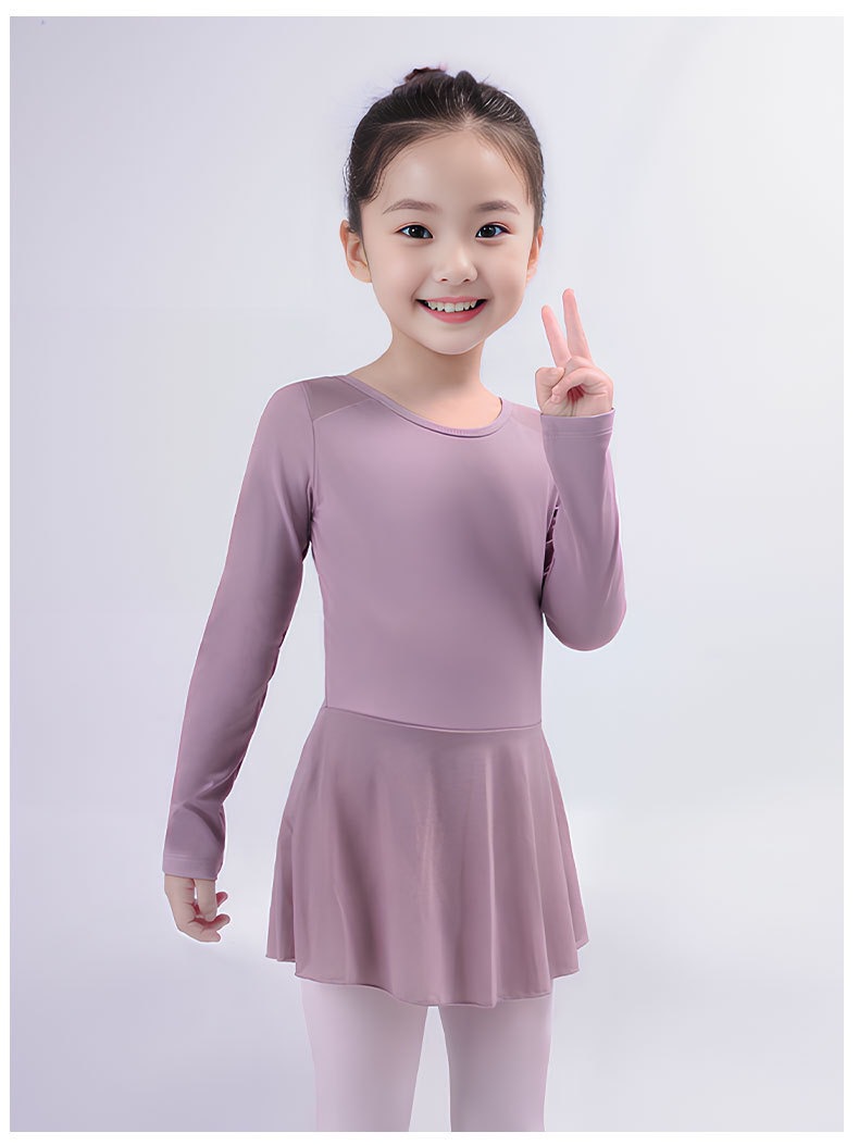 Pakaian dansa anak perempuan, rok balet lengan panjang, pakaian anak perempuan, baju latihan dansa China, pakaian penampilan