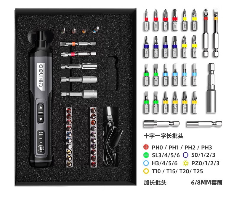 Deli alat obeng listrik isi ulang rumah tangga obeng listrik kecil portabel mini obeng listrik multifungsi