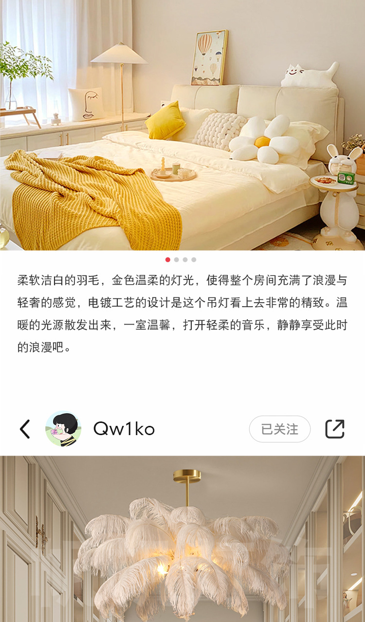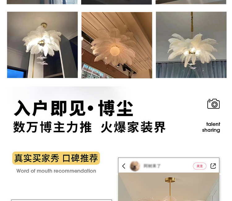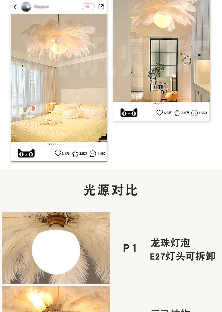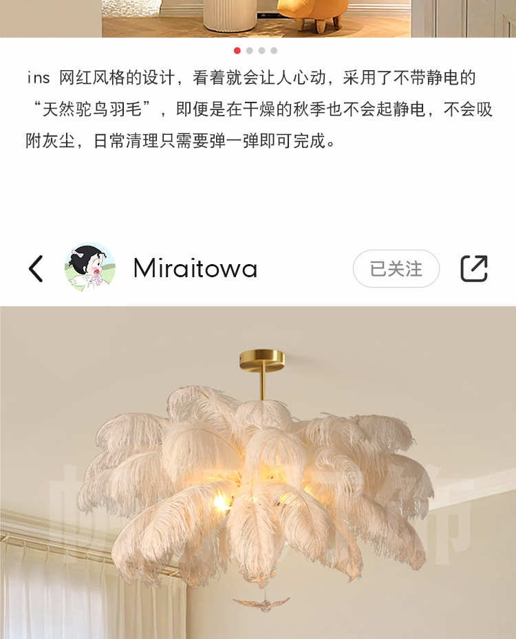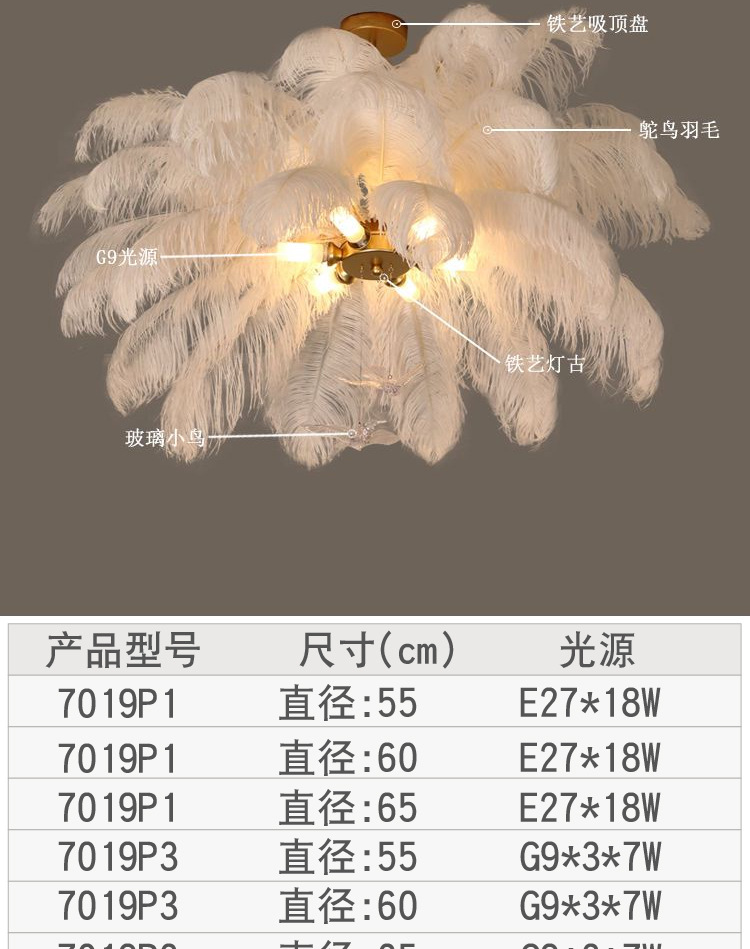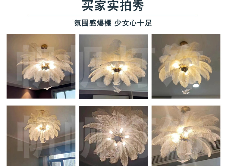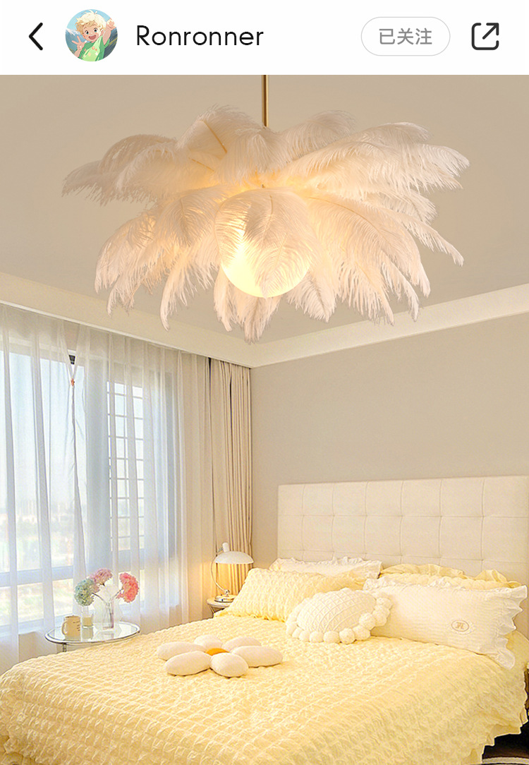 Lampu Gantung Bulu Gaya Krim Lintas Batas Lampu Hias Toko Pakaian Kamar Tidur Selebriti Internet Kamar Putri Sederhana Modern