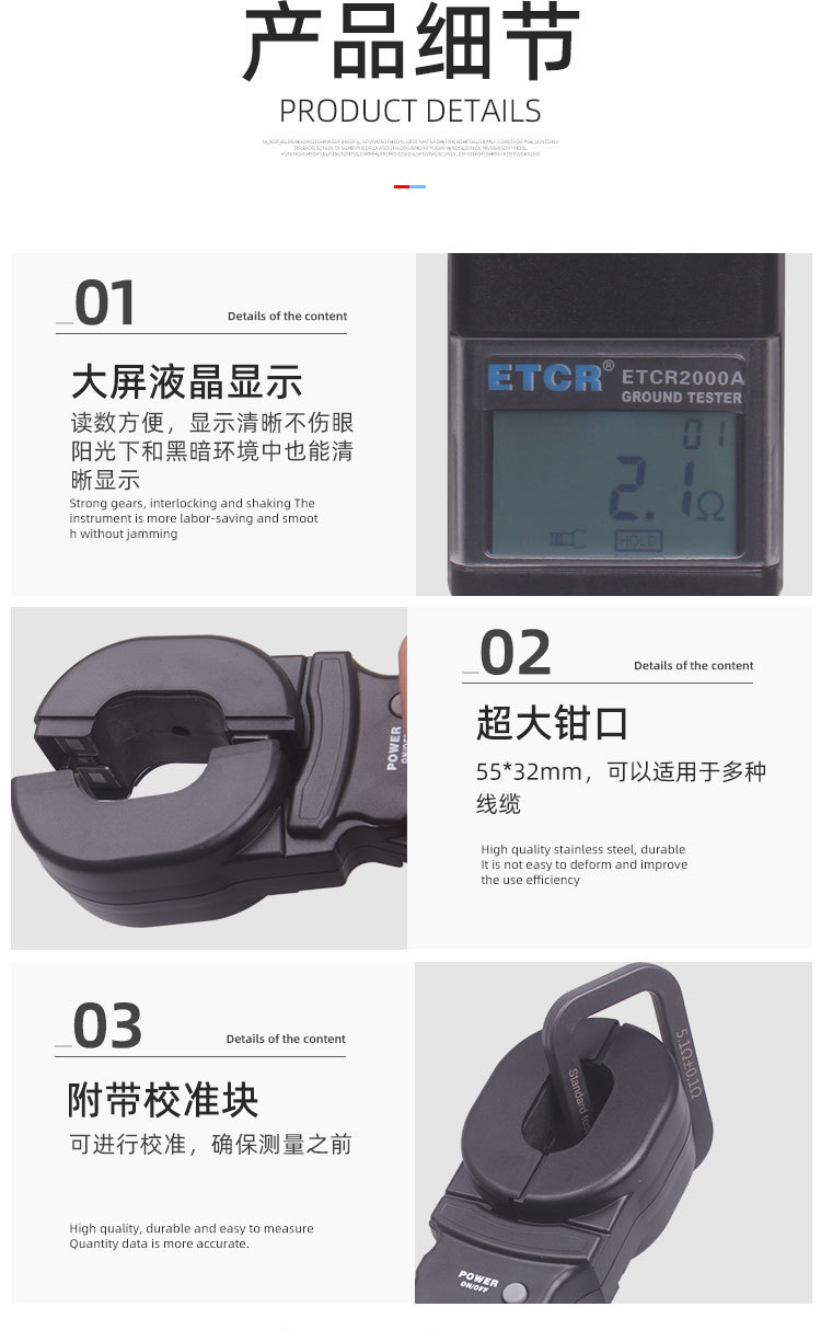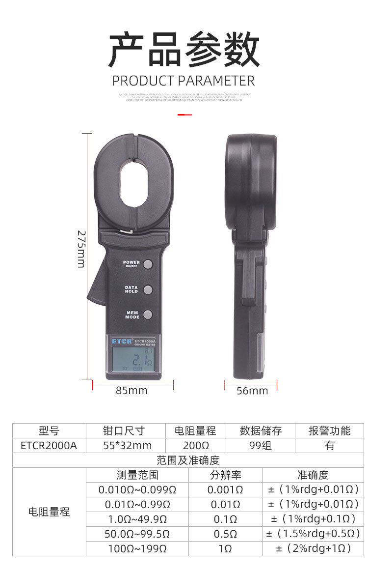 ETCR 系列钳形接地电阻仪是传统接地电阻测量技术的重大突破,广泛应用于电力、电信、气象、油田、建筑及工业电气设备的接地电阻测量。