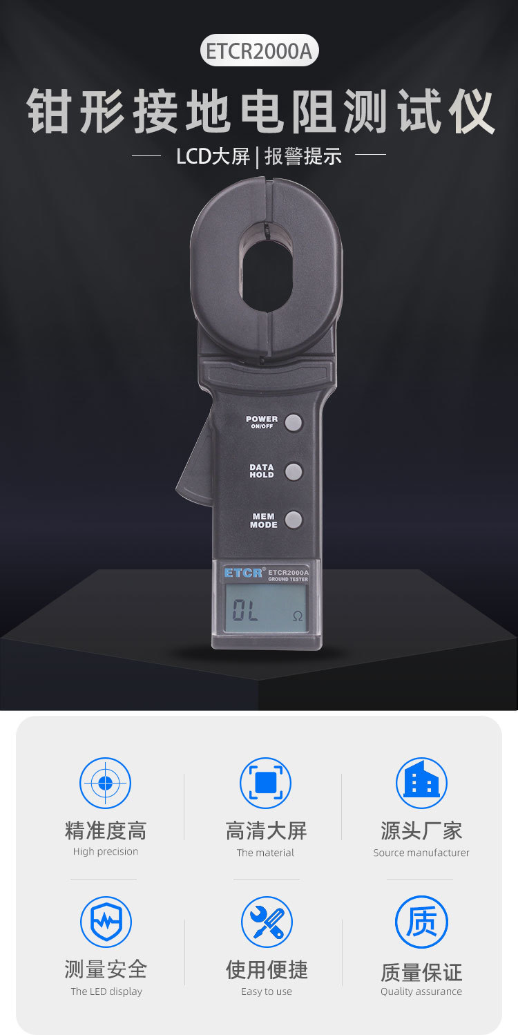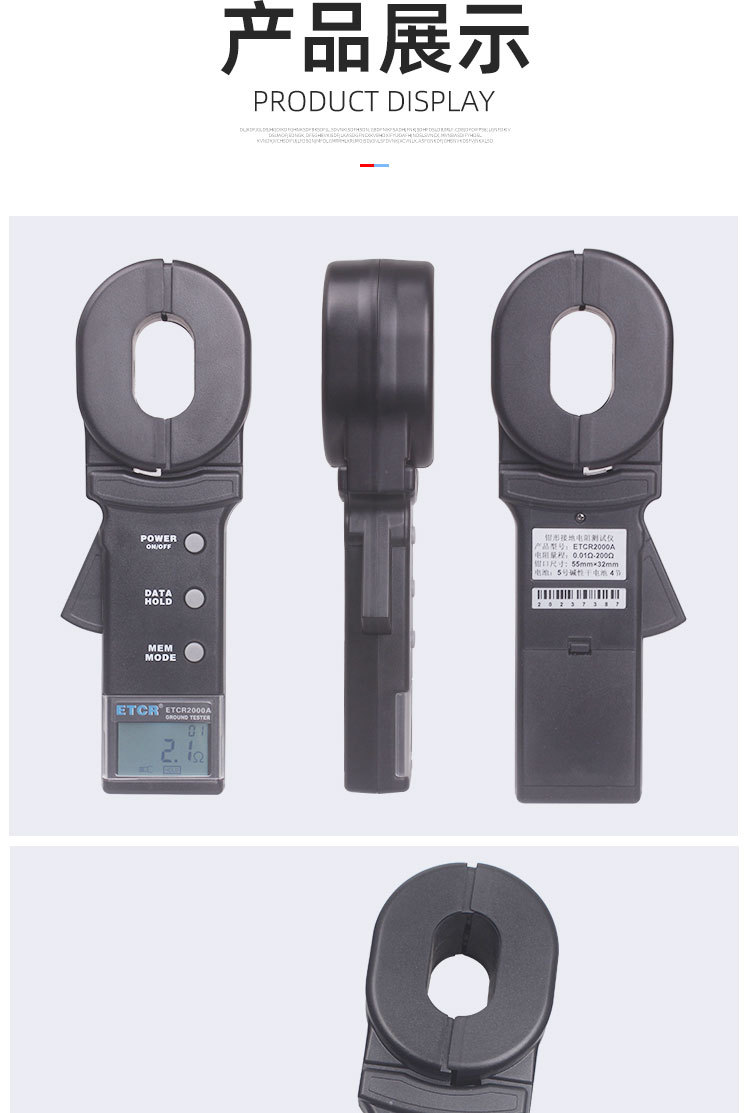 ETCR 系列钳形接地电阻仪能测量出用传统方法无法测量的接地故障,能应用于传统方法无法测量的场合,因为ETCR系列钳形接地电阻仪测量的是接地体电阻和接地引线电阻的综合值。