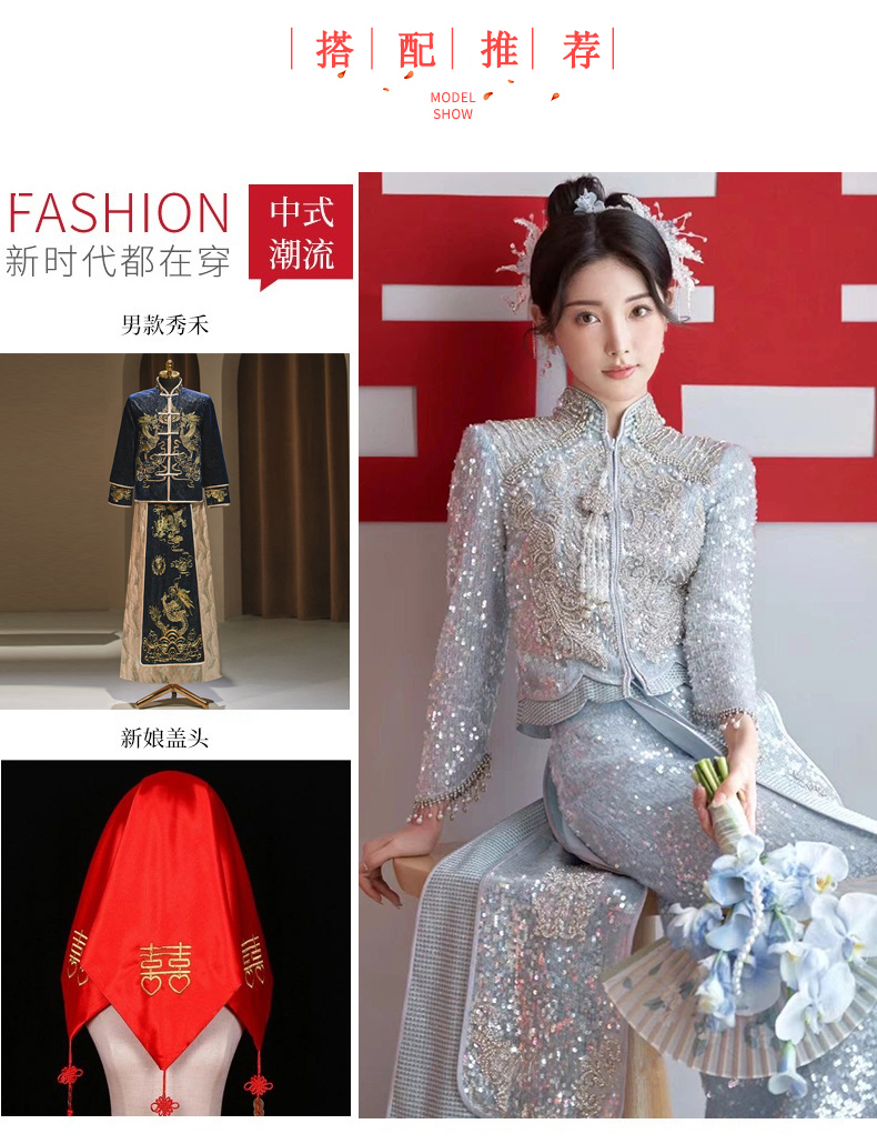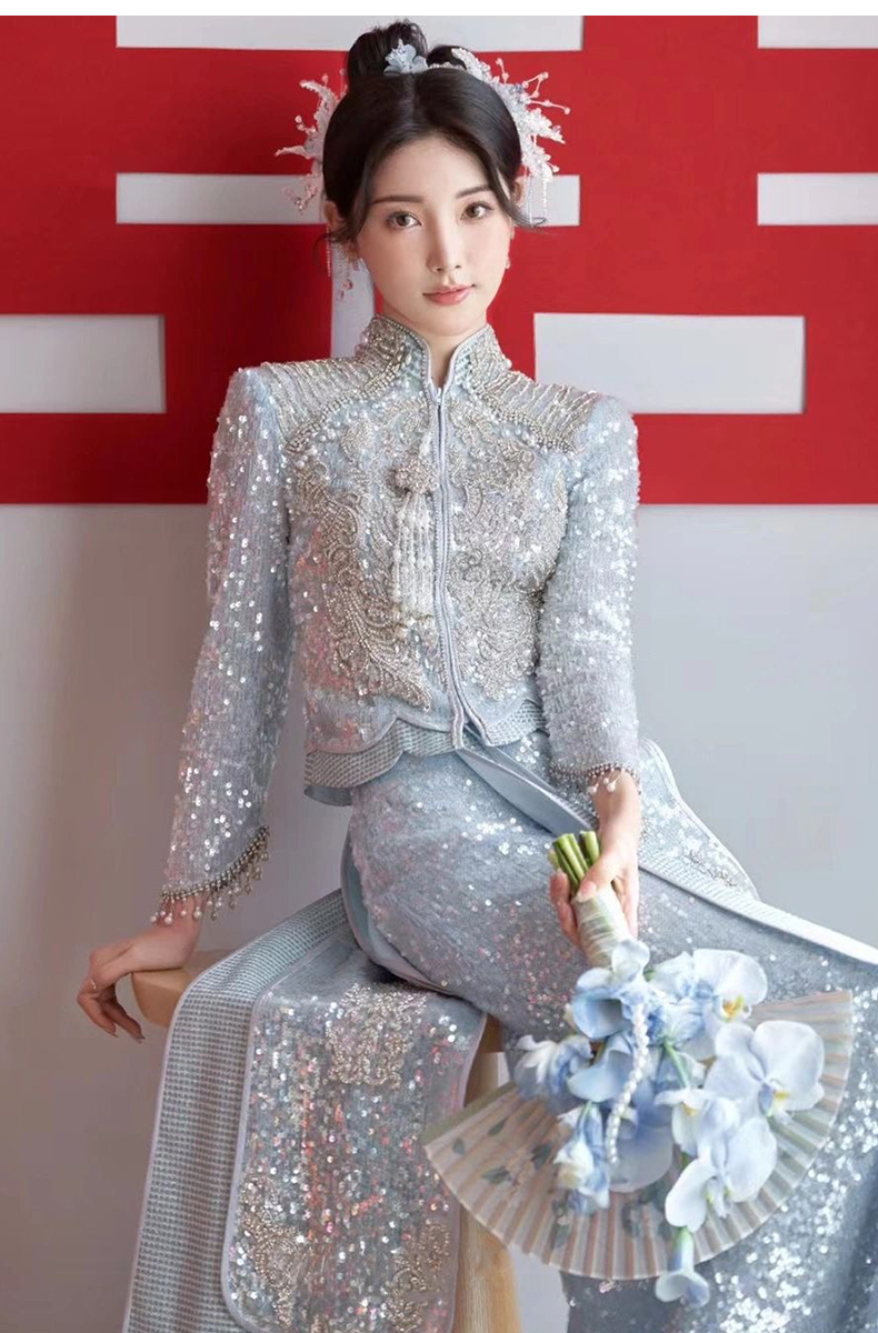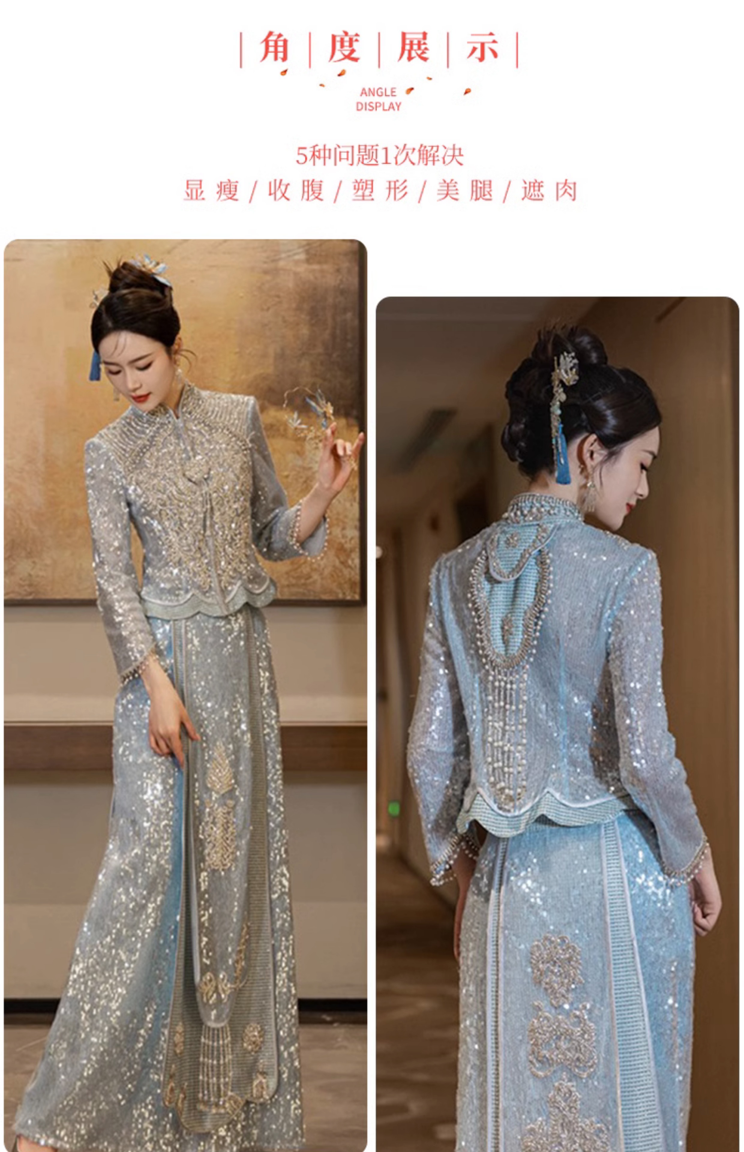 Pakaian pengantin biru Xiuhe 2024 gaun pernikahan Cina baru pakaian Lapangan musim panas gaun Melayu naga dan phoenix ramping