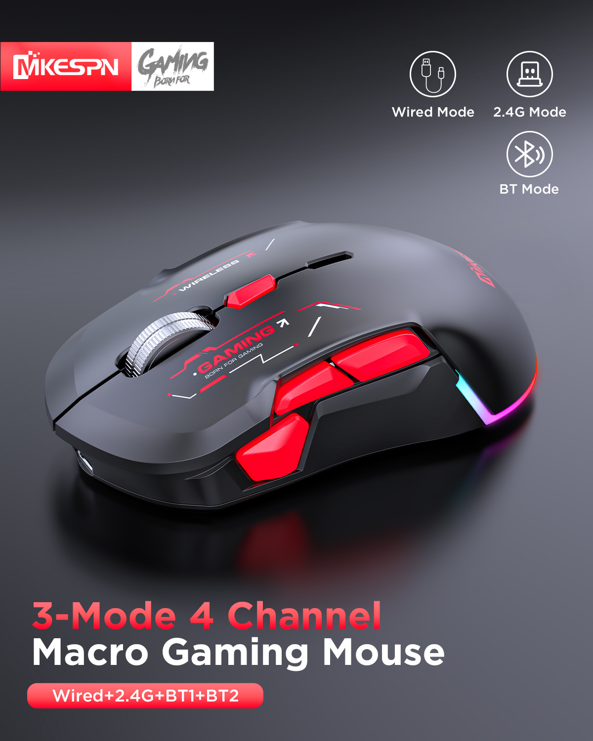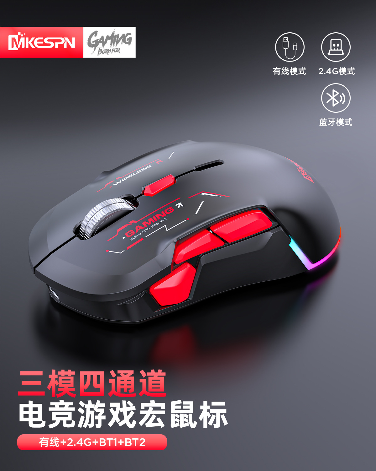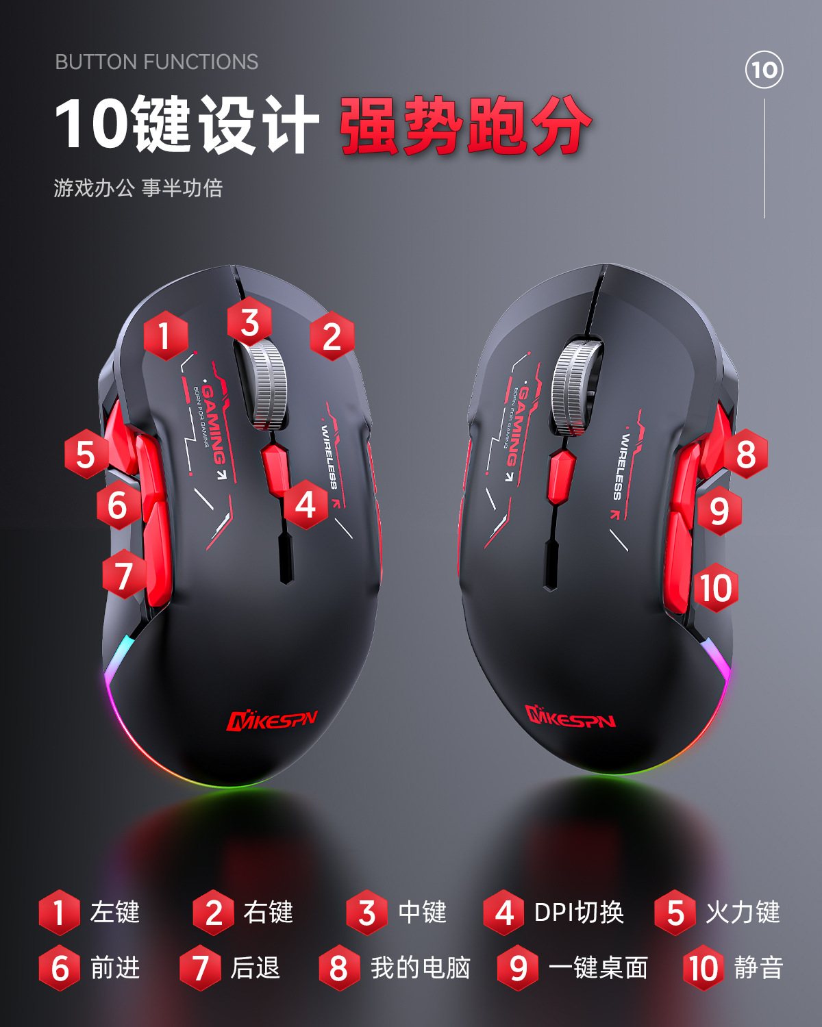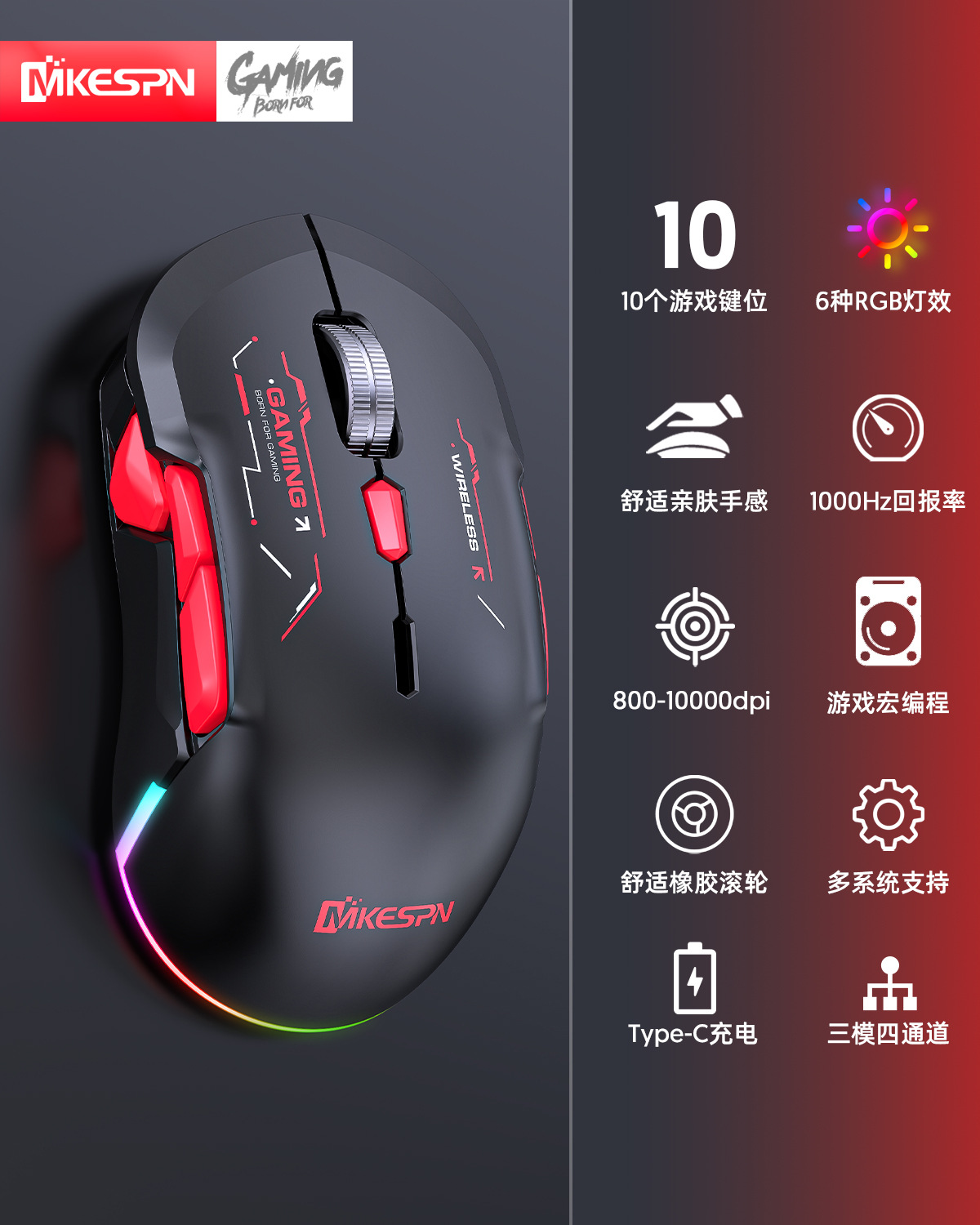 10 tombol tangan kiri dan kanan nirkabel Bluetooth tiga mode multi-channel definisi makro game Mouse one-piece batch aksesoris komputer