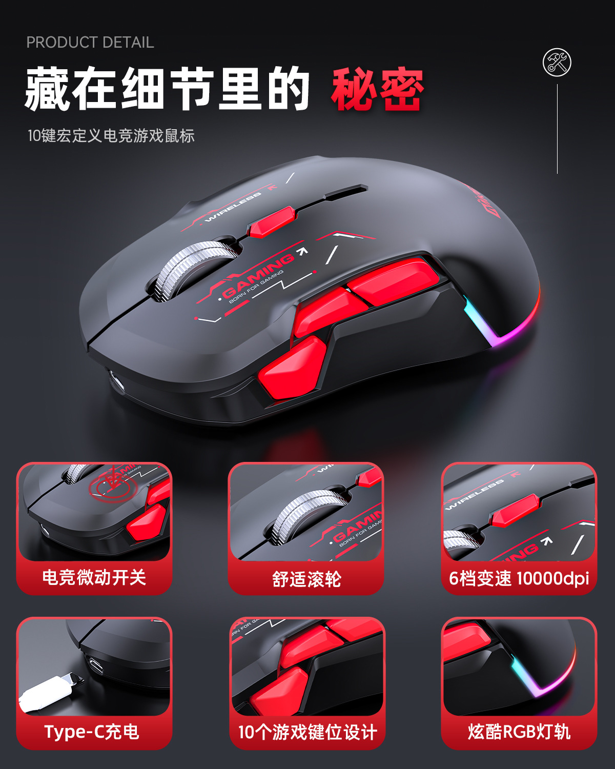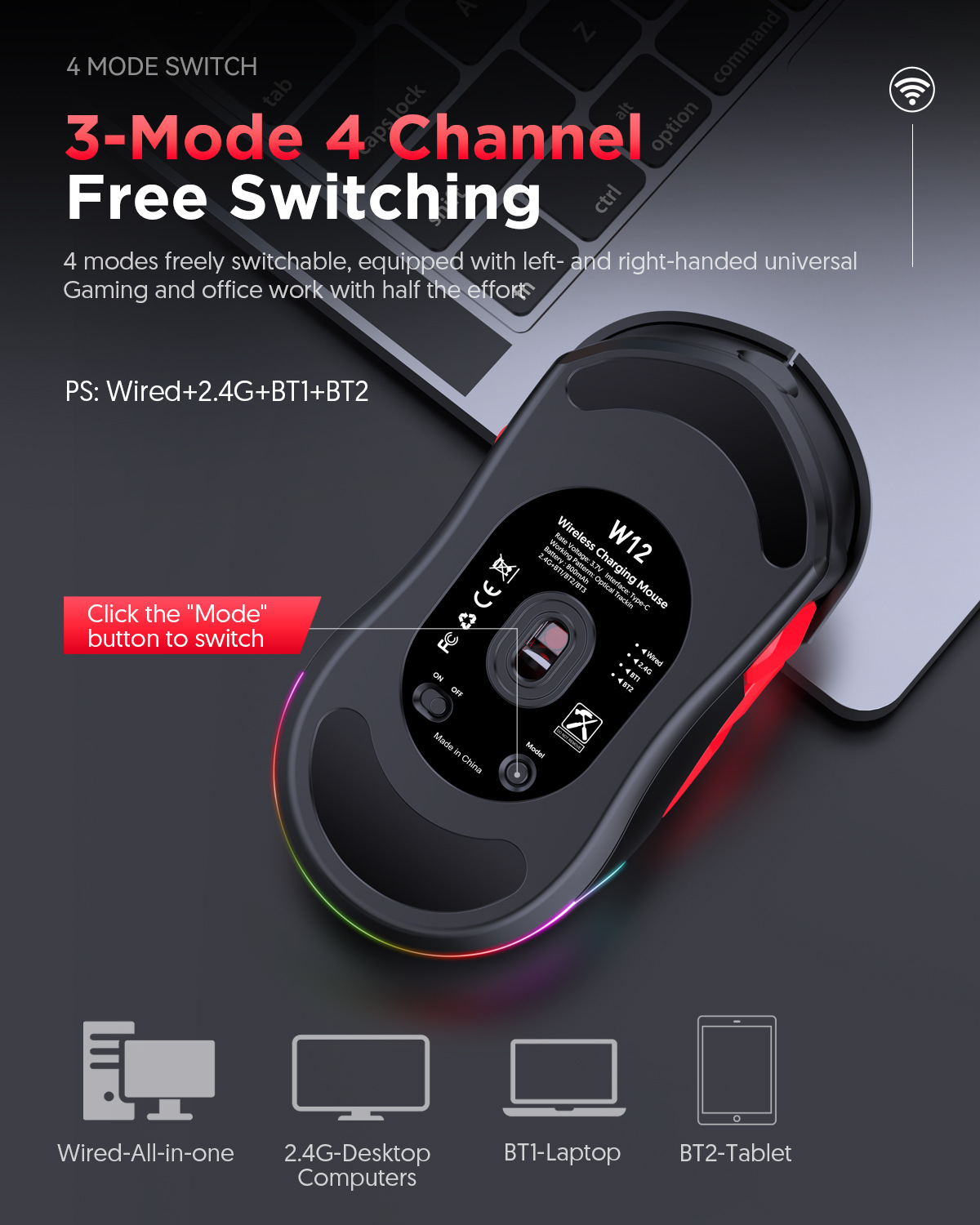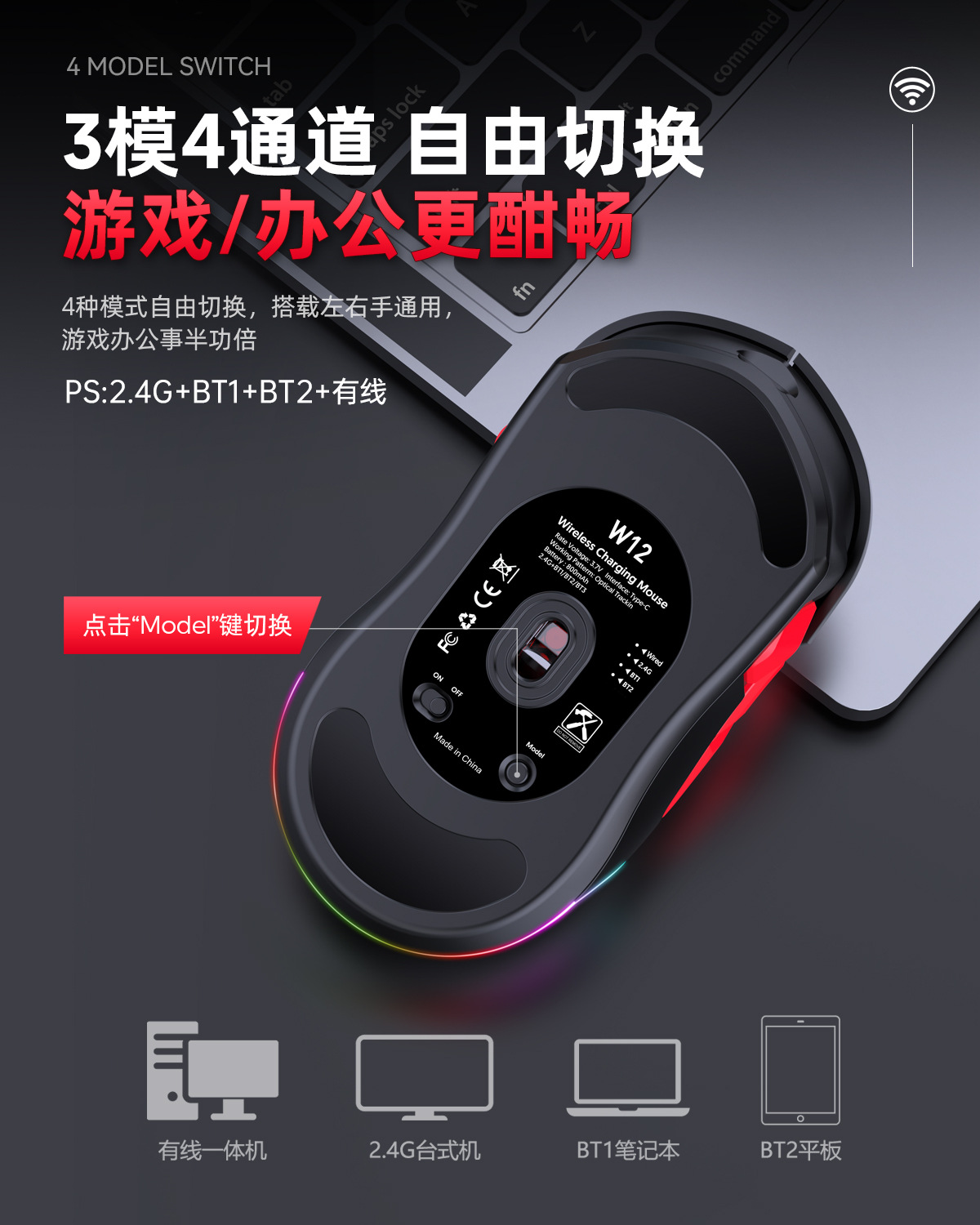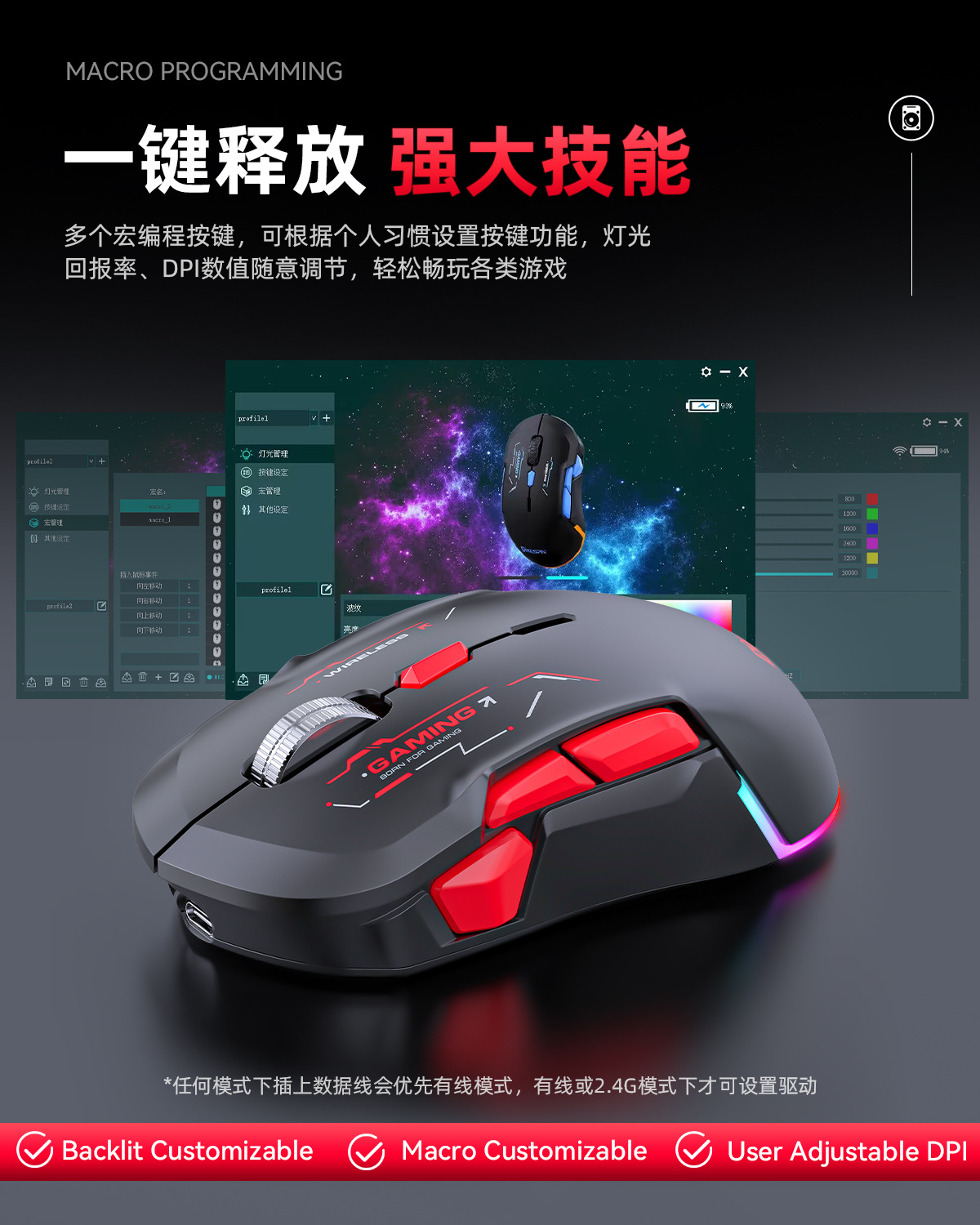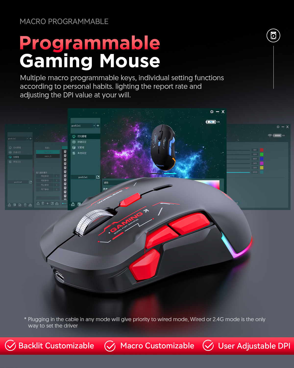 10 tombol tangan kiri dan kanan nirkabel Bluetooth tiga mode multi-channel definisi makro game Mouse one-piece batch aksesoris komputer