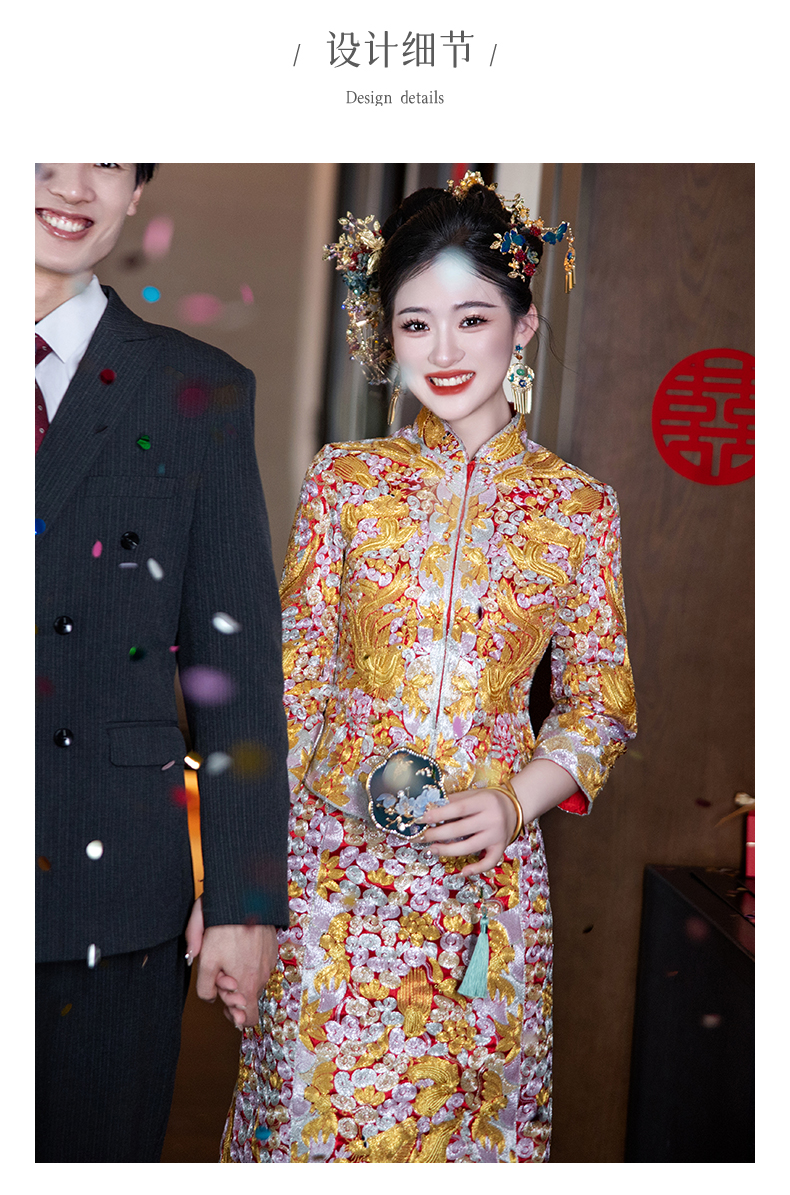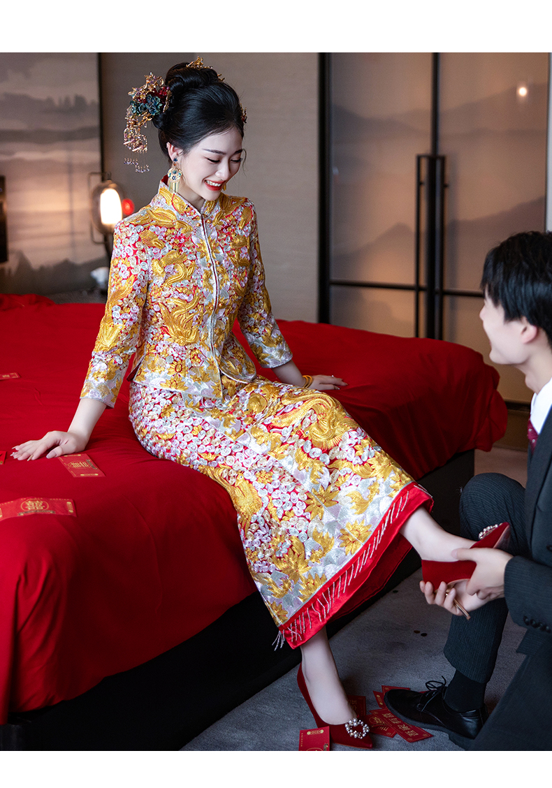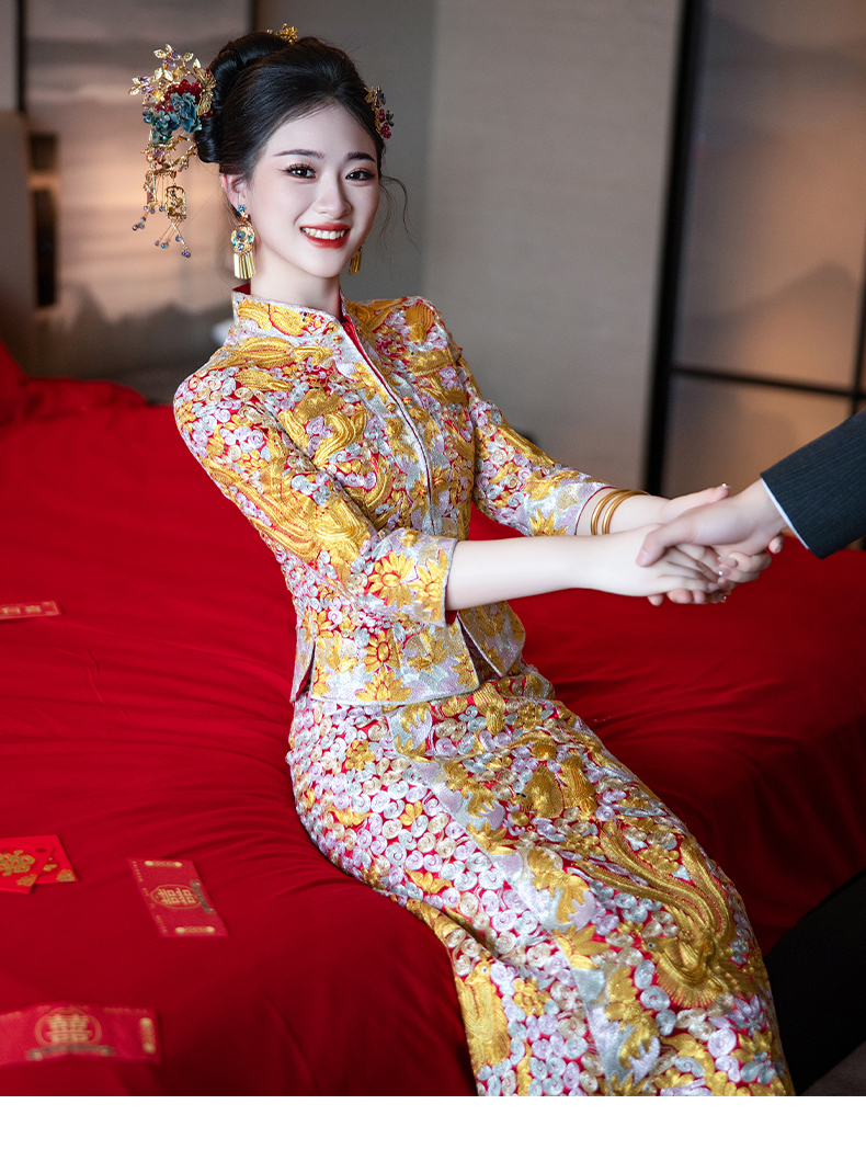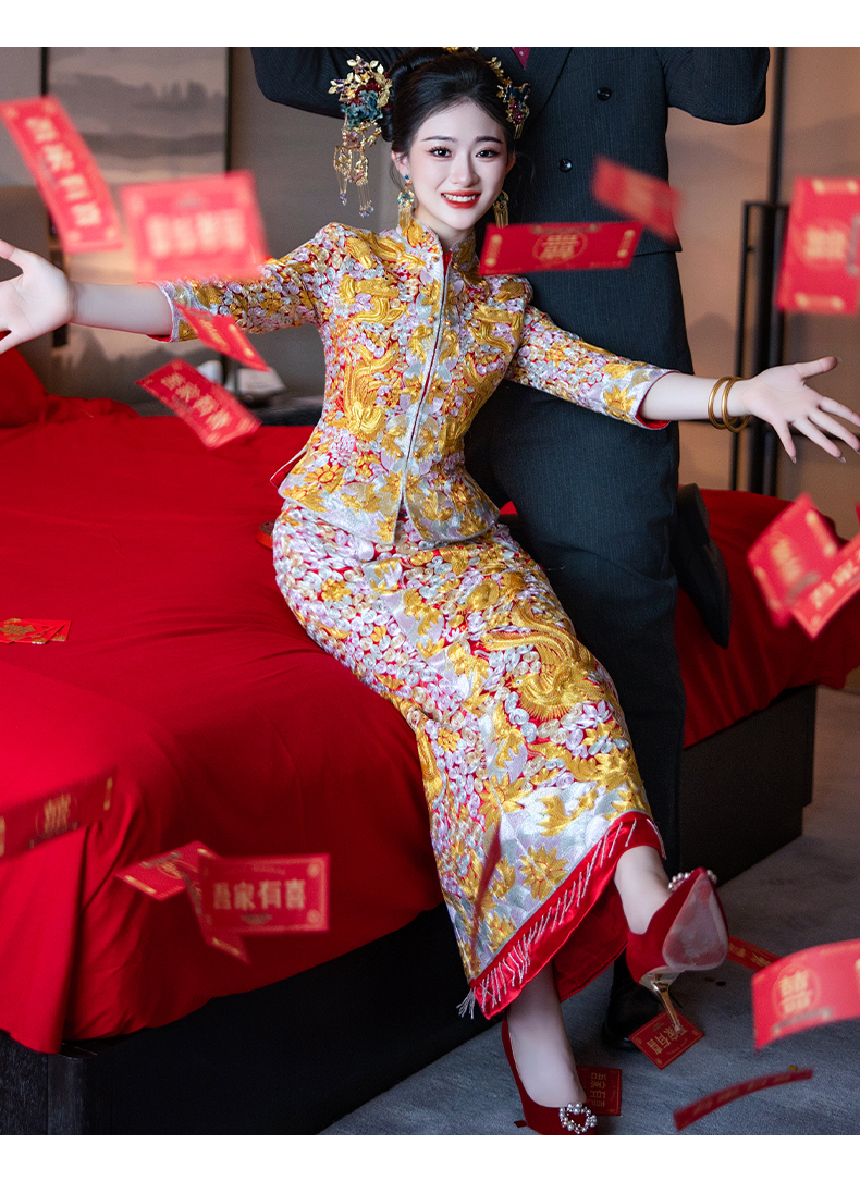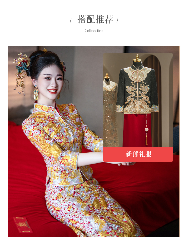 Gaun naga dan Phoenix baru musim dingin 2024 gaun pengantin wanita Cina gaun pengantin wanita kelas atas gaun Xiuhe kerja berat gaun Ratu