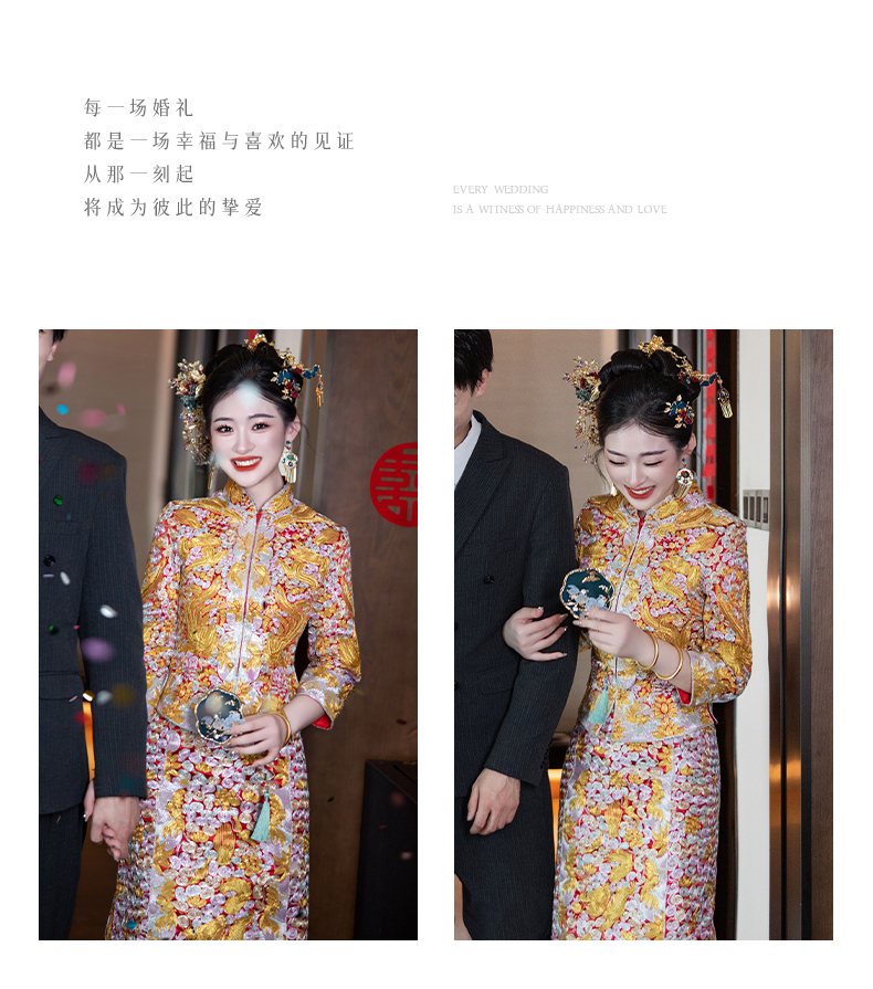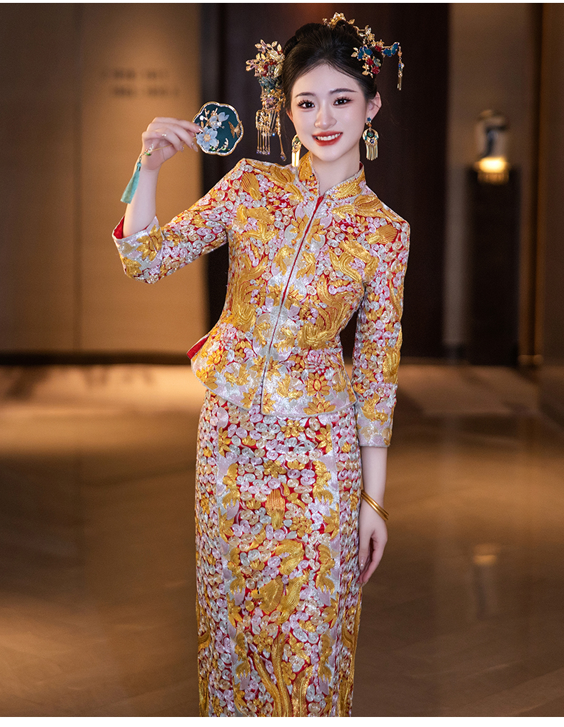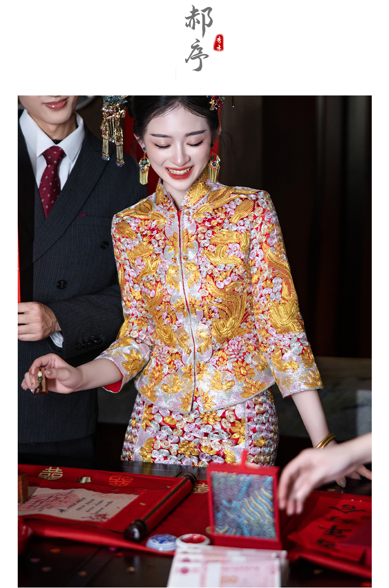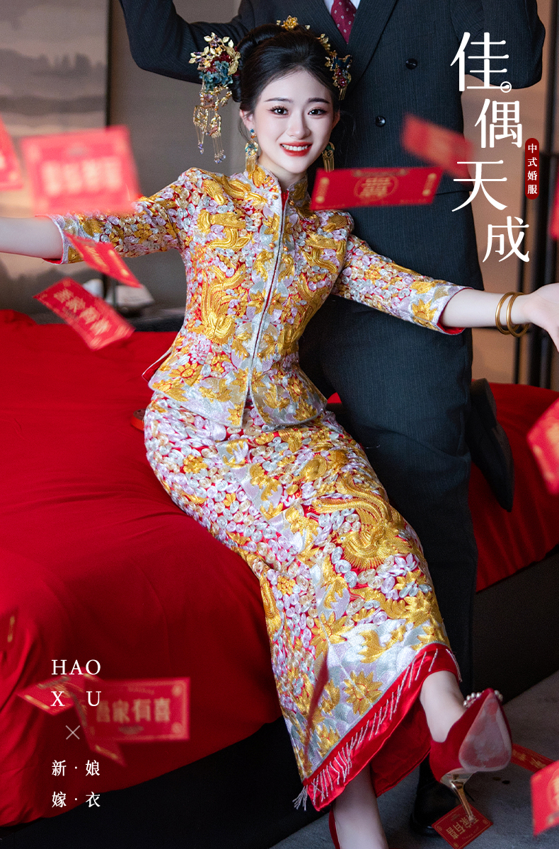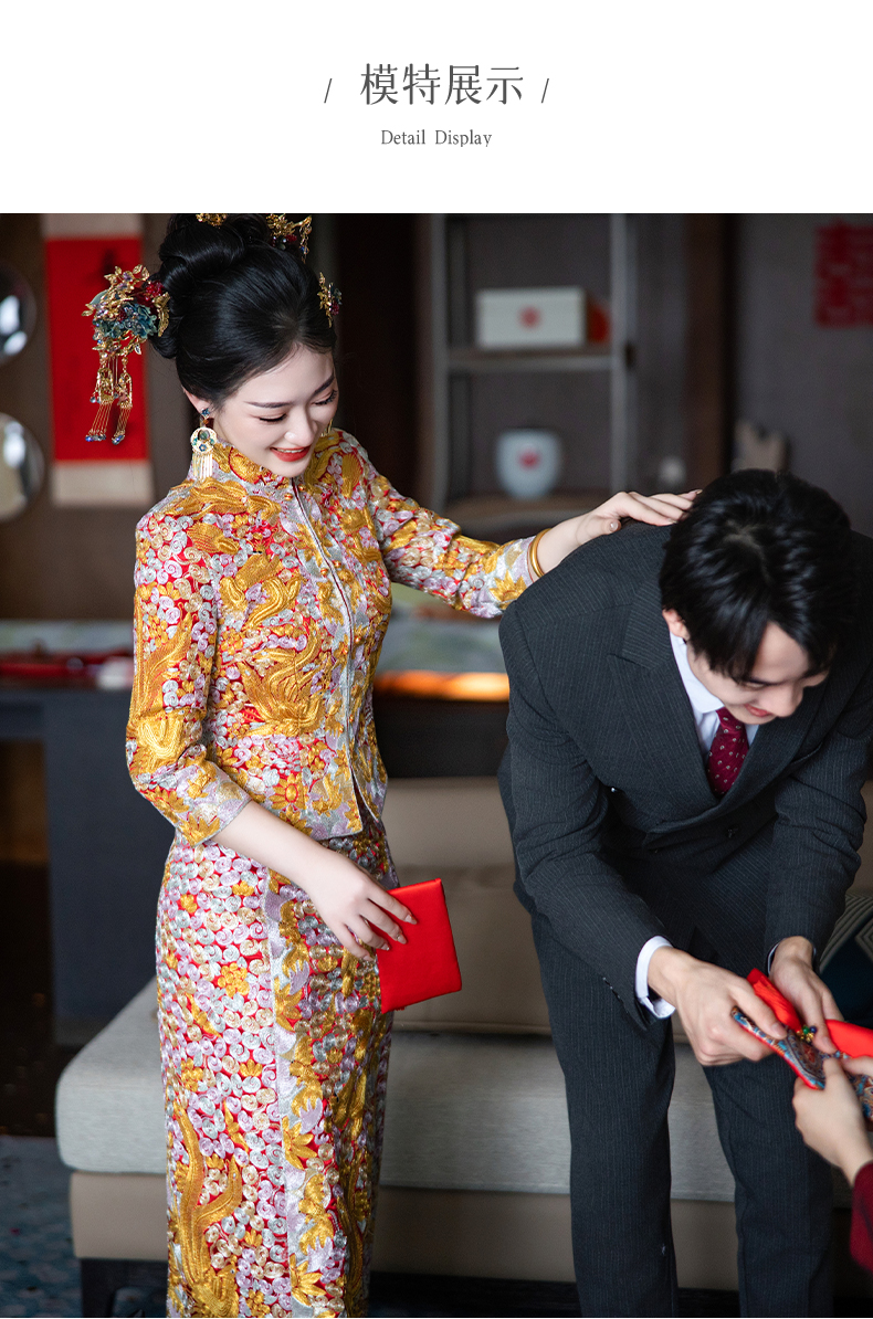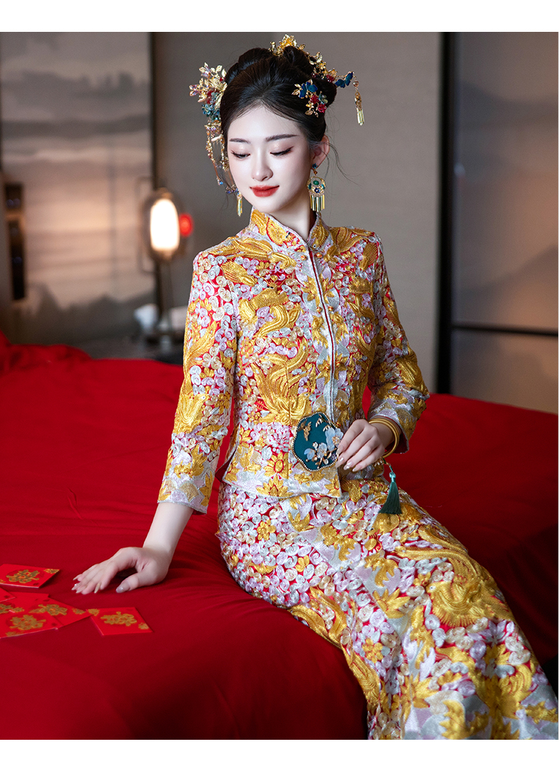 Gaun naga dan Phoenix baru musim dingin 2024 gaun pengantin wanita Cina gaun pengantin wanita kelas atas gaun Xiuhe kerja berat gaun Ratu